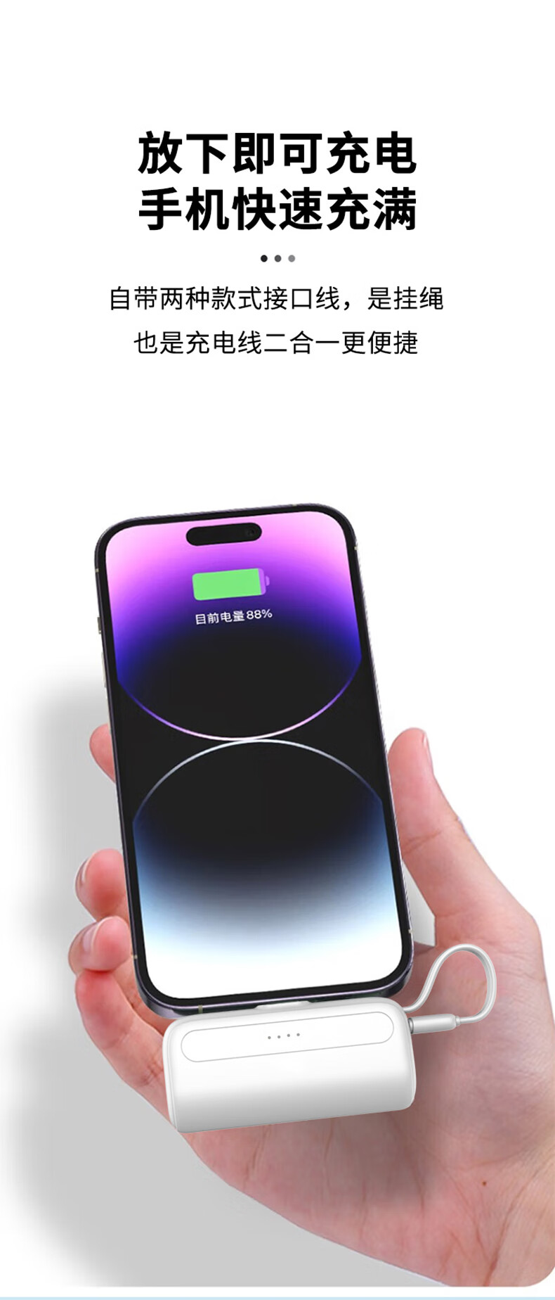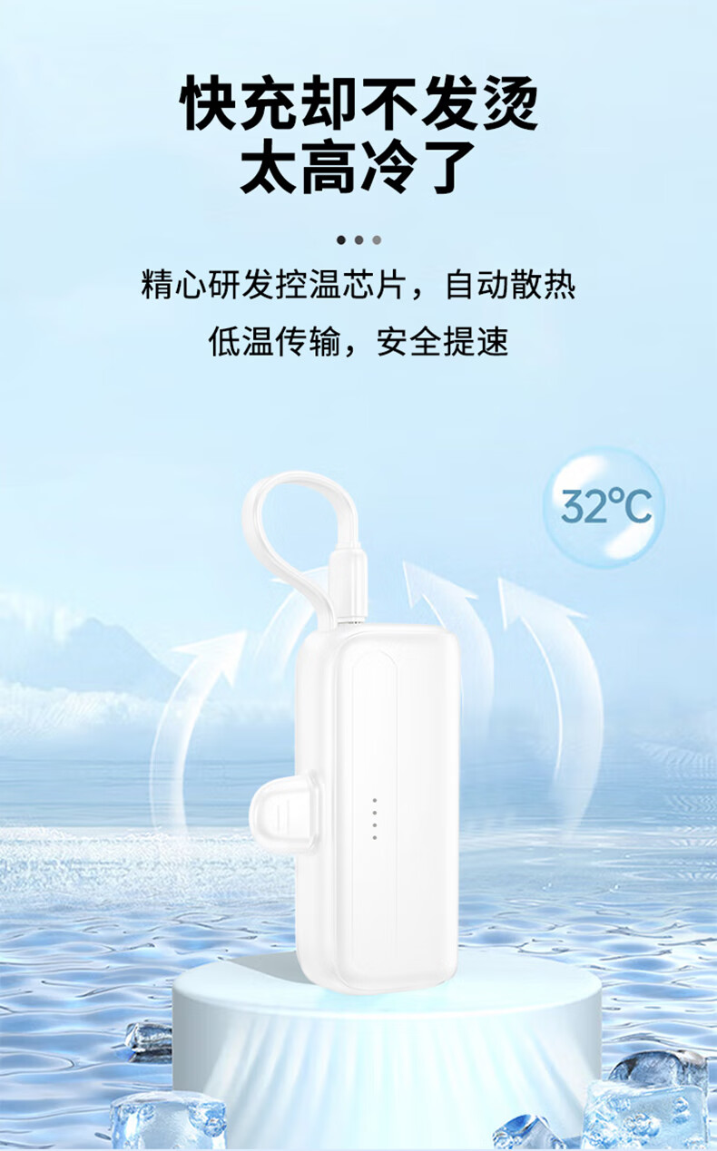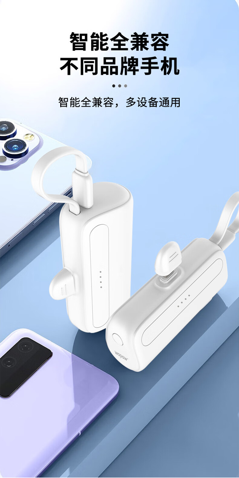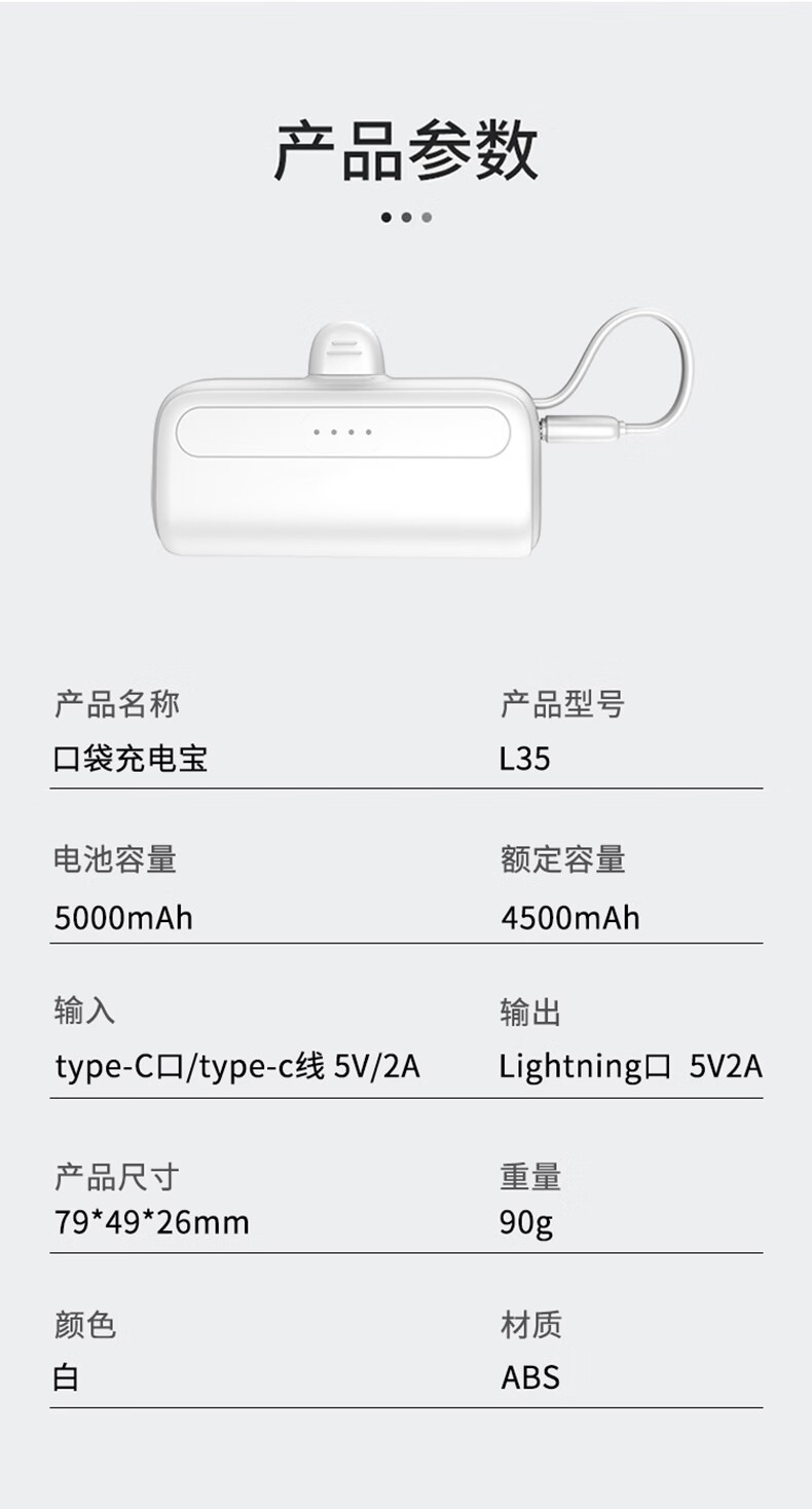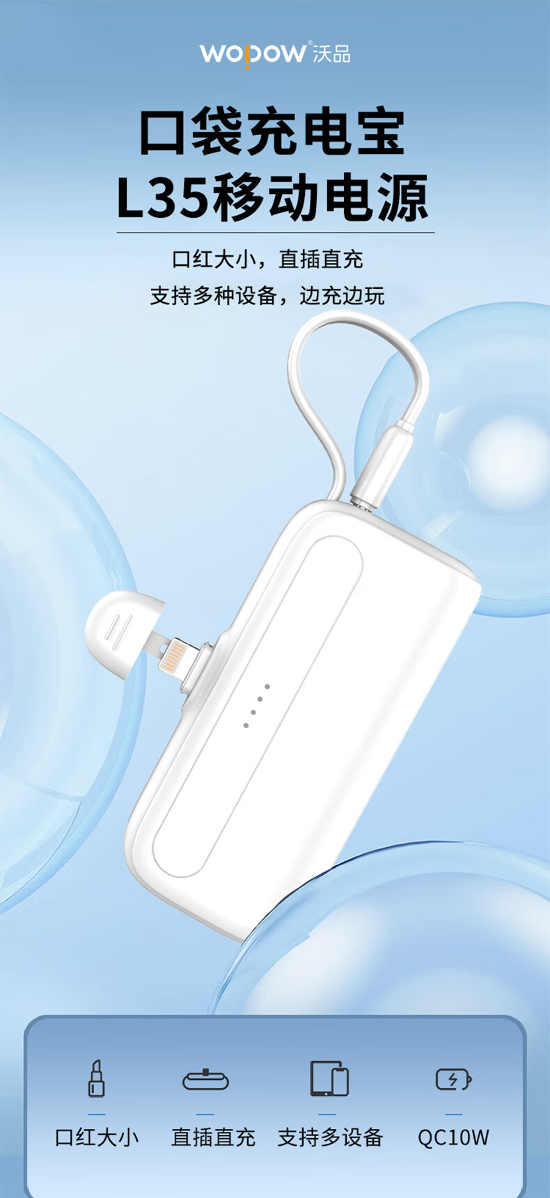 沃品/WOPOW L35 手机充电器 口袋充电宝迷你小巧便携自带线移动电源L35 白色 5000mAh