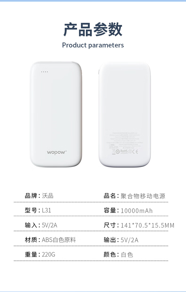 沃品/WOPOW L31 手机充电器 白色 10000mAh