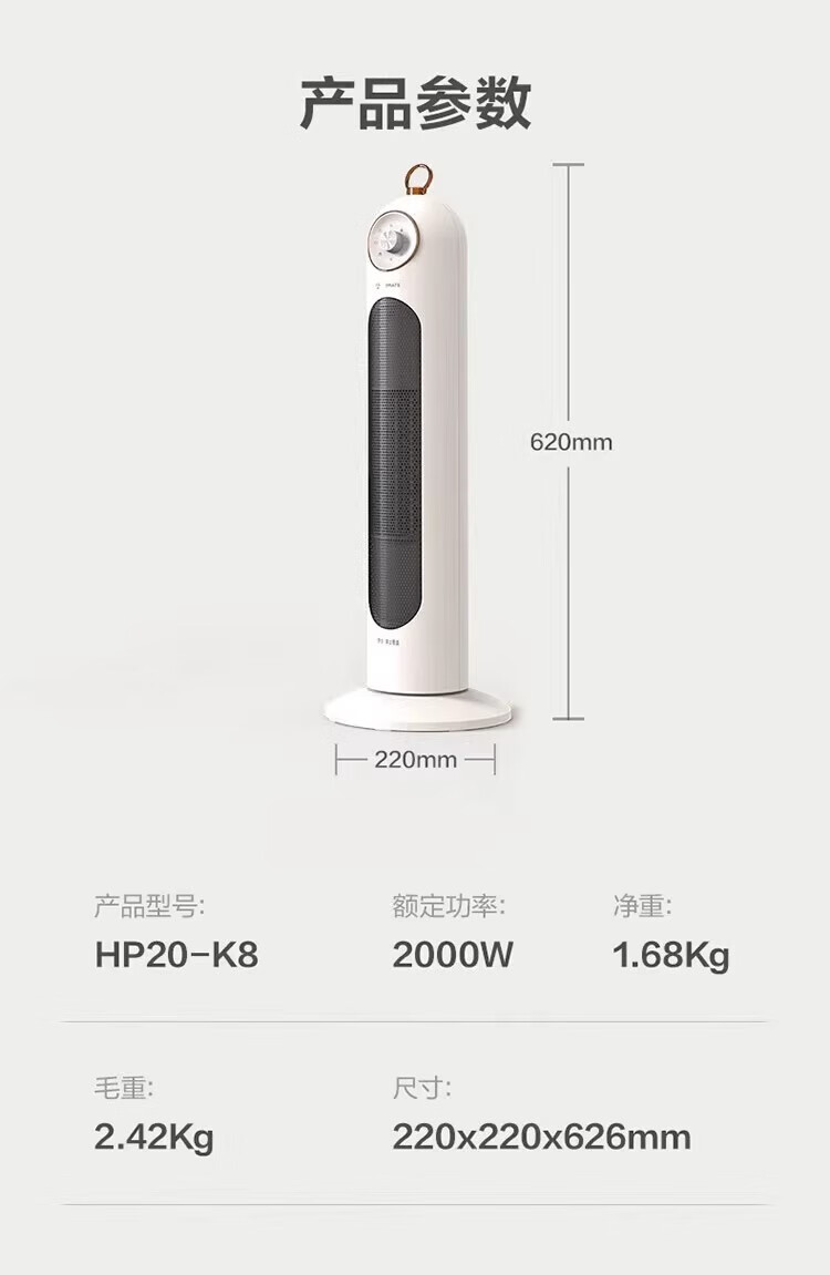 艾美特/Airmate HP20-K8取暖器 立式节能省电摇头暖风机