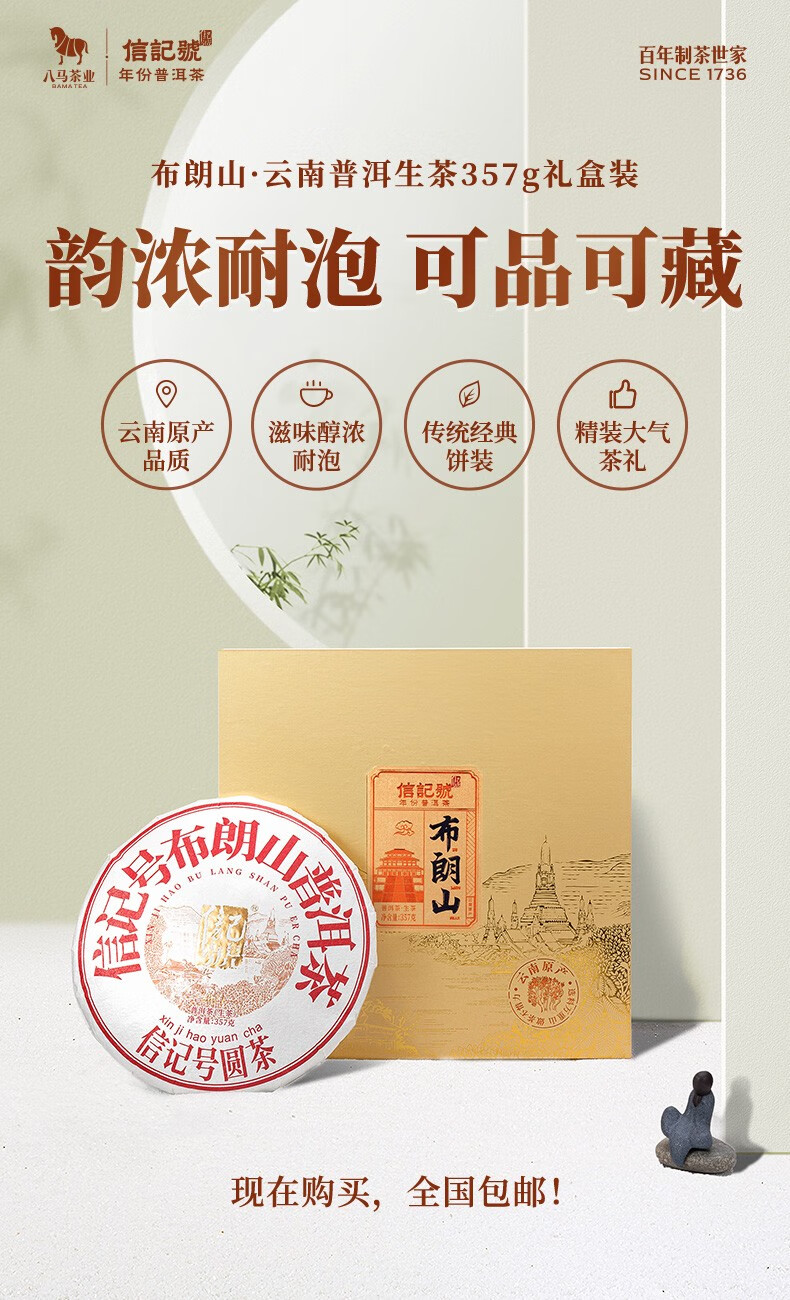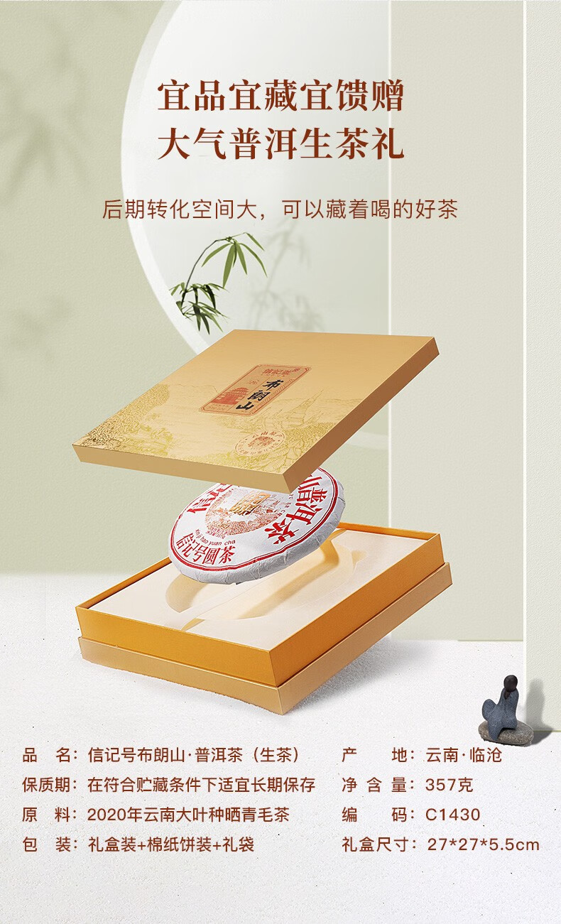 八马/BAMA C1430 普洱 信记号布朗山普洱茶(生茶)2020年原料 357克*1饼/盒