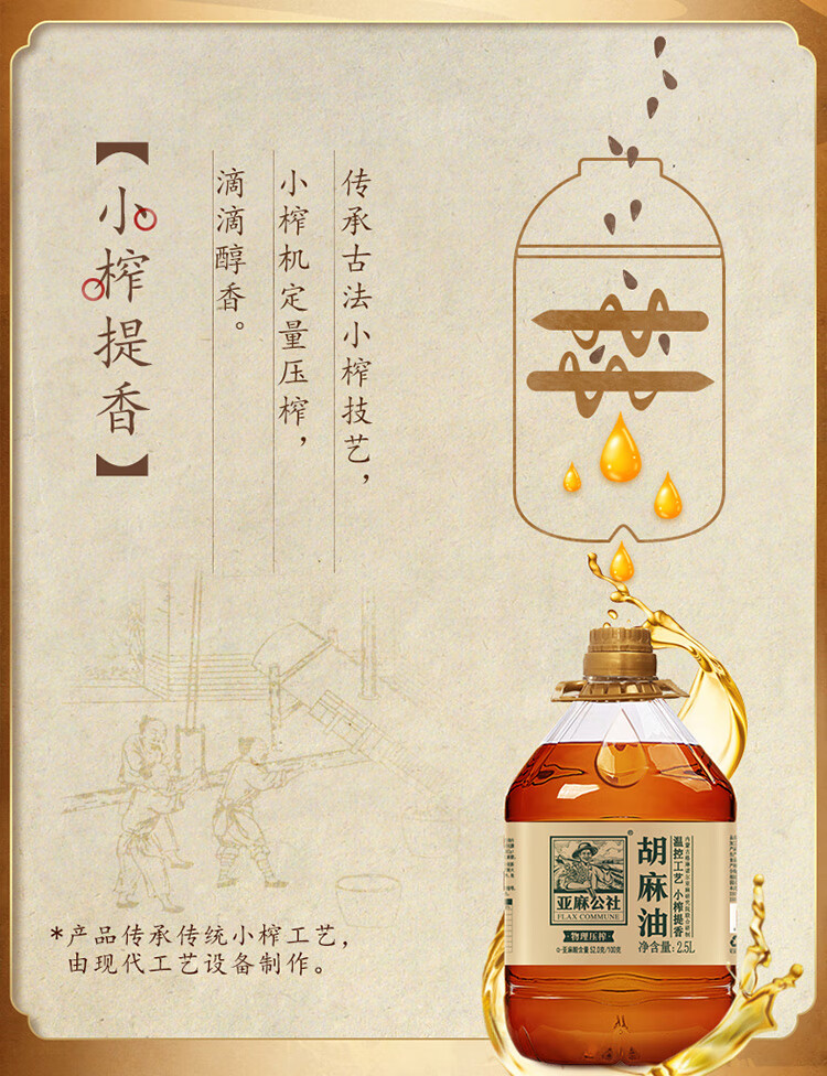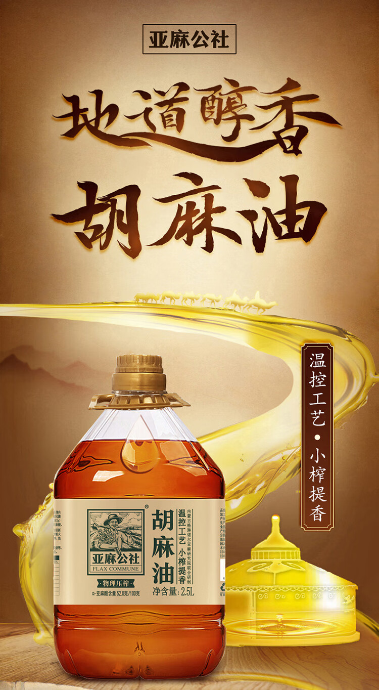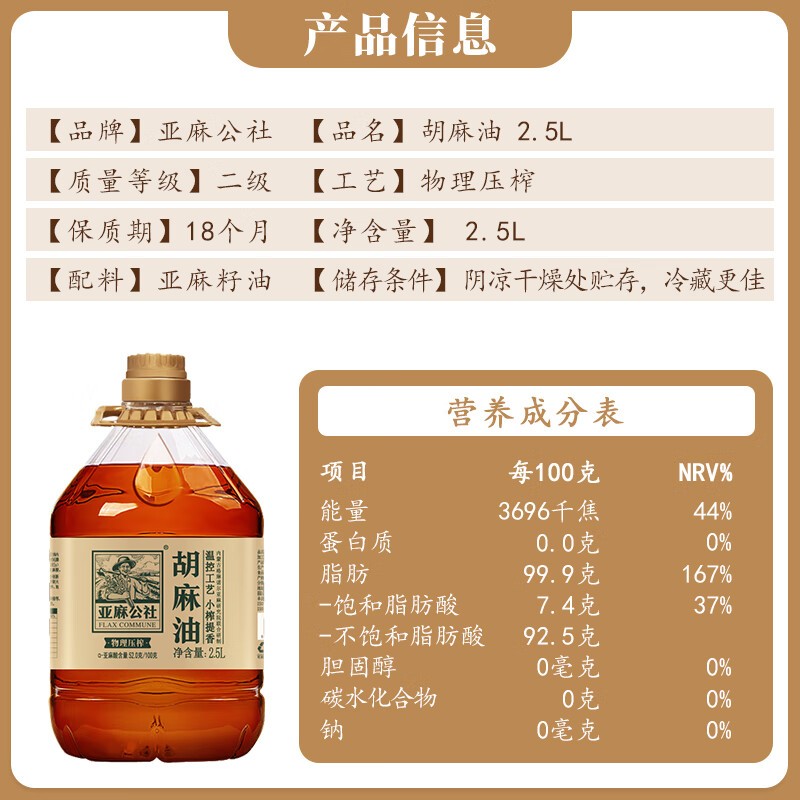 亚麻公社 2.5 胡麻油 胡麻油2.5L 热榨亚麻籽油 月子油 内蒙特产 食用油