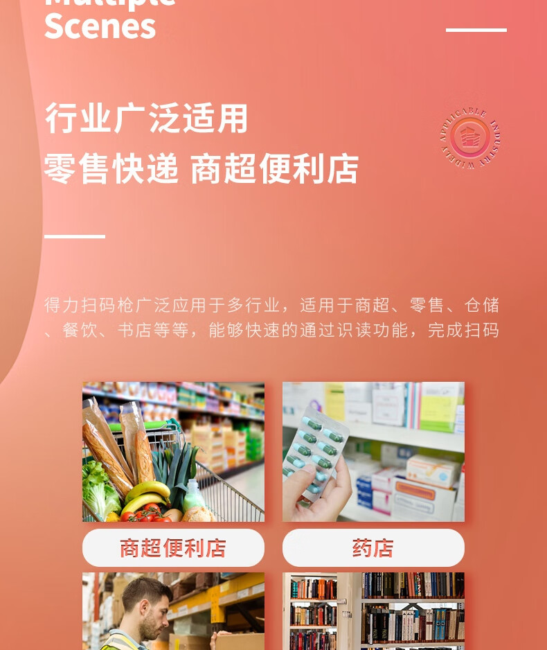 得力/deli 14952W 条码扫描器 二维码收银医保支付 快递物流查询备件仓库白色
