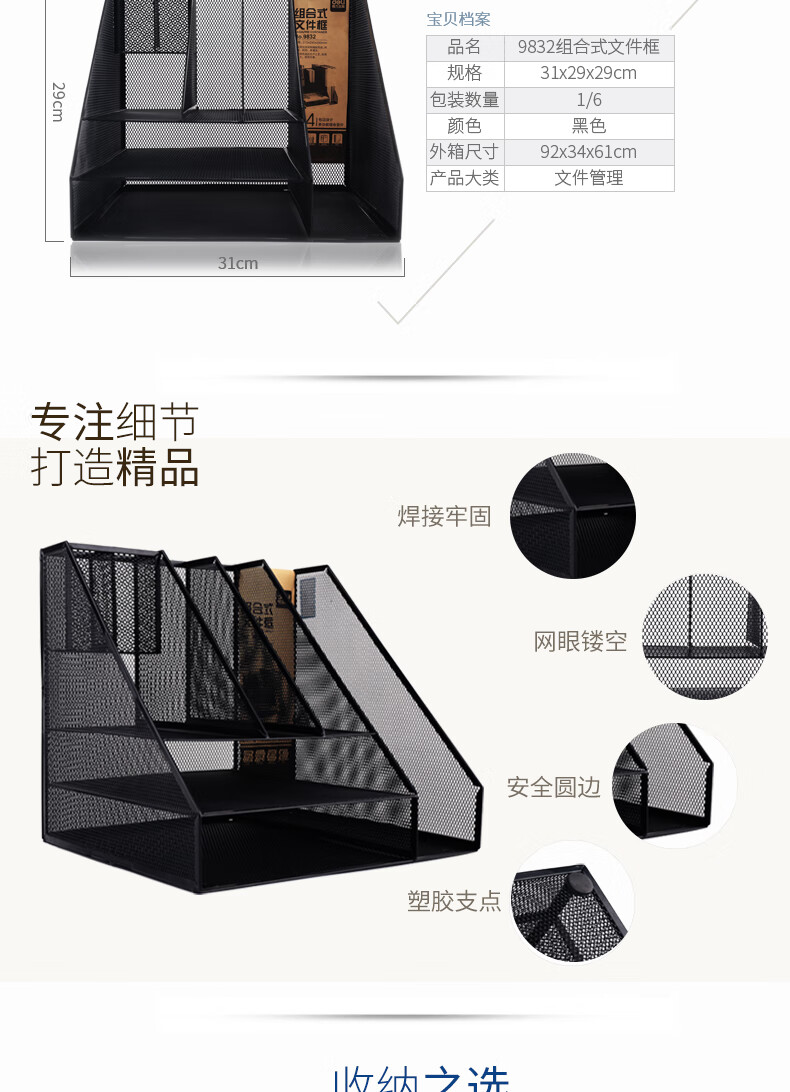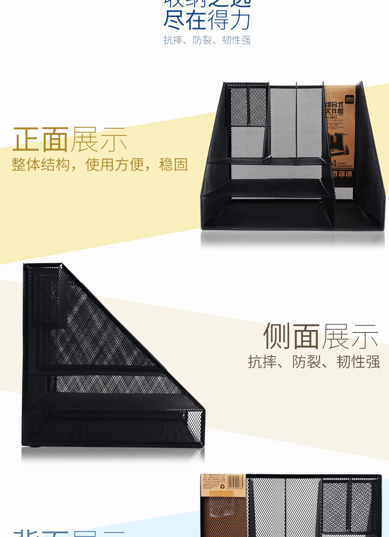 得力/deli 9832 文件筐 多功能金属网材组合式文件框栏