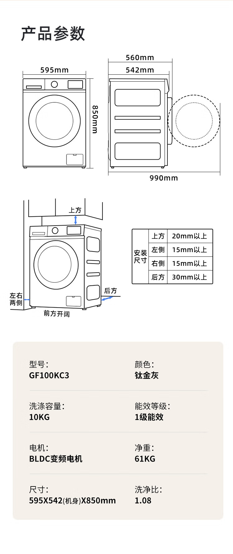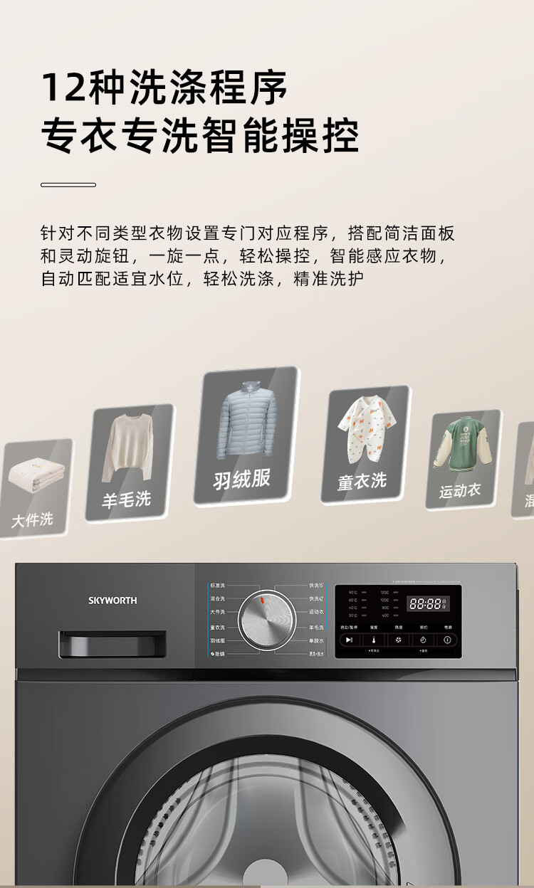 创维/Skyworth GF100KC3洗衣机 钛金灰 10公斤变频滚筒