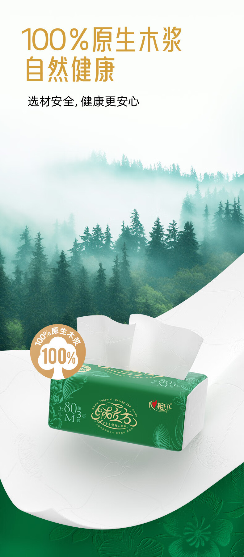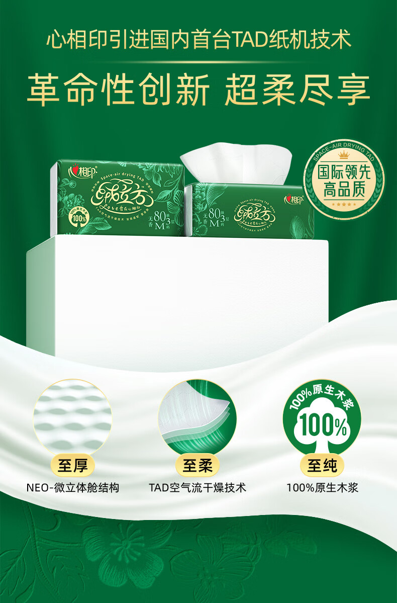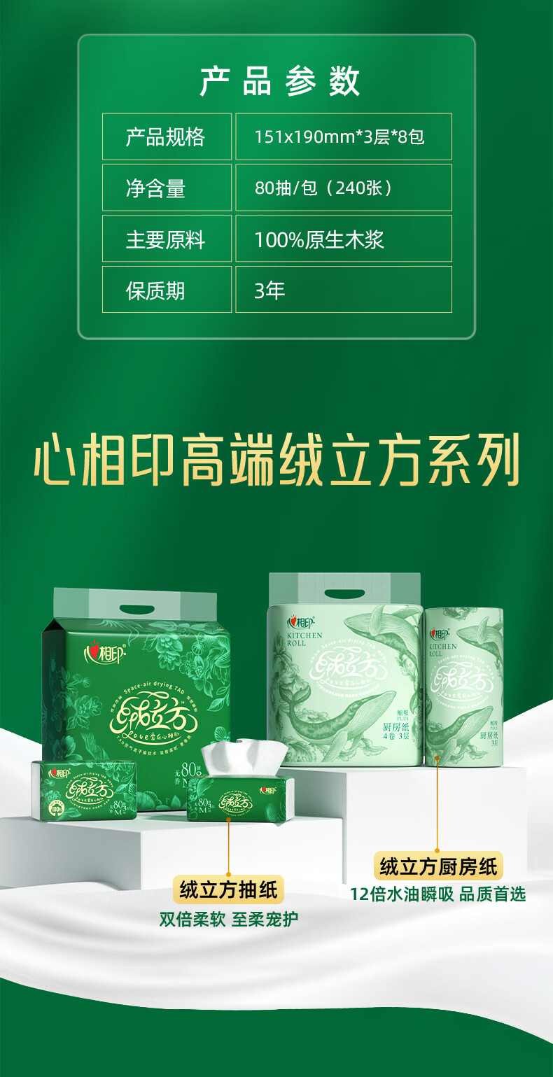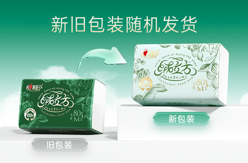 心相印/MindActUponMind TDT1080 软包抽取式面纸 心相印绒立方80抽三层塑装面巾纸8包*1提(M码)