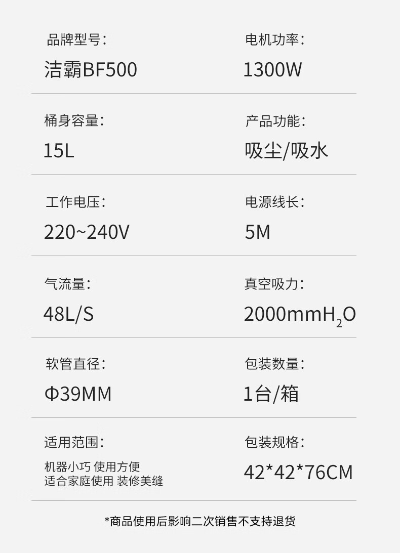 白云/BAIYUN BF500 清洗机 商用地毯大吸力大功率1300W吸尘器15L