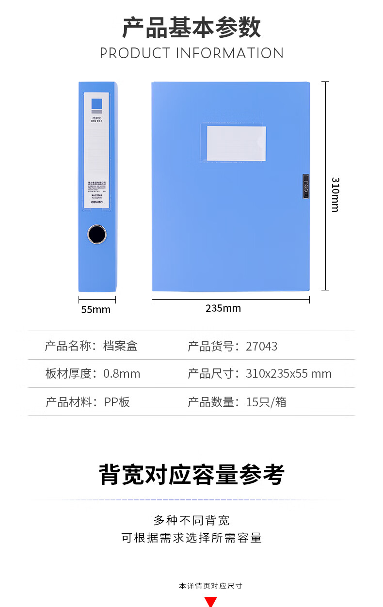 得力/deli 27043 文件夹 15只55mmA4 塑料文件盒加厚档案盒