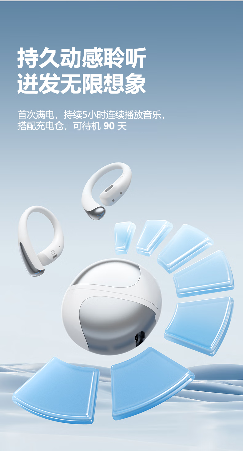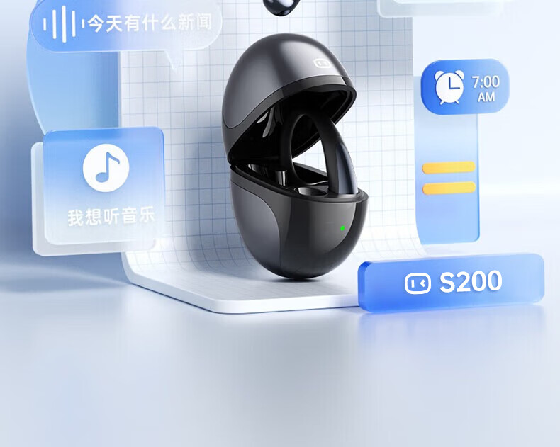 小度 S200 耳机/耳麦 蓝牙耳机挂耳式开放不入耳骨传导概念高音质运动防水 黑色