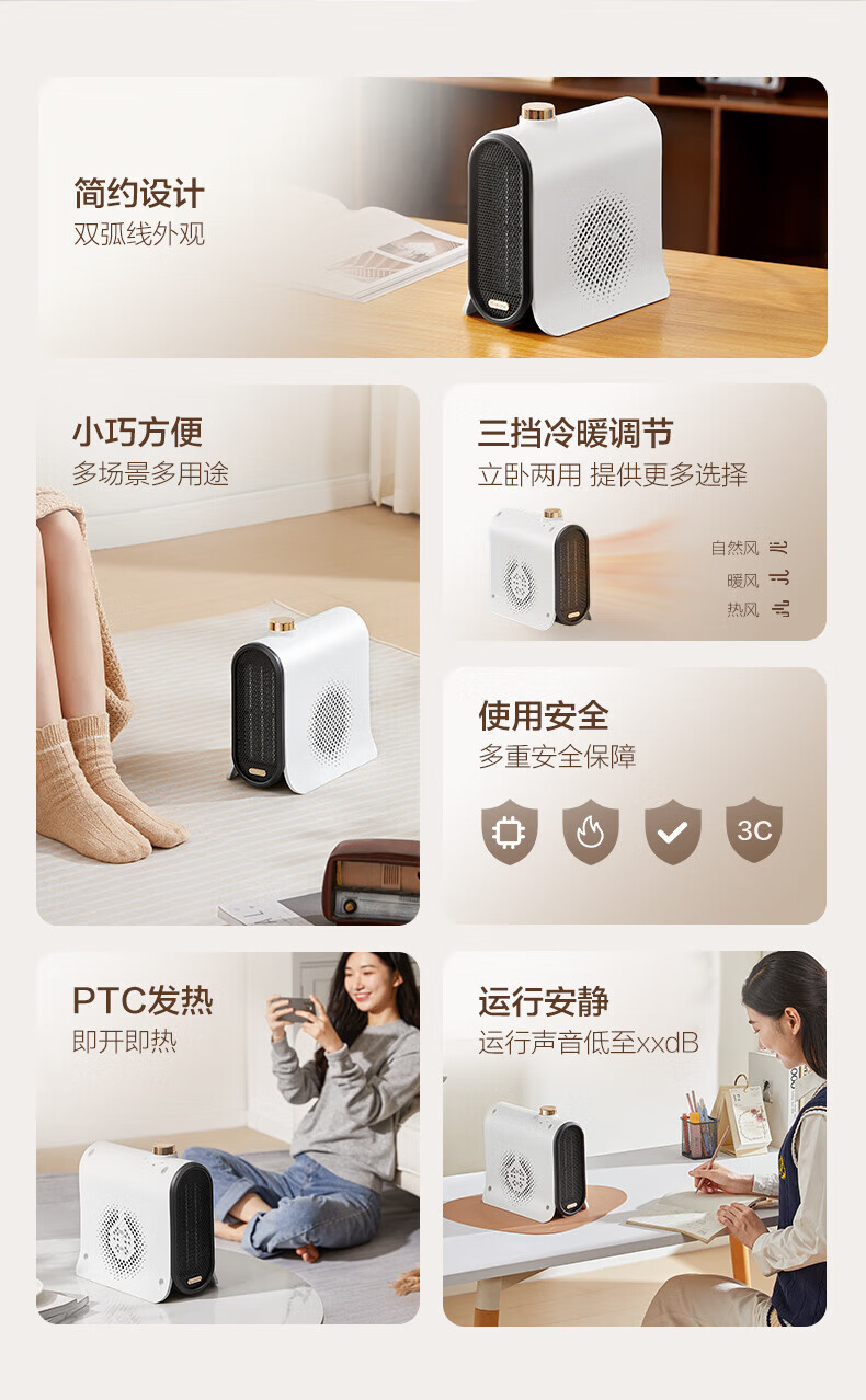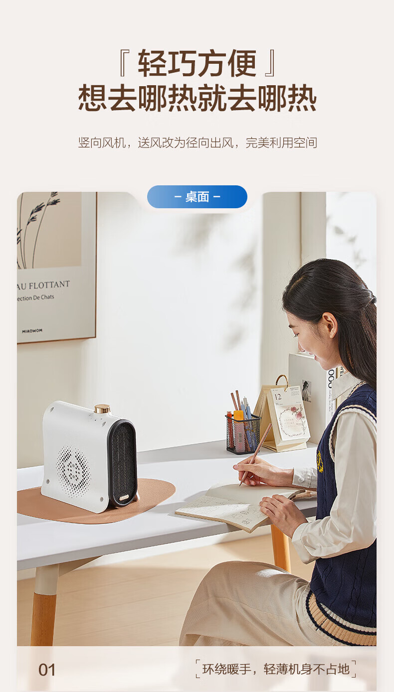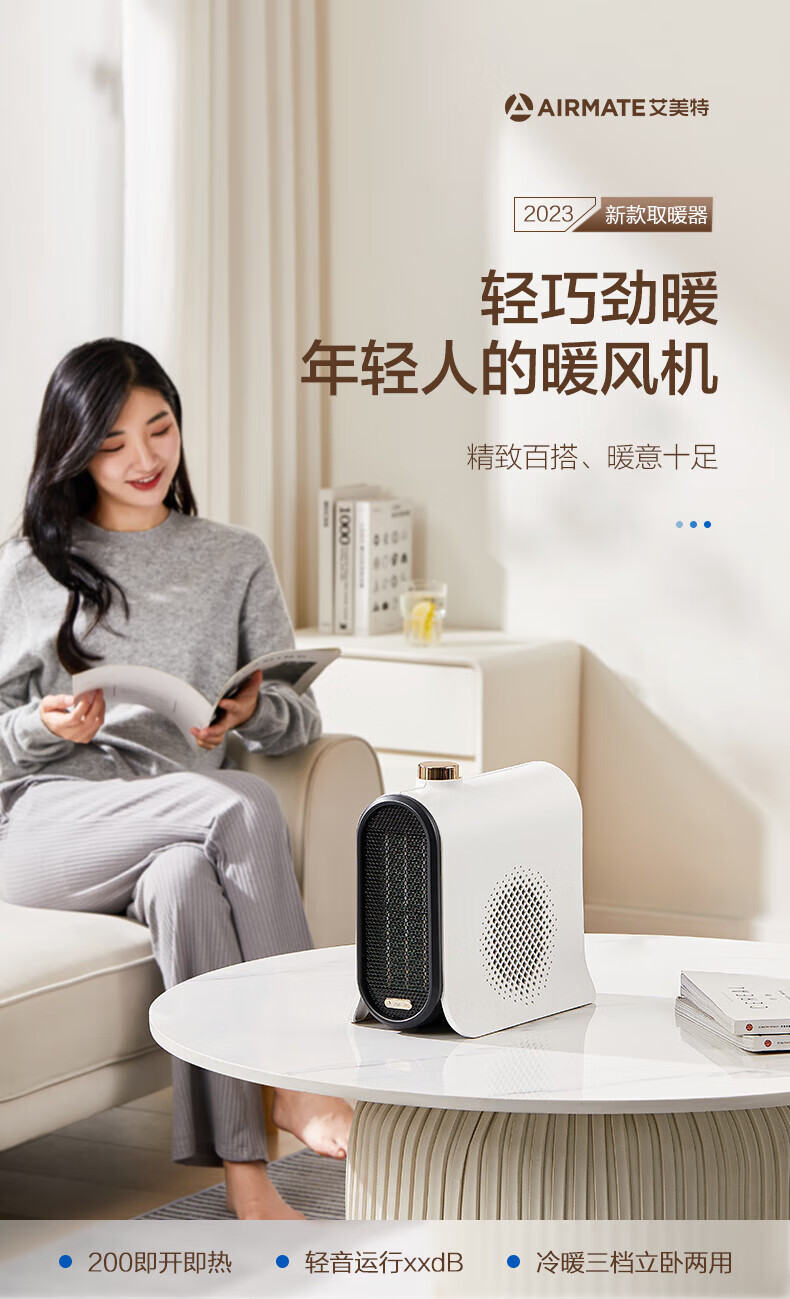艾美特/Airmate HP20-K43取暖器 暖风机家用取暖器 办公室宿舍桌面电暖气