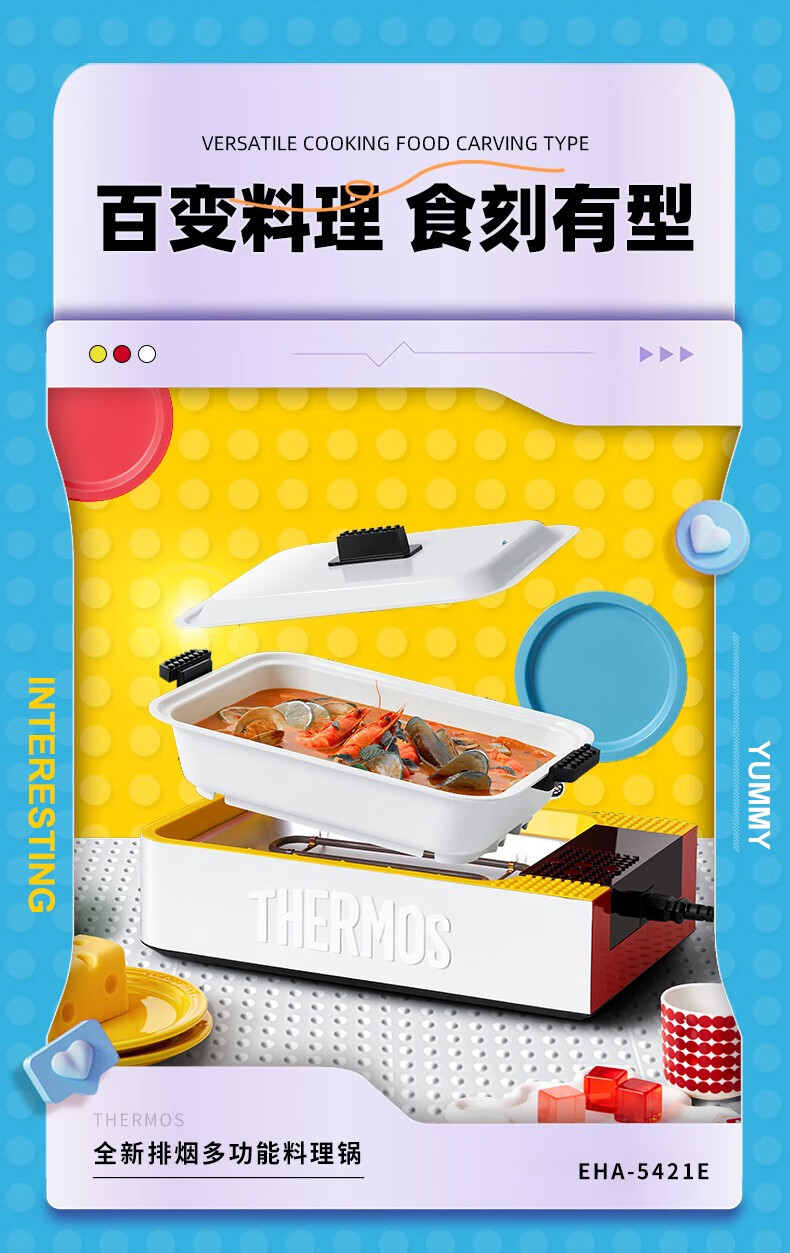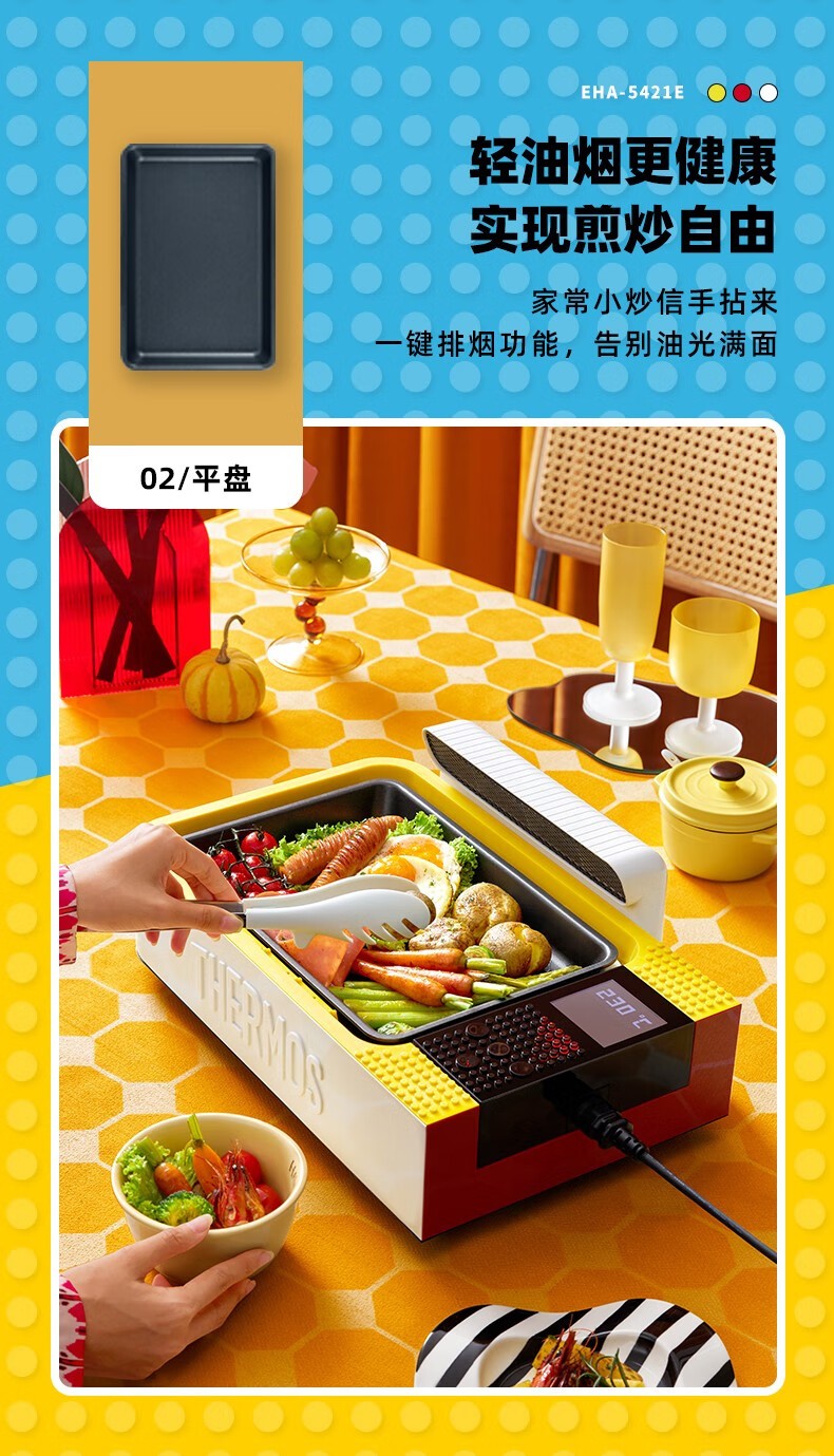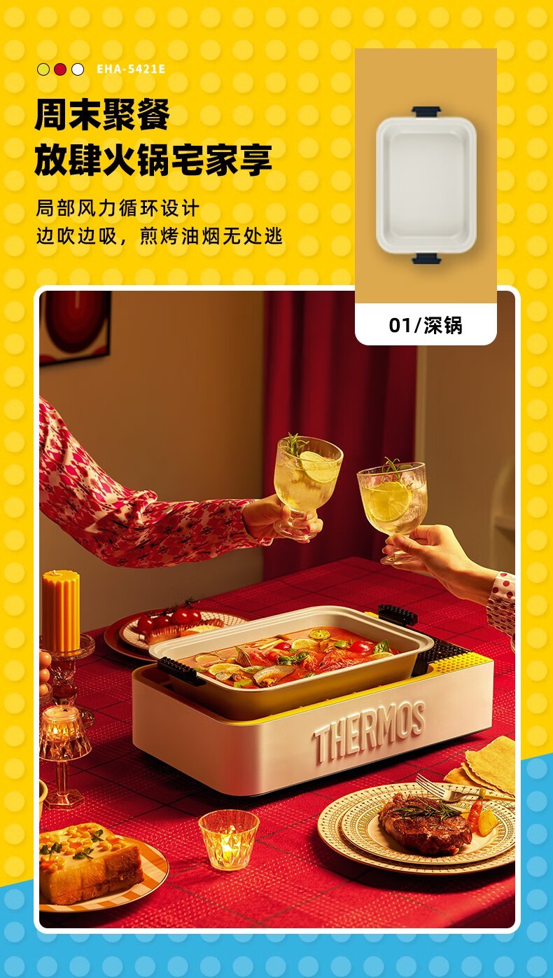 膳魔师/THERMOS EHA-5421E炒锅 多功能锅料理锅家用烤肉锅电热火锅煎烤涮一体锅