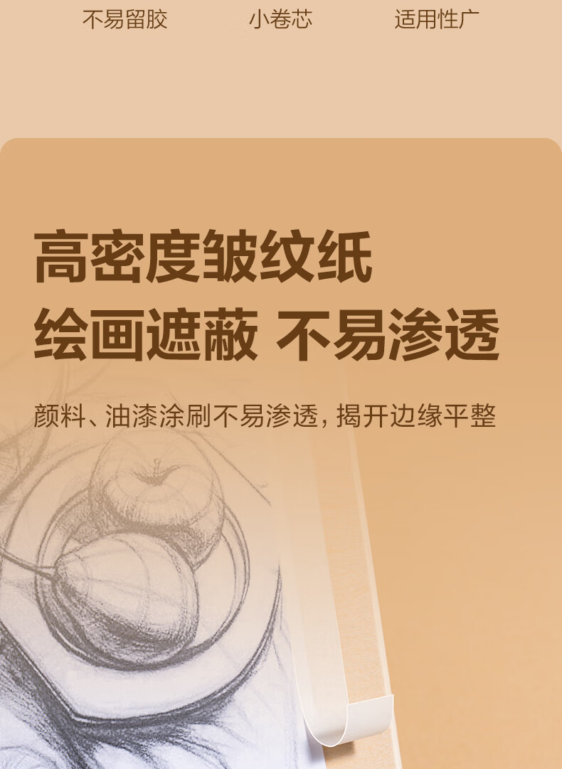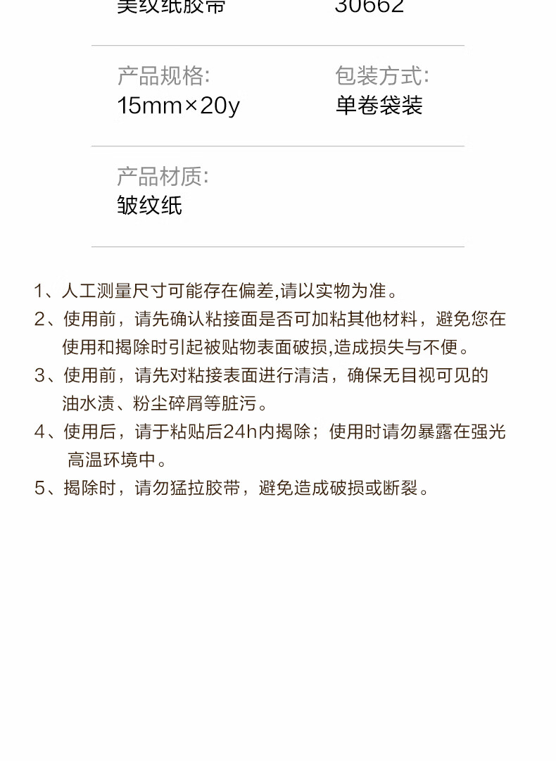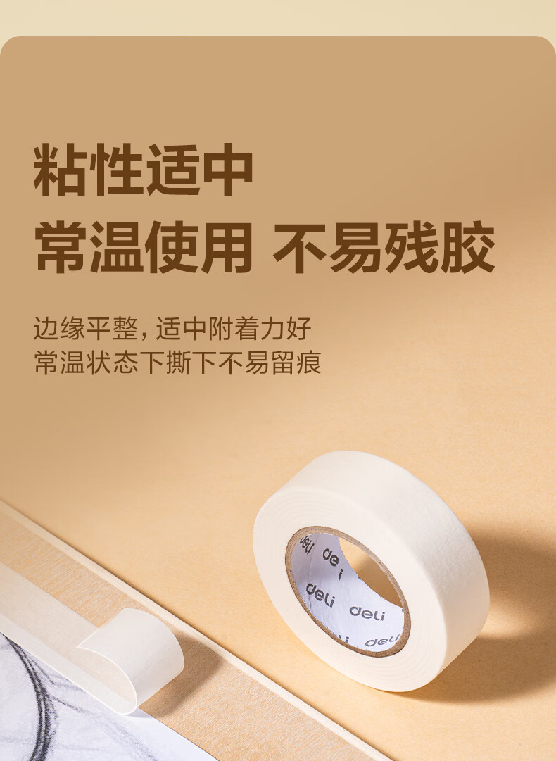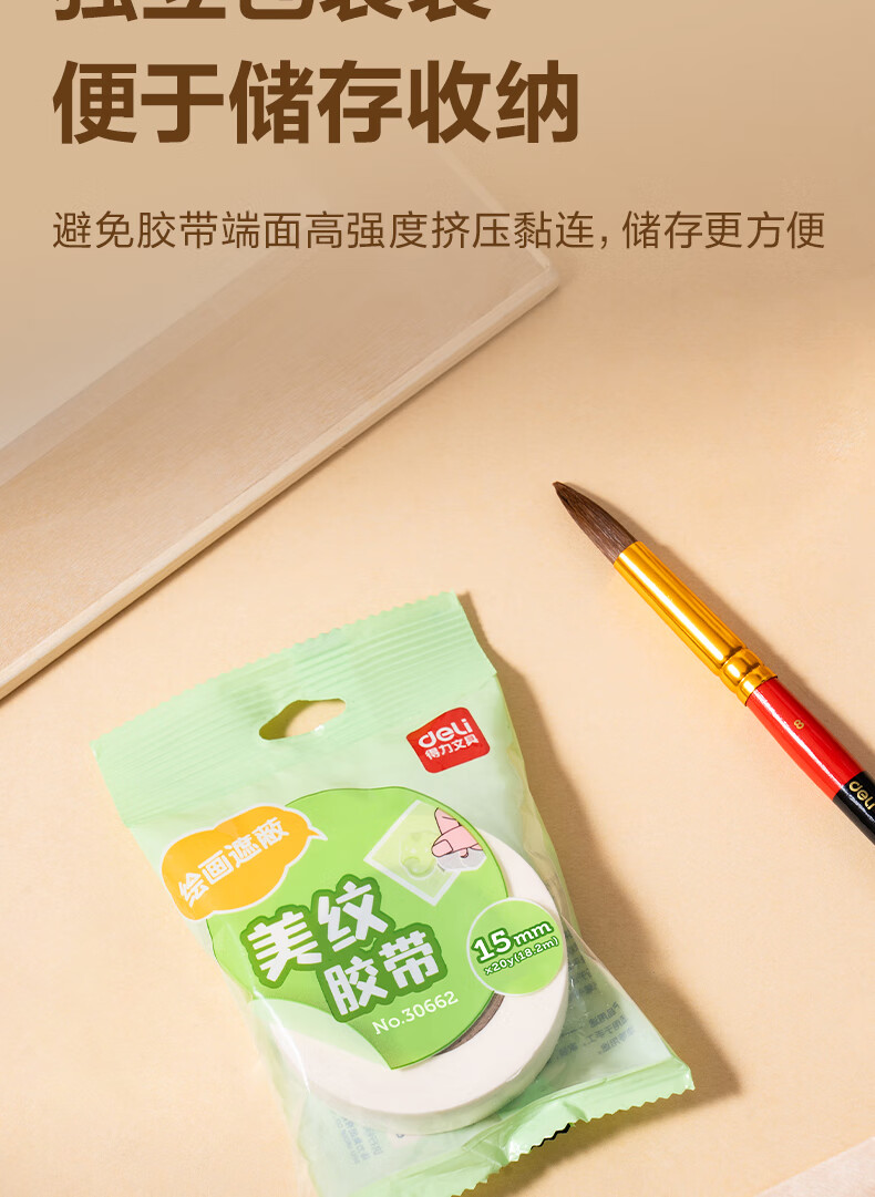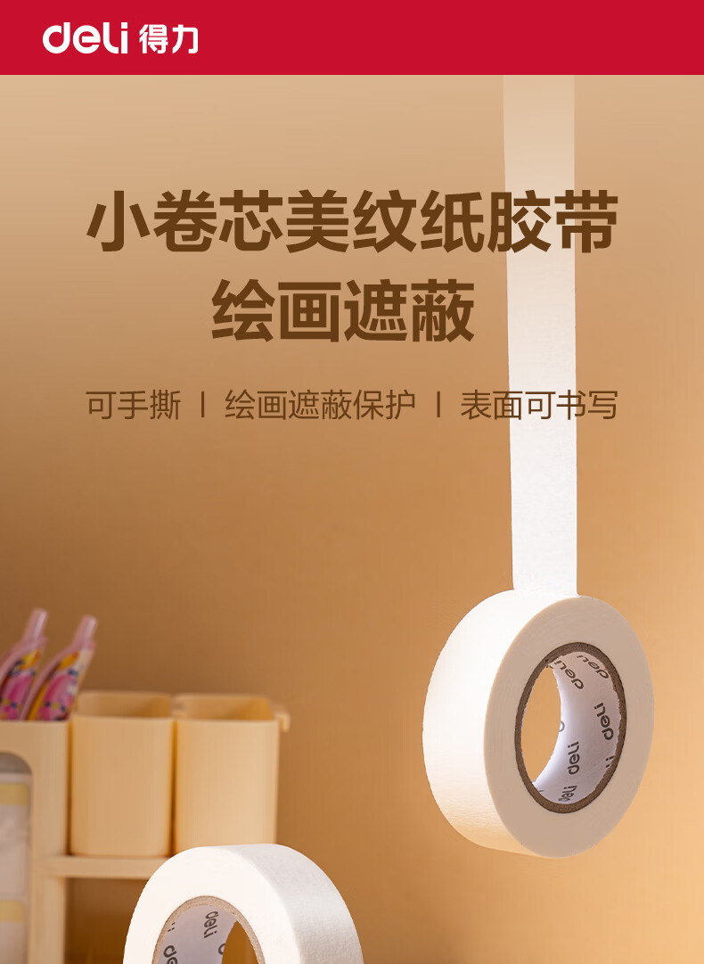 得力/deli 30662 胶带 15mm*20y*145μm 美术美工分色 装修遮蔽美缝贴膜刷漆保护无痕贴纸 小卷芯1卷