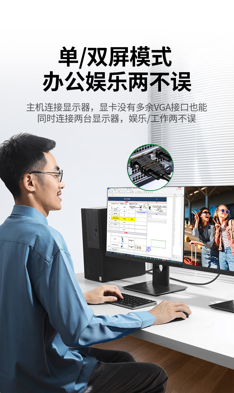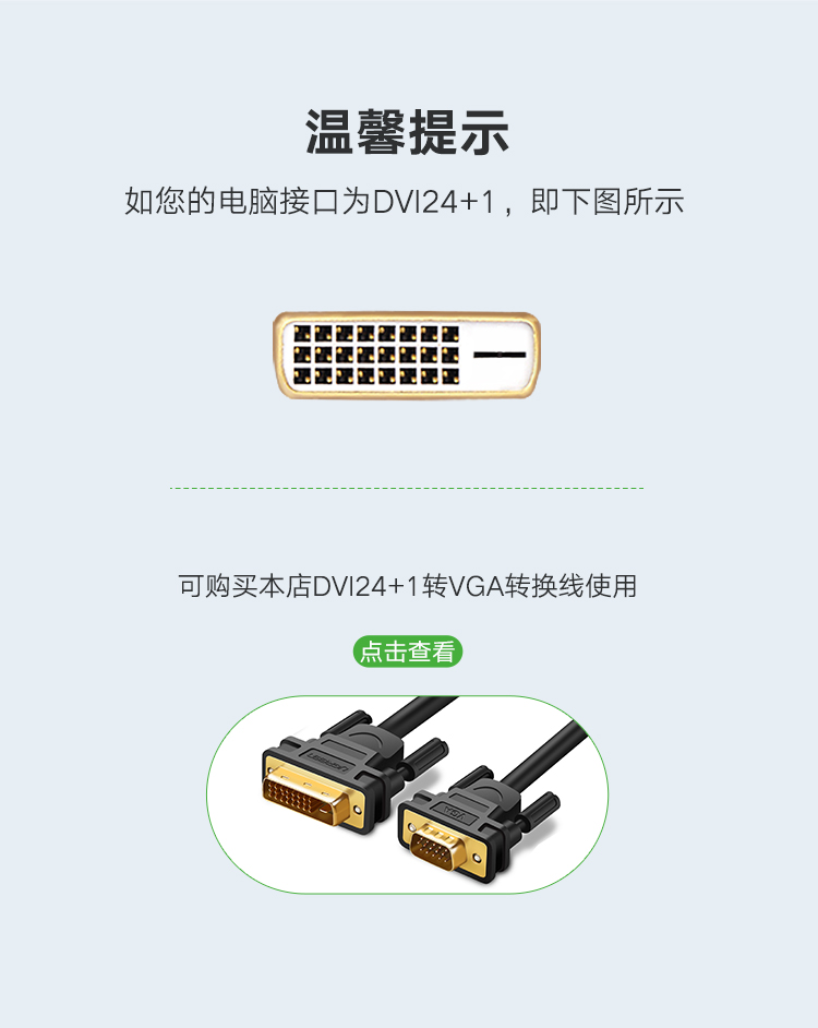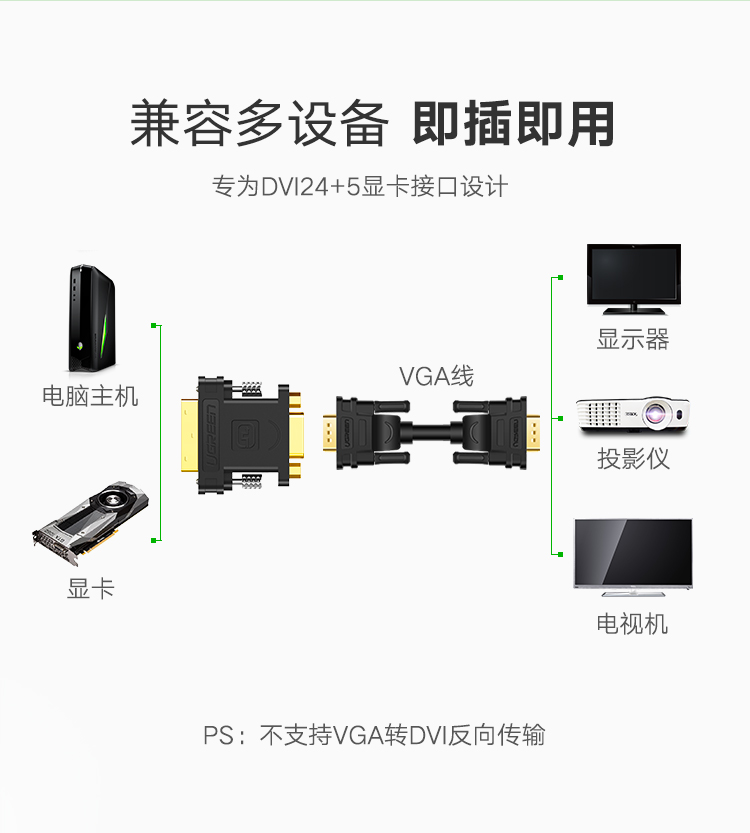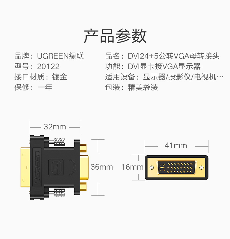 绿联/UGREEN 20122 网络连接设备 DVI公转VGA母转接头 DVI-I/DVI24+5高清转换器连接线
