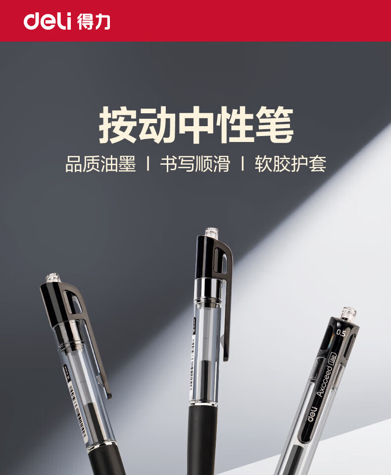 得力/deli S12 书写用笔类用具 按动中性笔签字笔 0.5mm子弹头办公学生中高档经典办公按动笔 S12 红色12支/盒