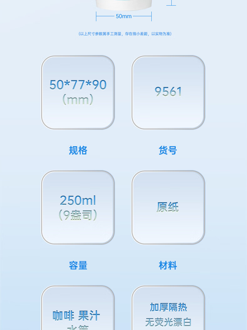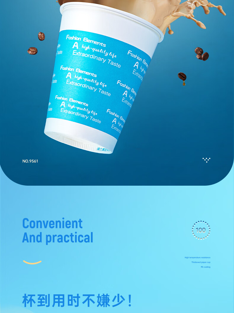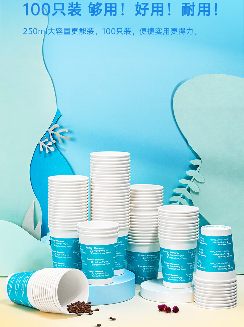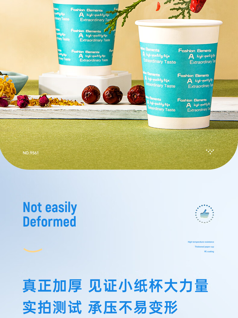 得力/deli 9561 一次性杯子 250ml(9盎司)加厚一次性杯子 水杯/纸杯 100只装