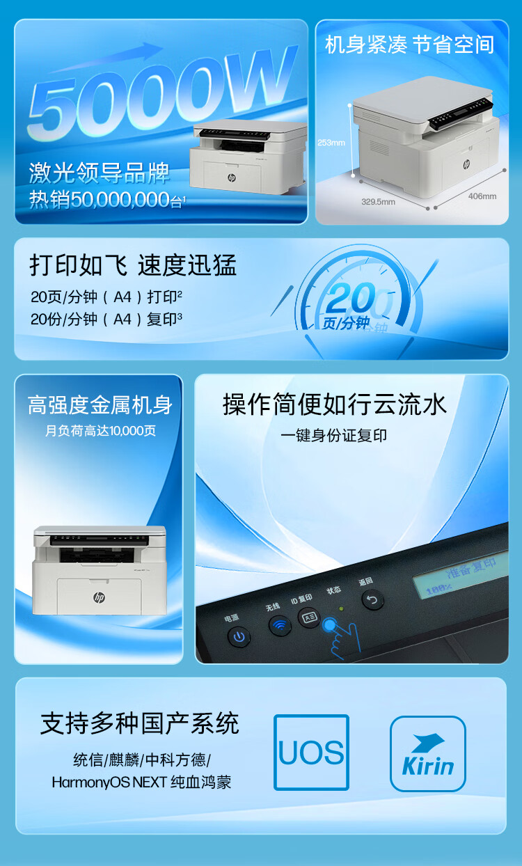 惠普/HP 115a 多功能一体机 黑白激光打印机A4家用学生打卷子作业 USB三合一 打印复印扫描 (1188w焕新版)