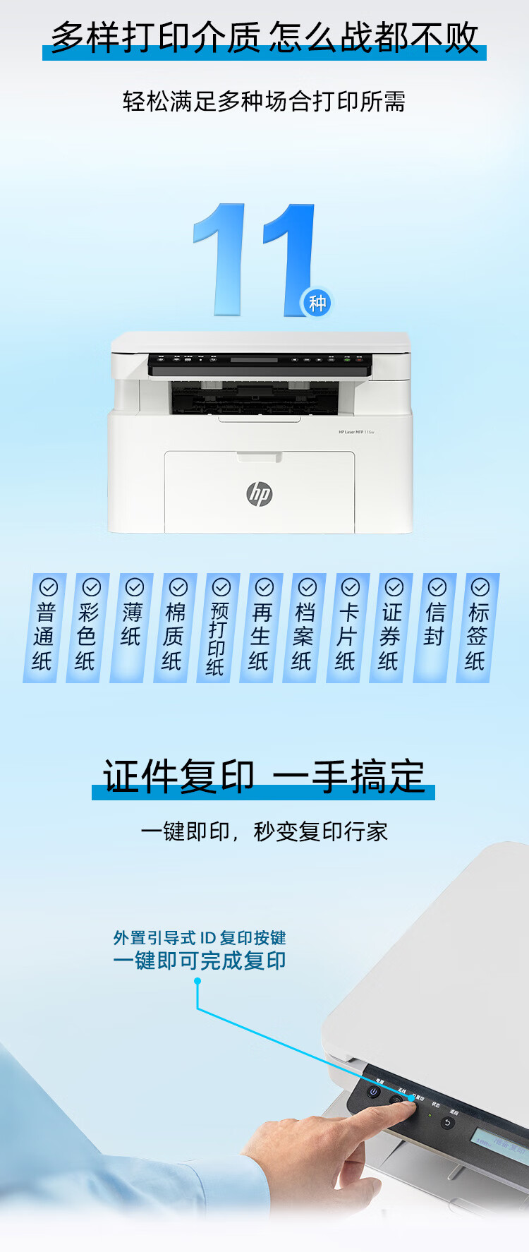 惠普/HP 115nw 多功能一体机 黑白激光打印机 无线三合一家用打印机 打印复印扫描 支持有线连接(1188nw焕新版)