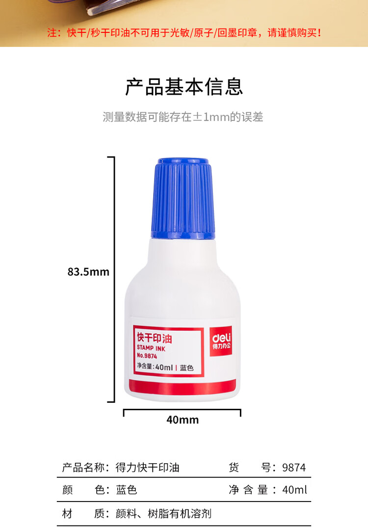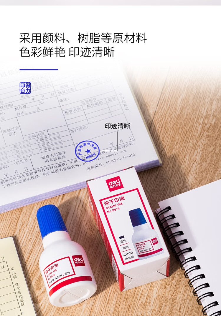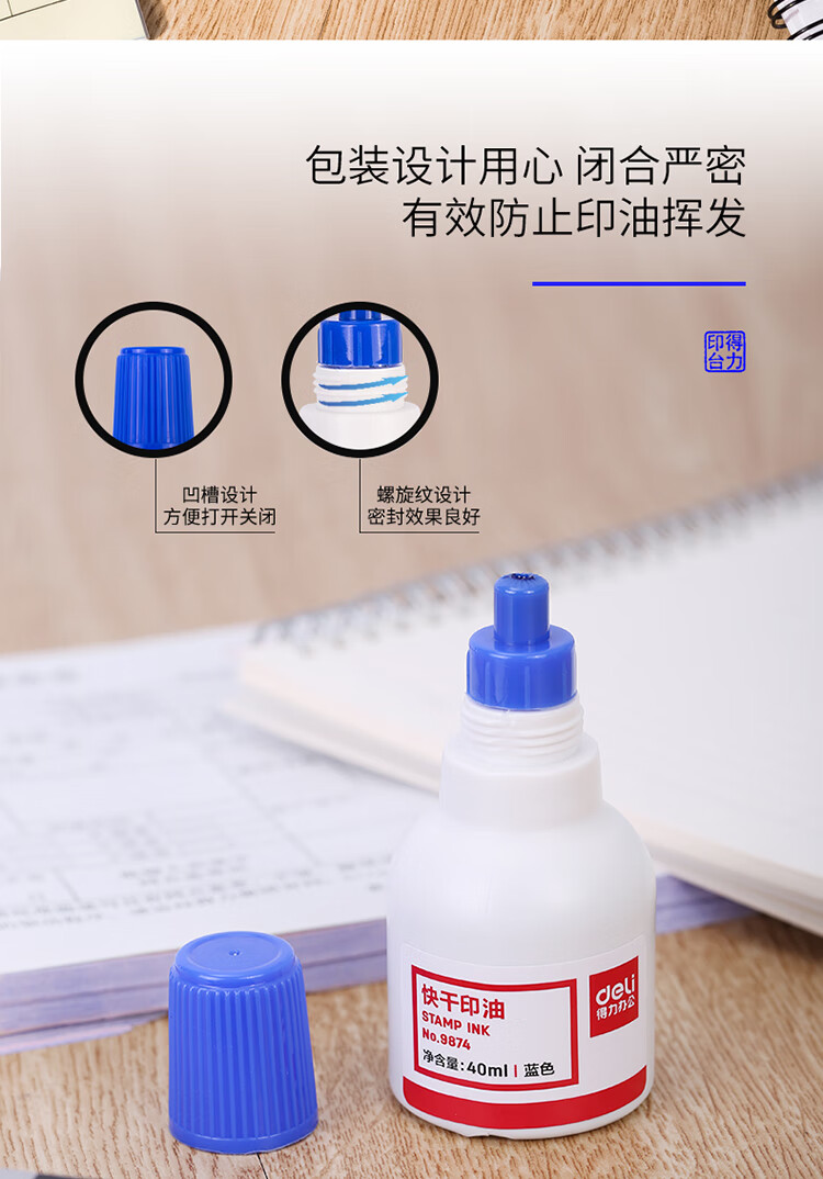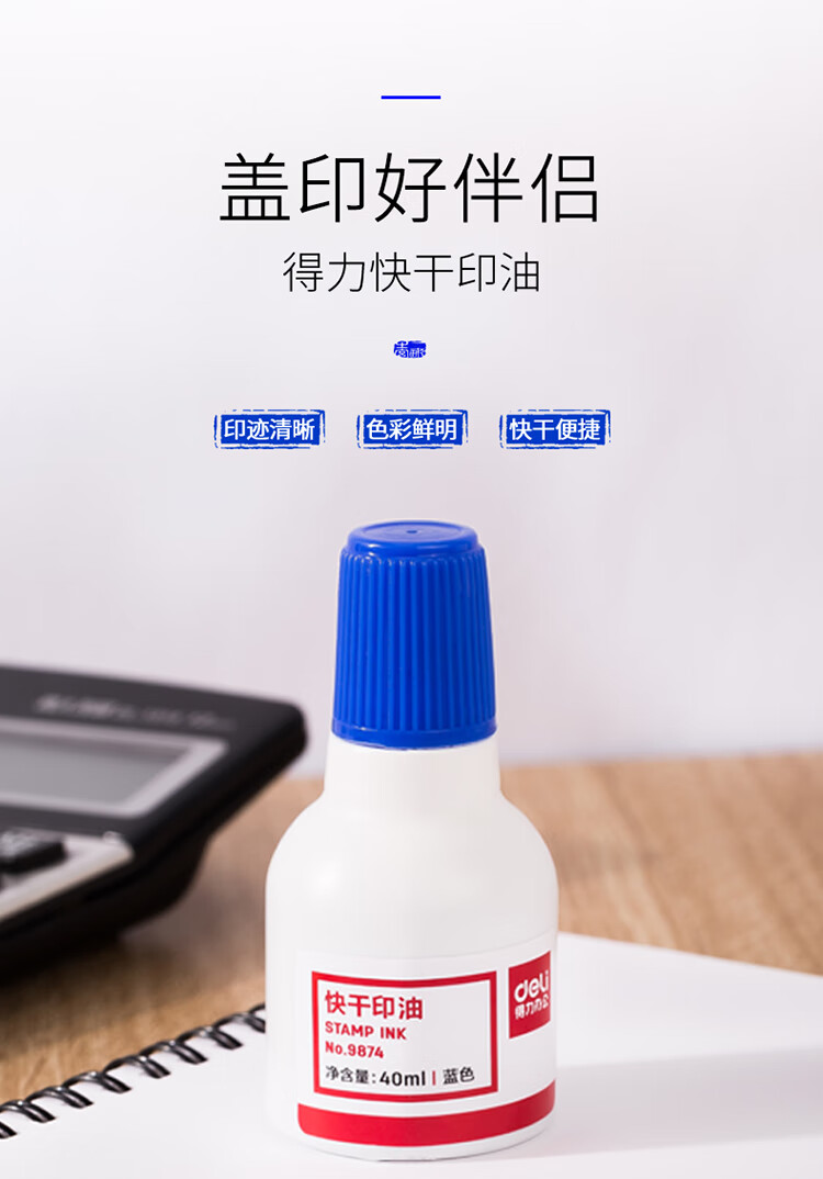 得力/deli 9874 印台/印泥/印油 40ml财务印章快干清洁印油印泥 财务用品 办公用品 蓝色