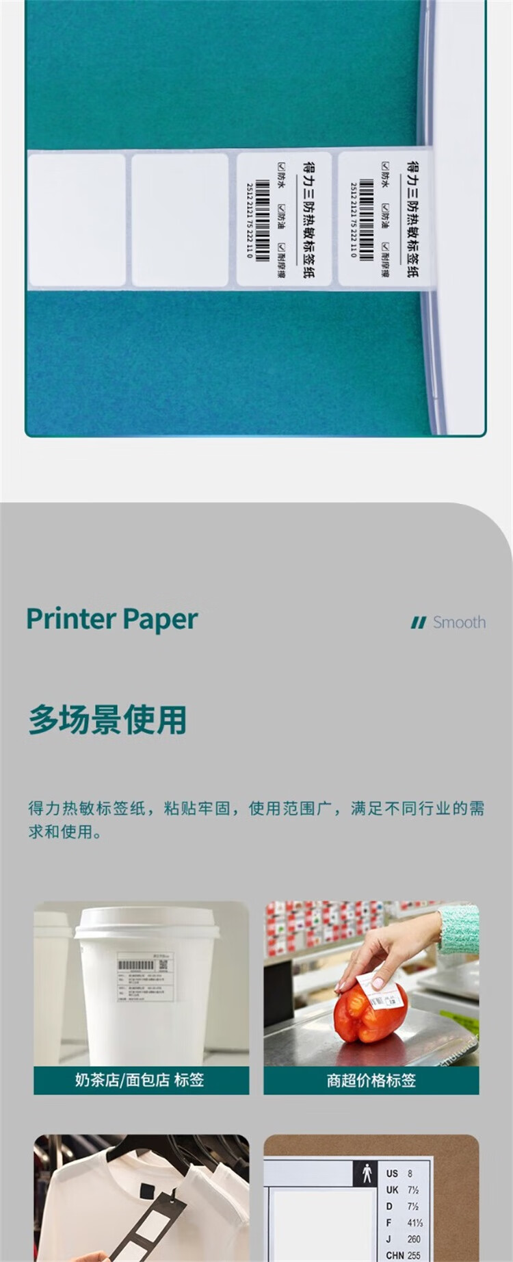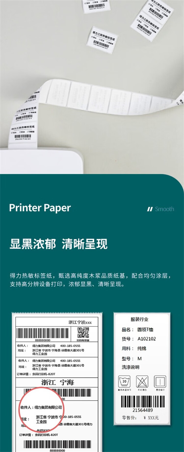 得力/deli 60*40标签打印纸/条码纸 防水防油不干胶多规格打印纸 横版 宽60*高40(2卷/筒共1600张)
