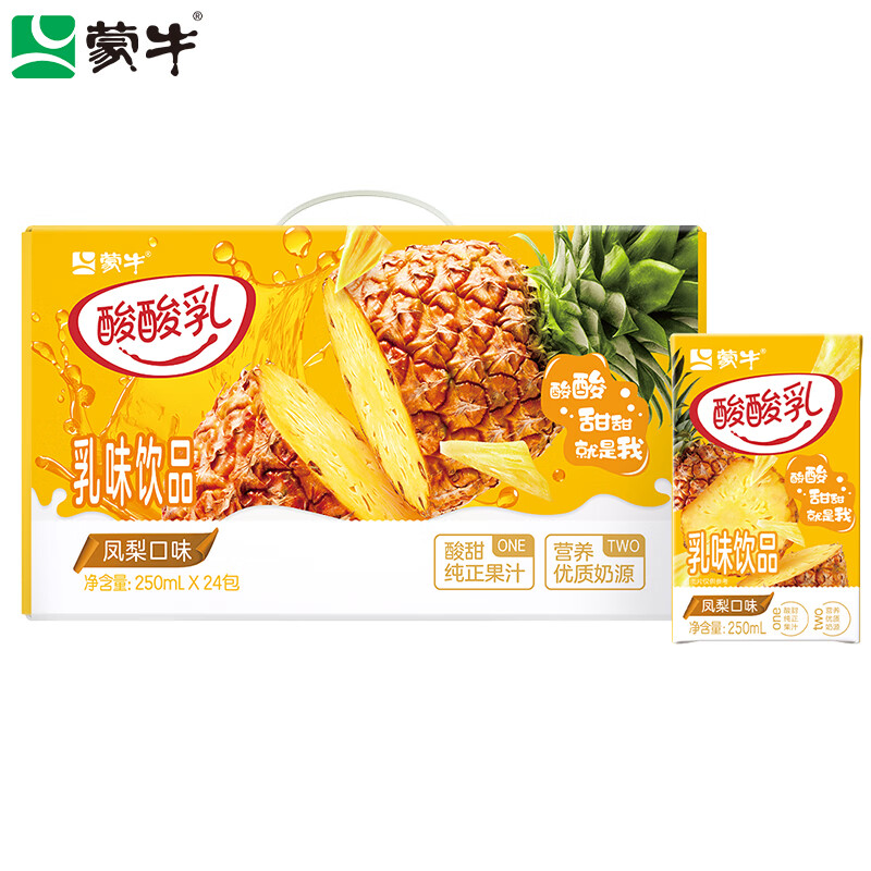 蒙牛/MENGNIU 250ml*24牛奶 蒙牛酸酸乳乳味饮品凤梨味乳味饮料利乐包250ml/包*24