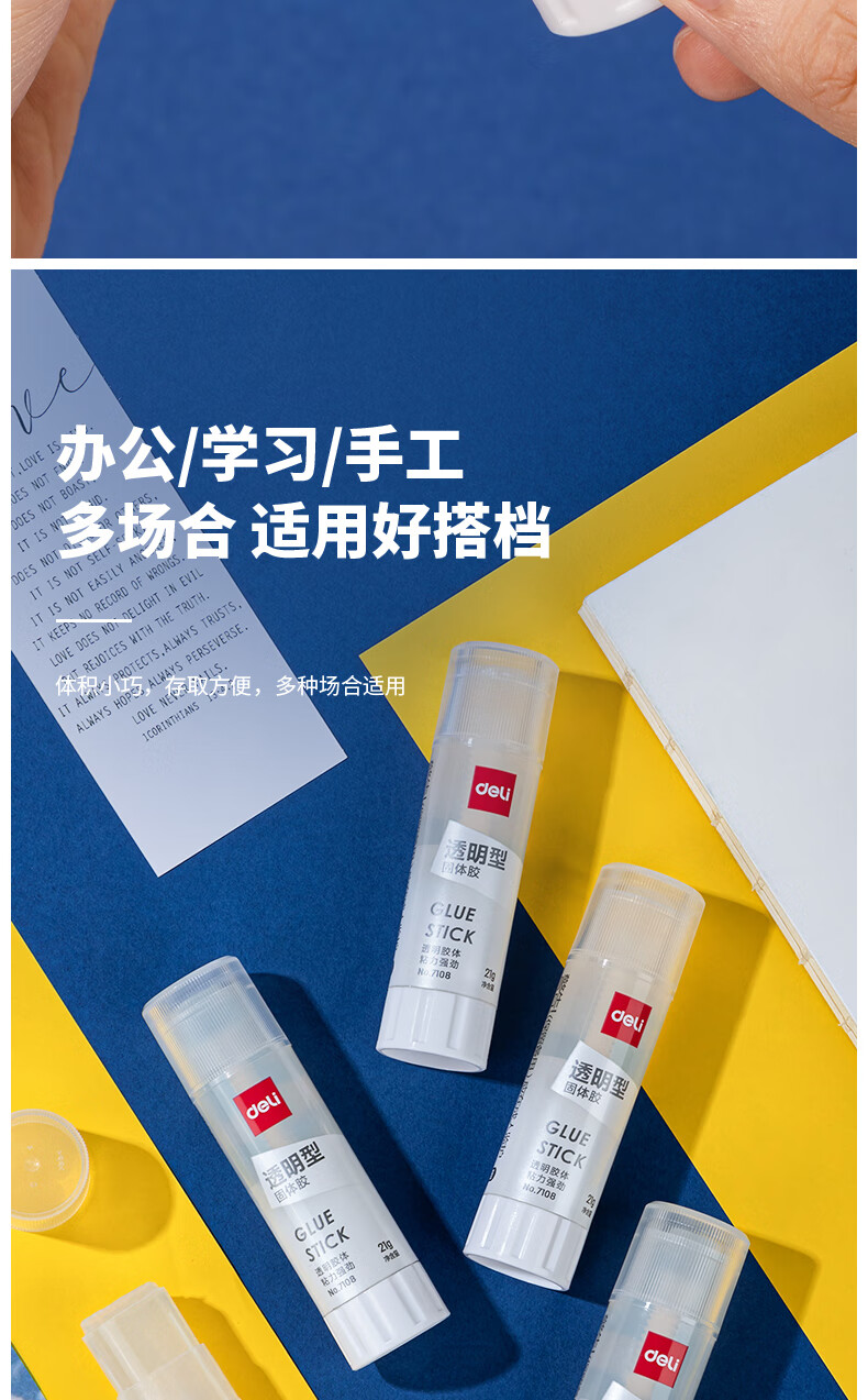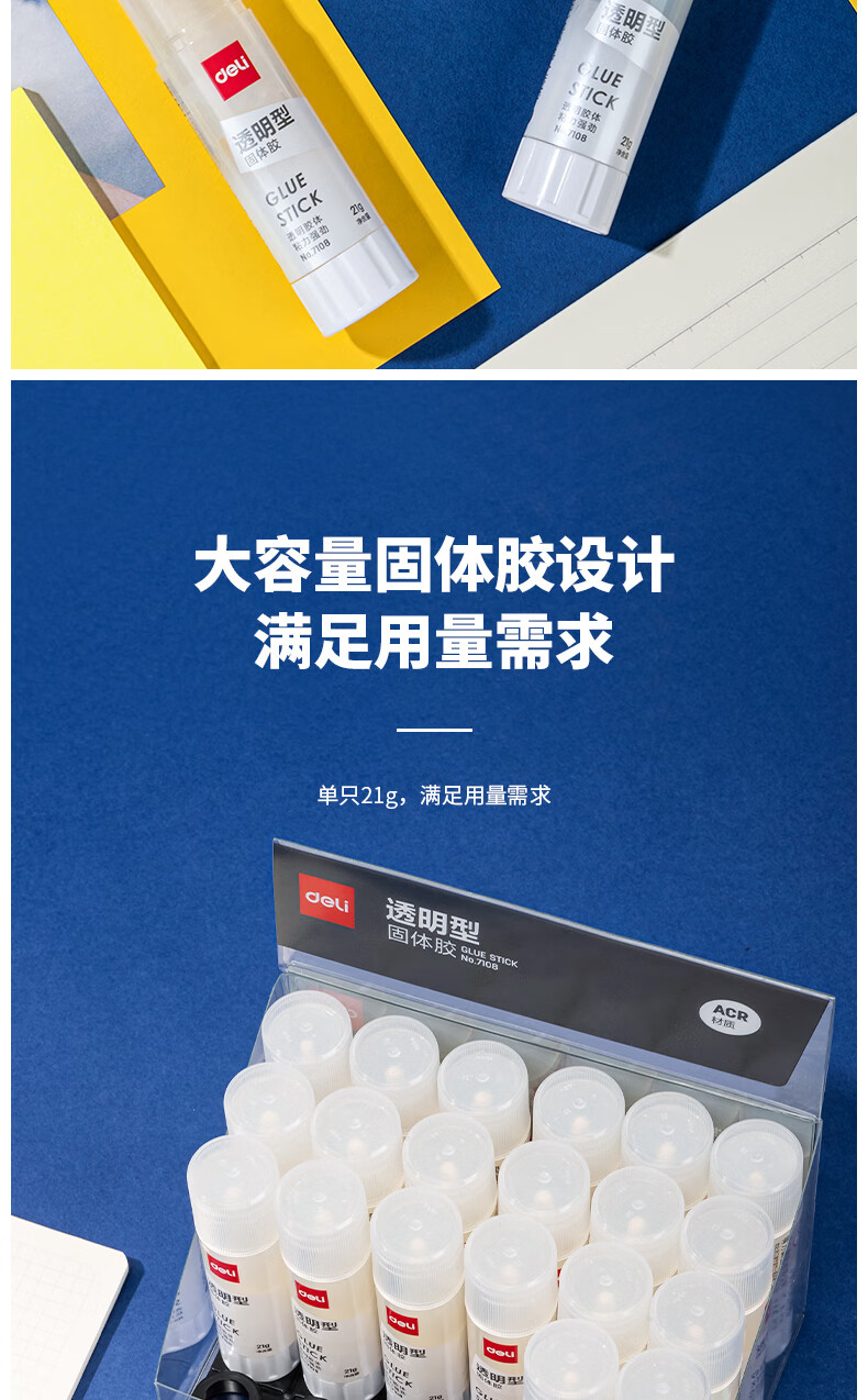 得力/deli 7108 胶棒/固体胶/胶水 21gACR固体胶 高粘果冻色透明胶棒 10只起拍
