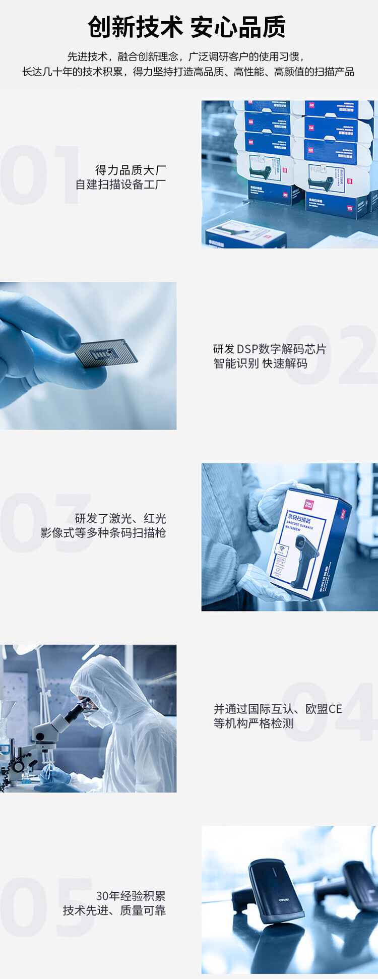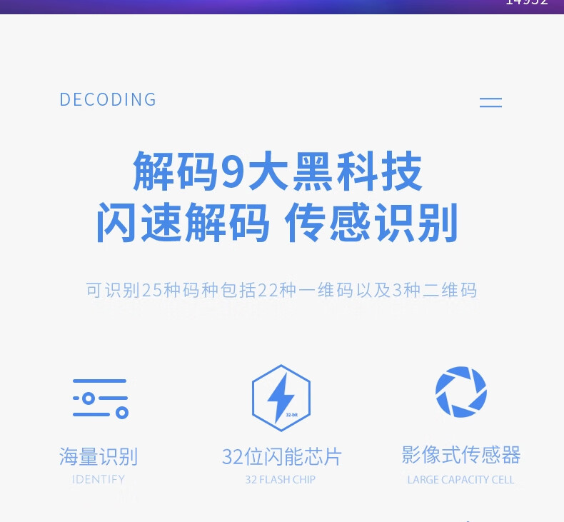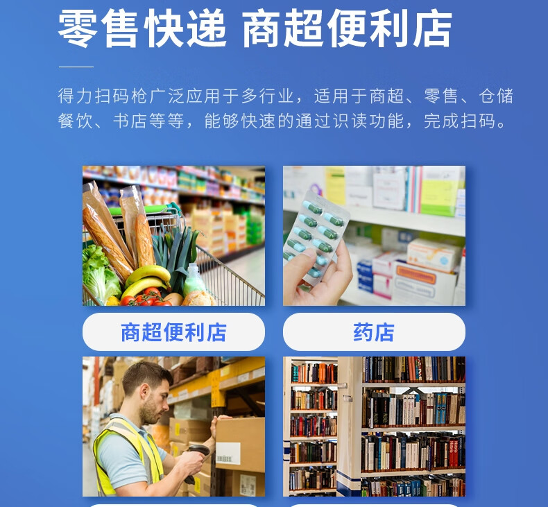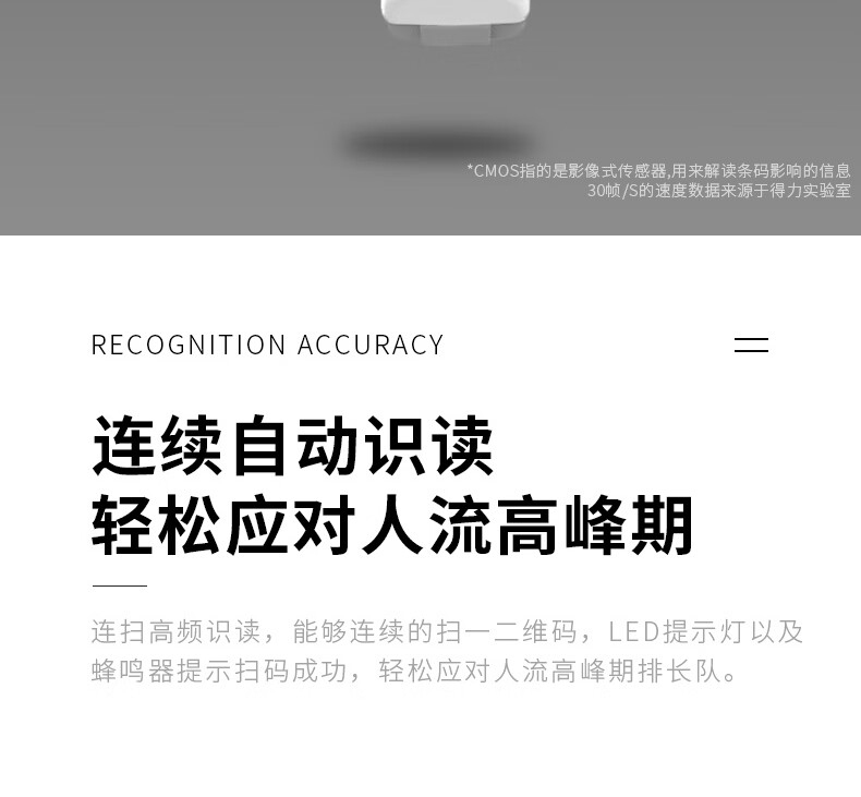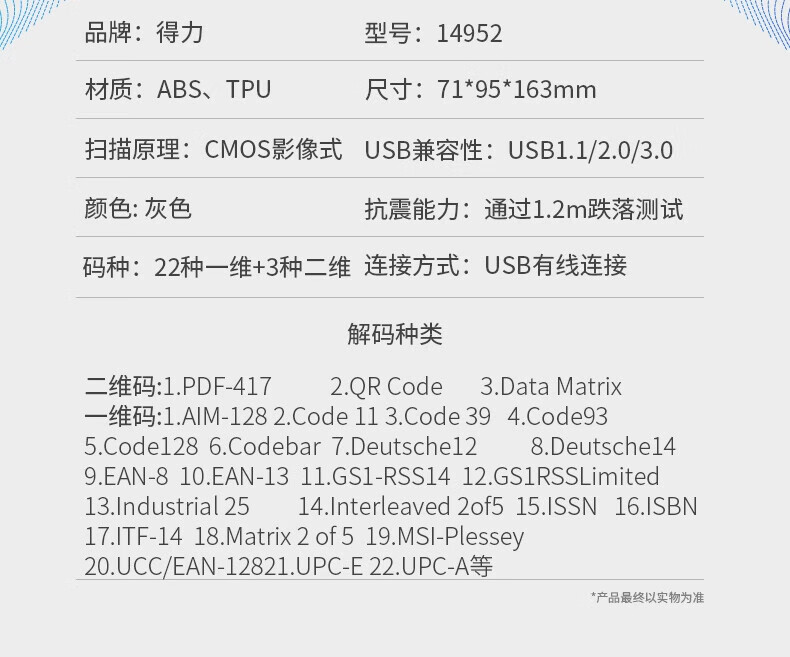 得力/deli 14952 条码扫描器 二维码收银医保支付 快递物流查询备件仓库白色