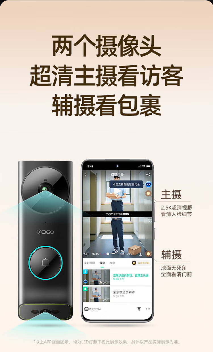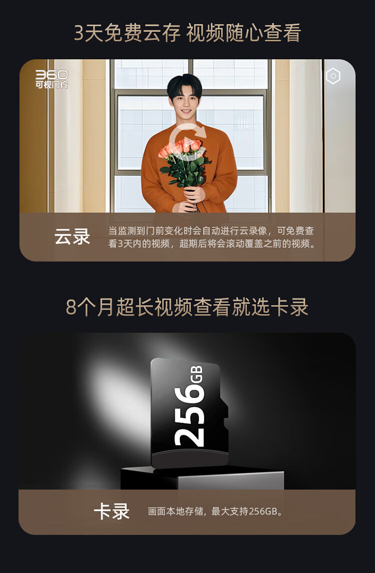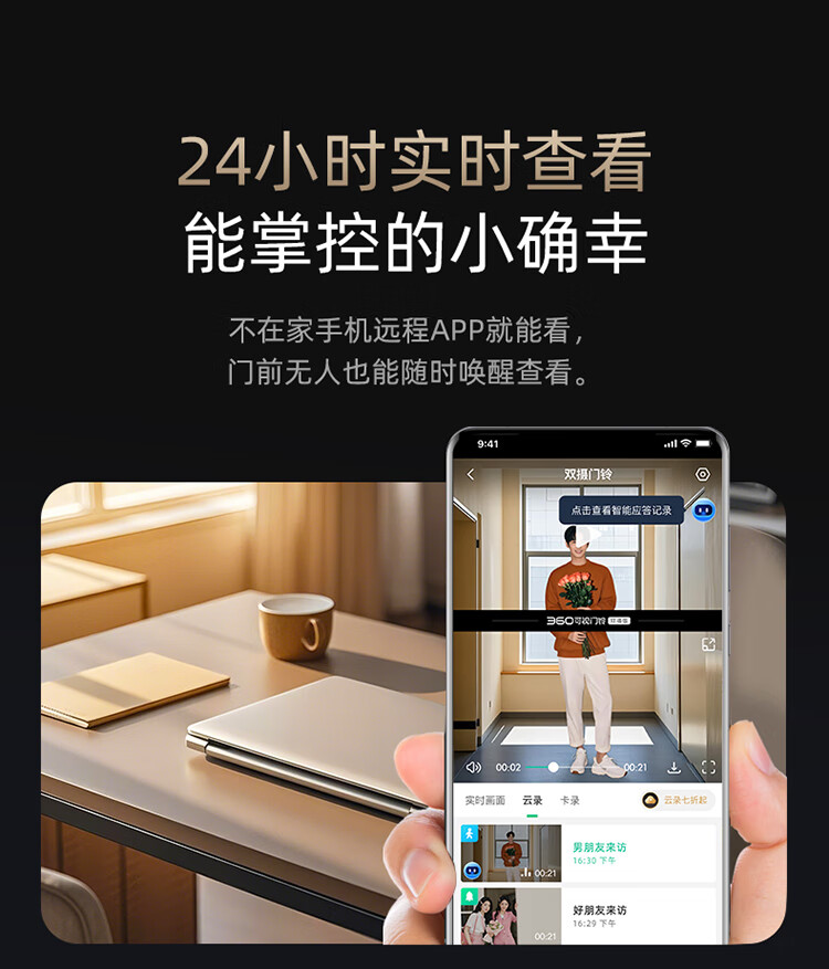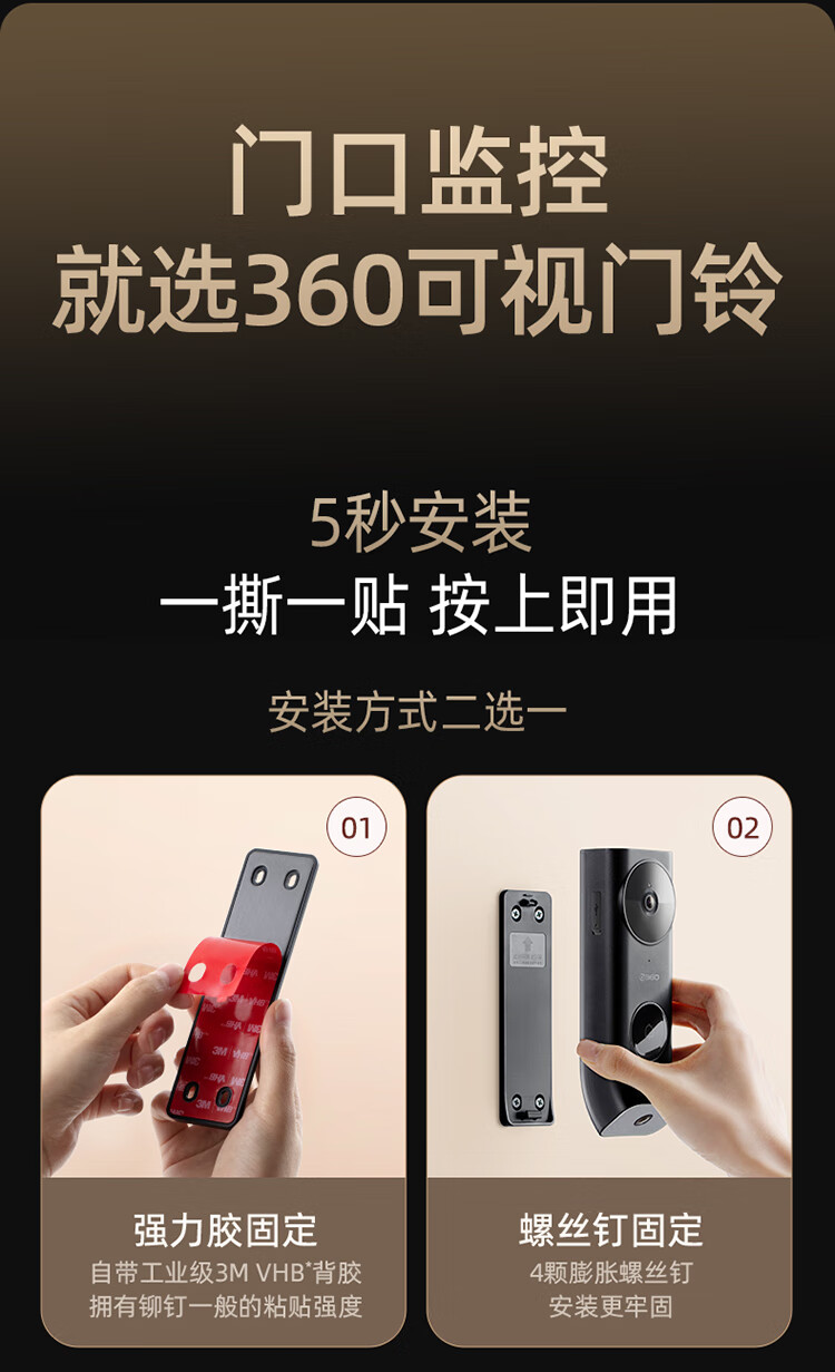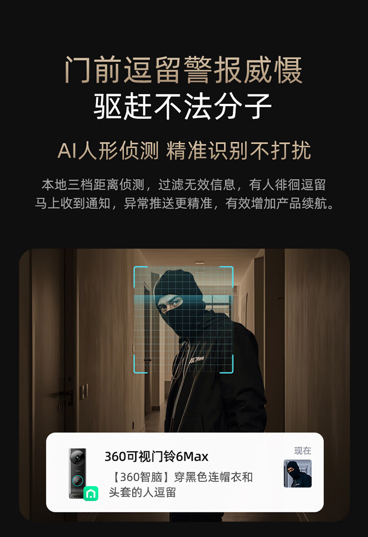 360 R6MAX门禁系统 600万像素超清 监控智能门铃 电子猫眼摄像头无线wifi手机远程预录制