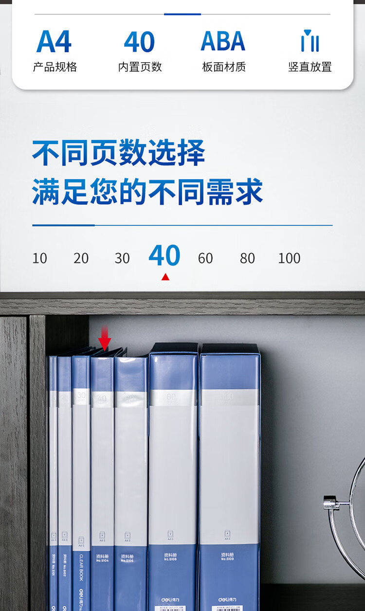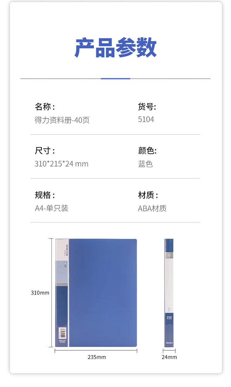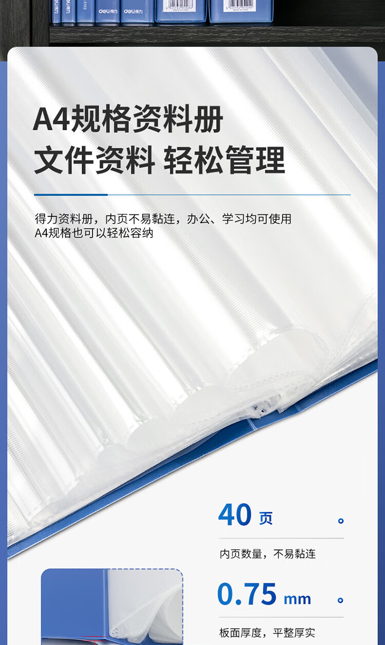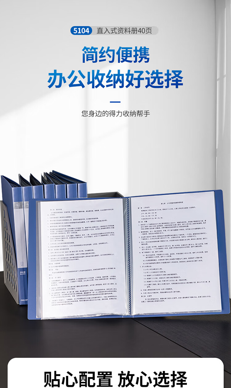 得力/deli 5104 文件夹 A4/40页资料册文件活页收纳册插