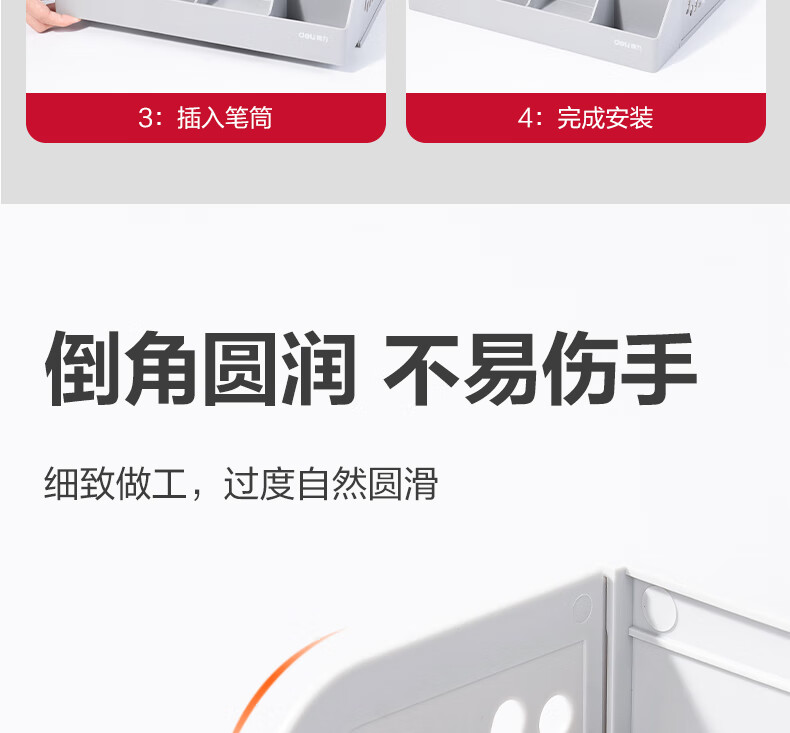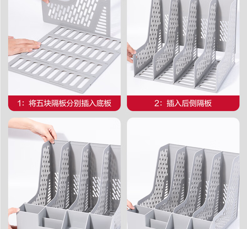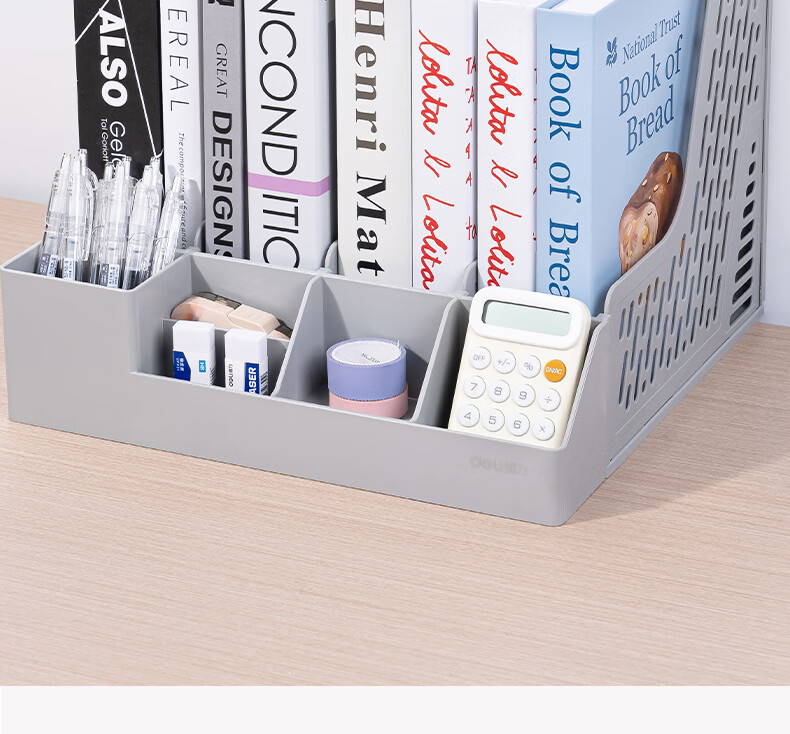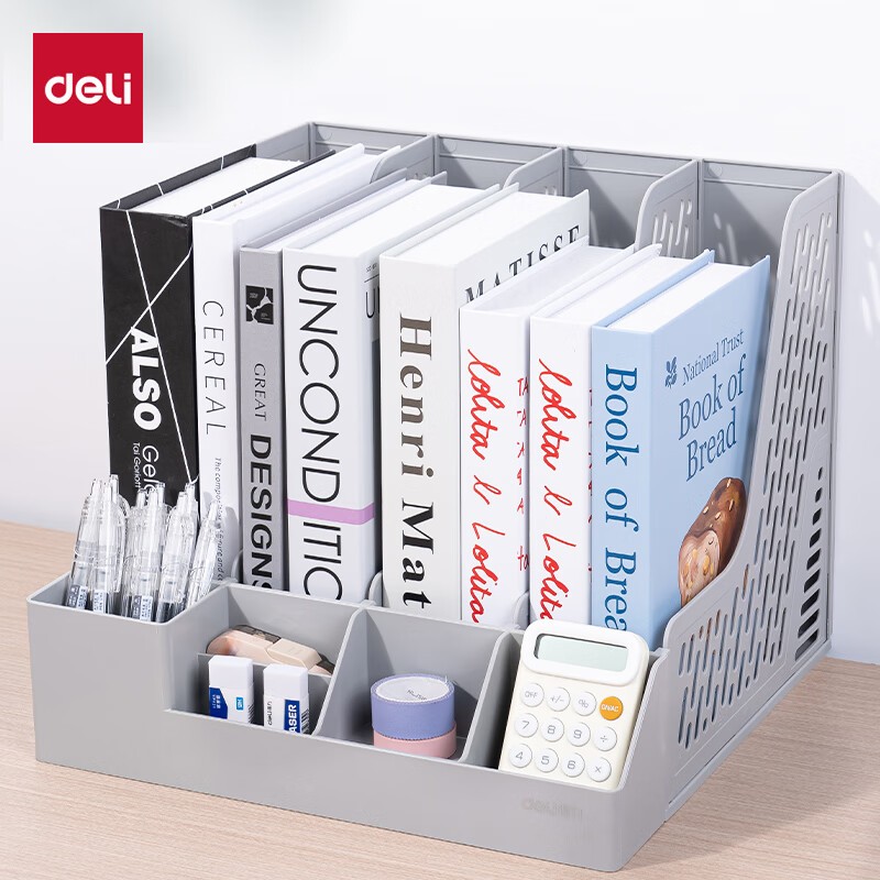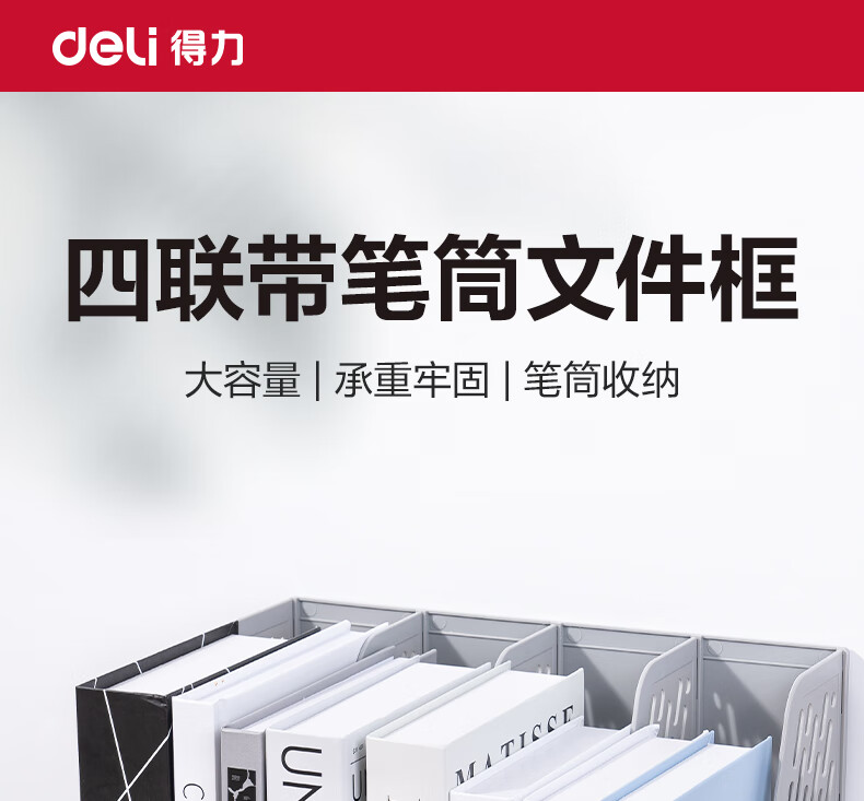 得力/deli 78981 文件筐 4联带笔筒多功能桌面档案收纳盒文件框