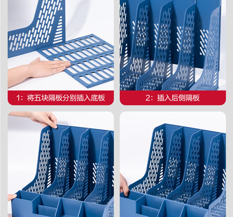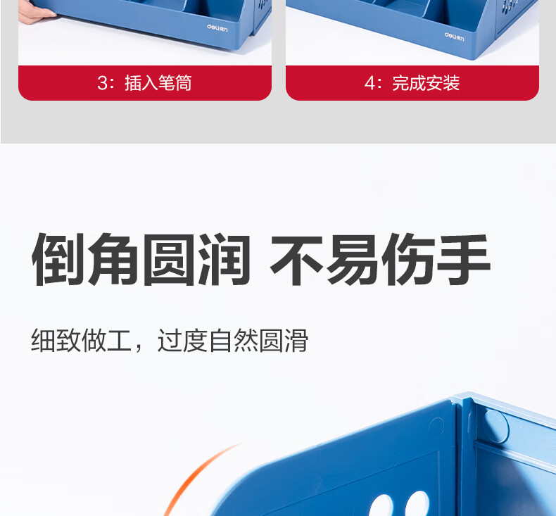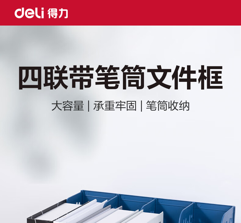 得力/deli 78981 文件筐 4联带笔筒多功能桌面档案收纳盒