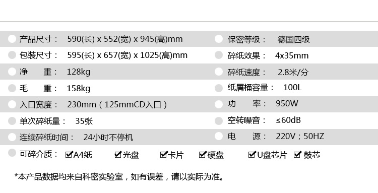 科密/Comet SD-601M 碎纸机 销毁粉碎机 碎硒鼓 U盘 移动硬盘 卡(不停机 35张纸/次 100L )