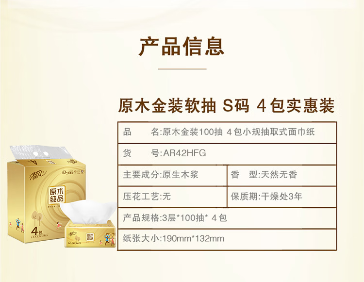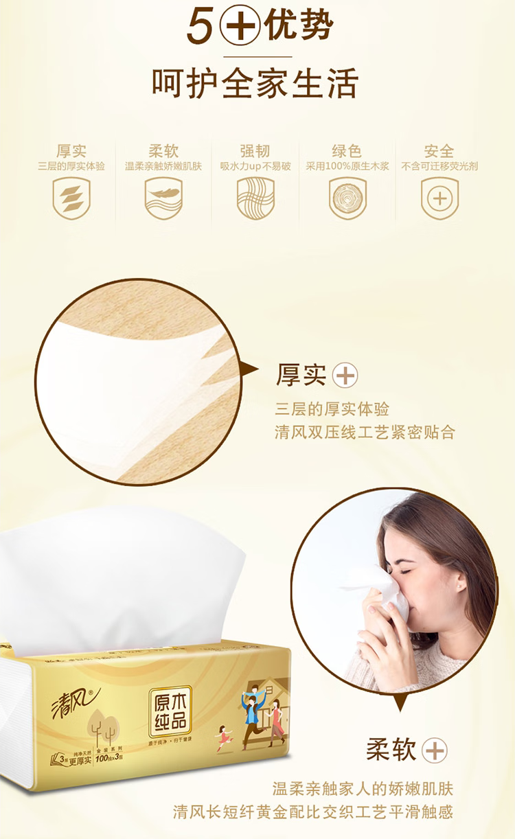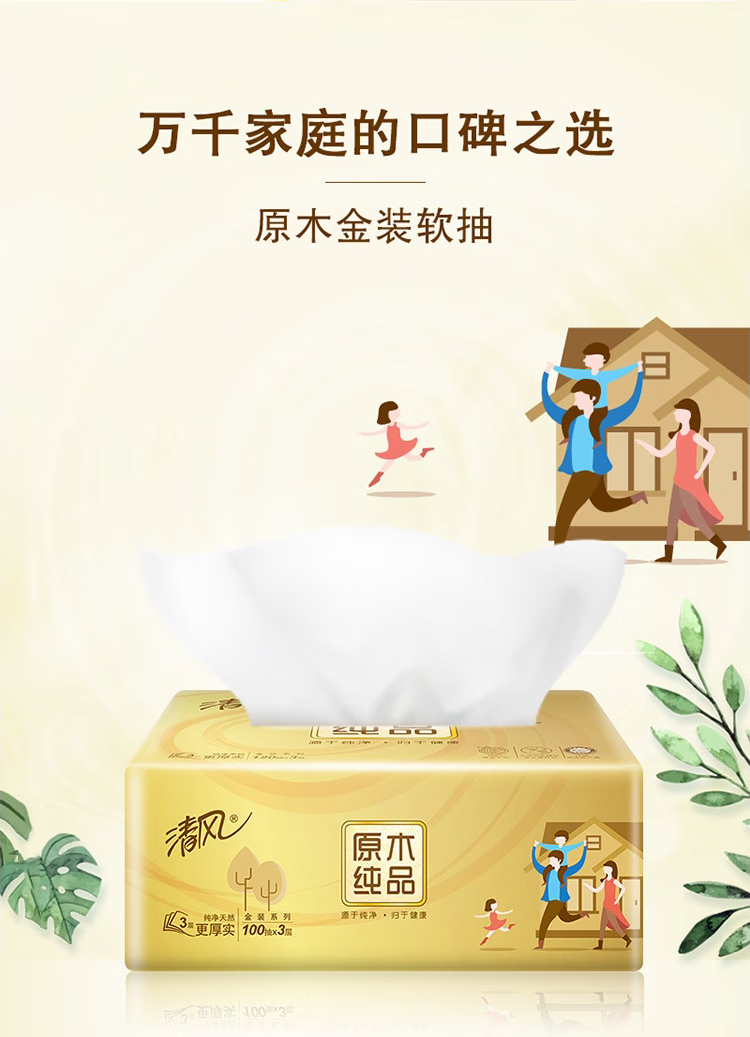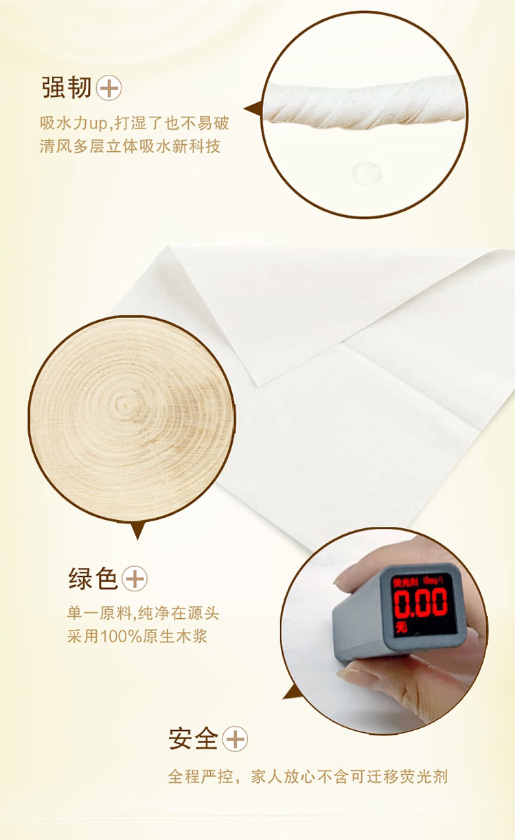 清风 B22AA1C 卷类卫生纸 原木纯品3层平纹205段卷筒卫生纸 三提装