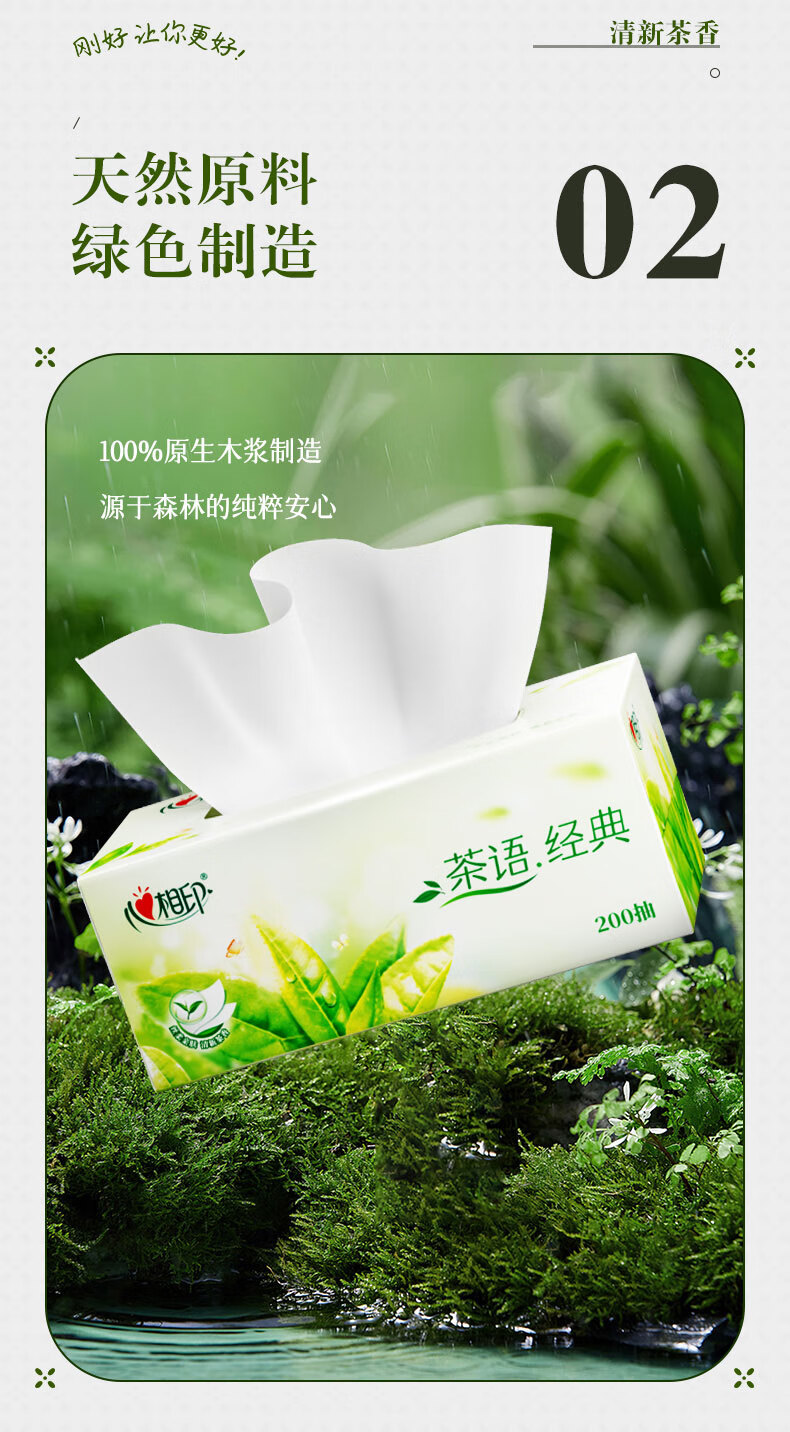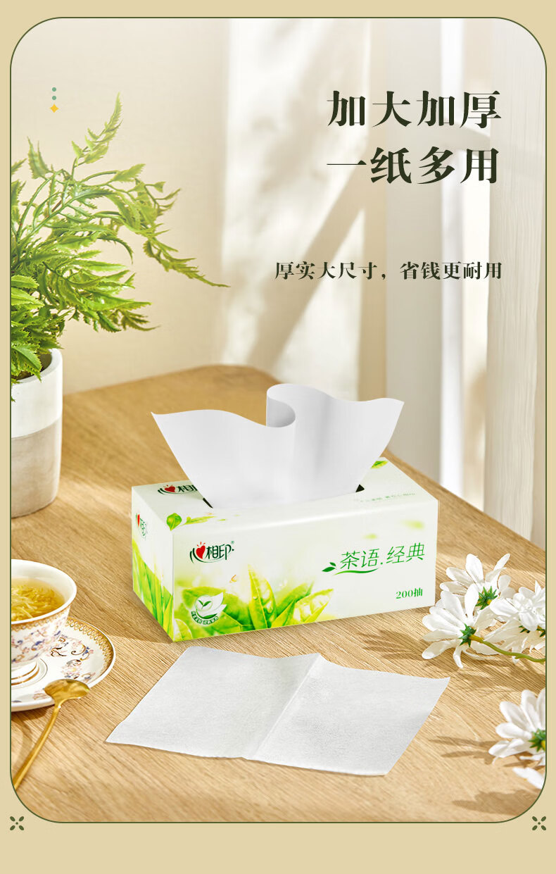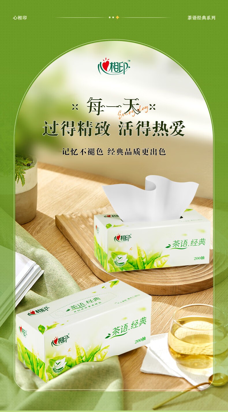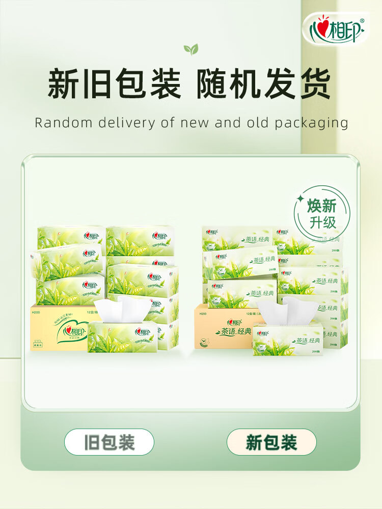 心相印/MindActUponMind H200 盒装抽取式面纸 心相印茶语系列200抽12盒二层盒装纸面巾