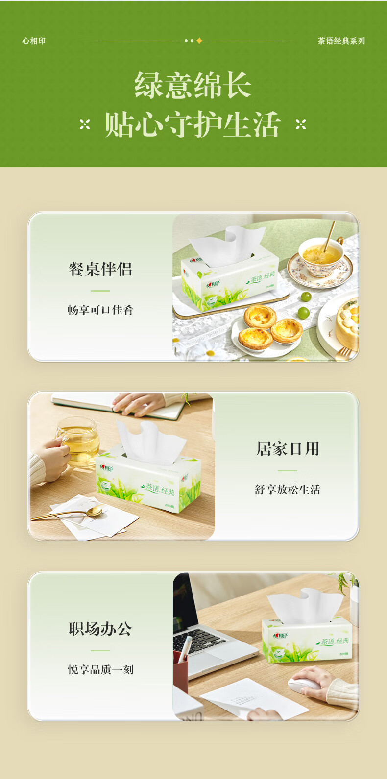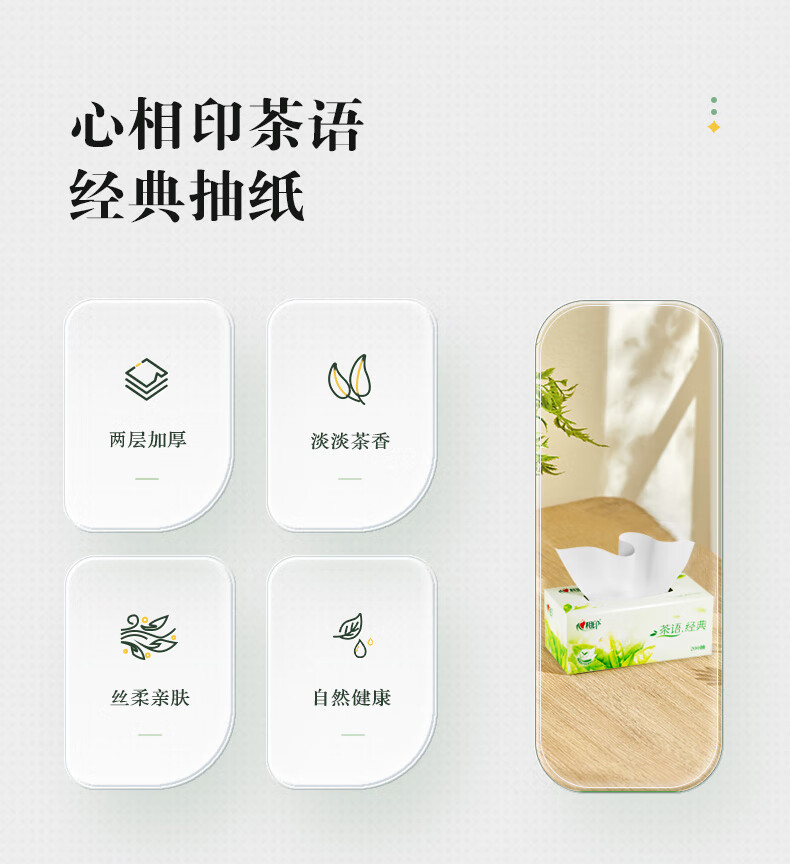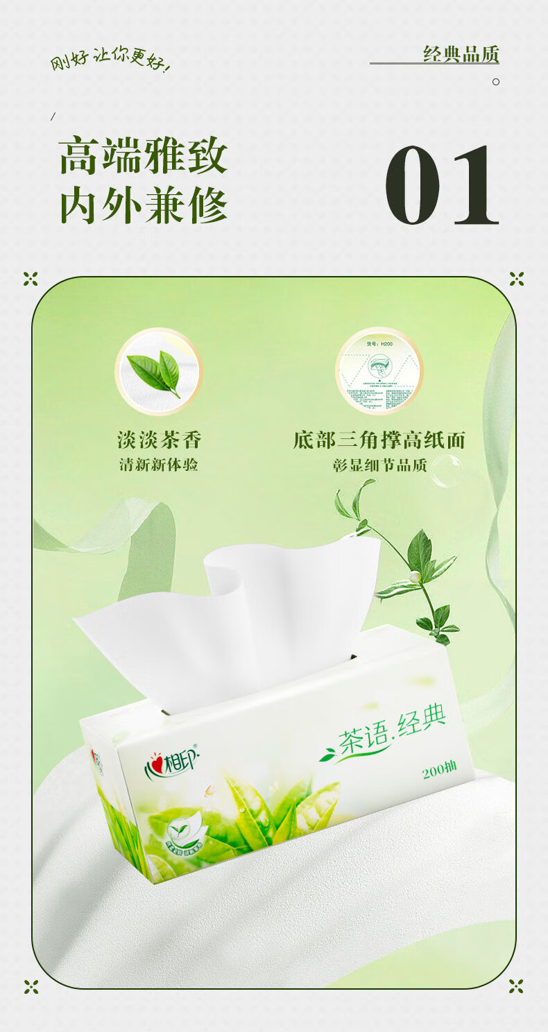 心相印/MindActUponMind H200 盒装抽取式面纸 心相印茶语系列200抽12盒二层盒装纸面巾