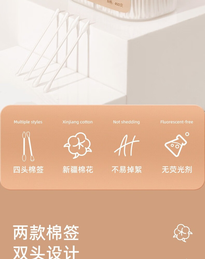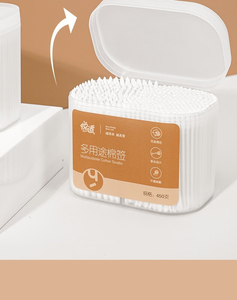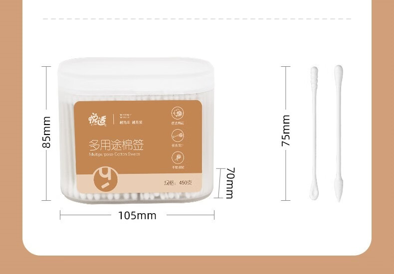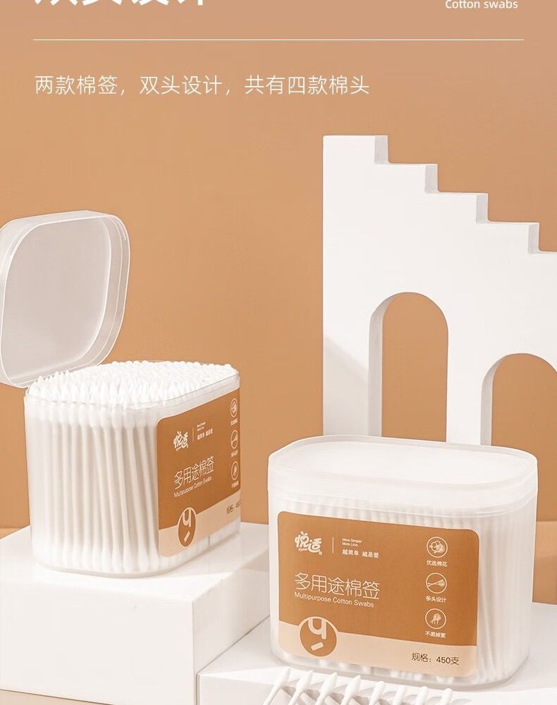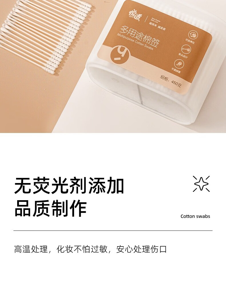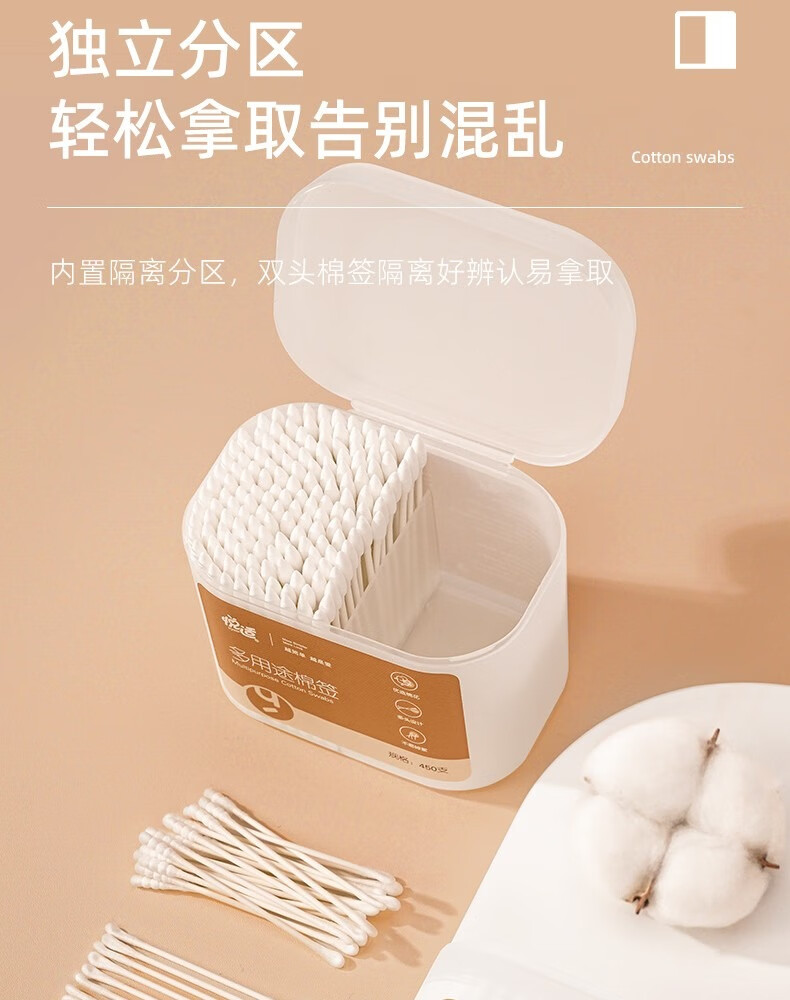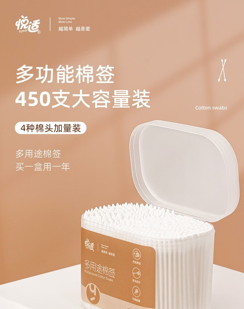 悦适/h\'yeas 2EDA450 塑料制品 悦适日用棉签450支*2盒
