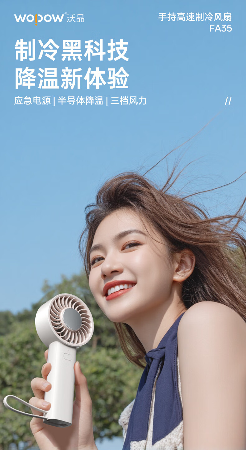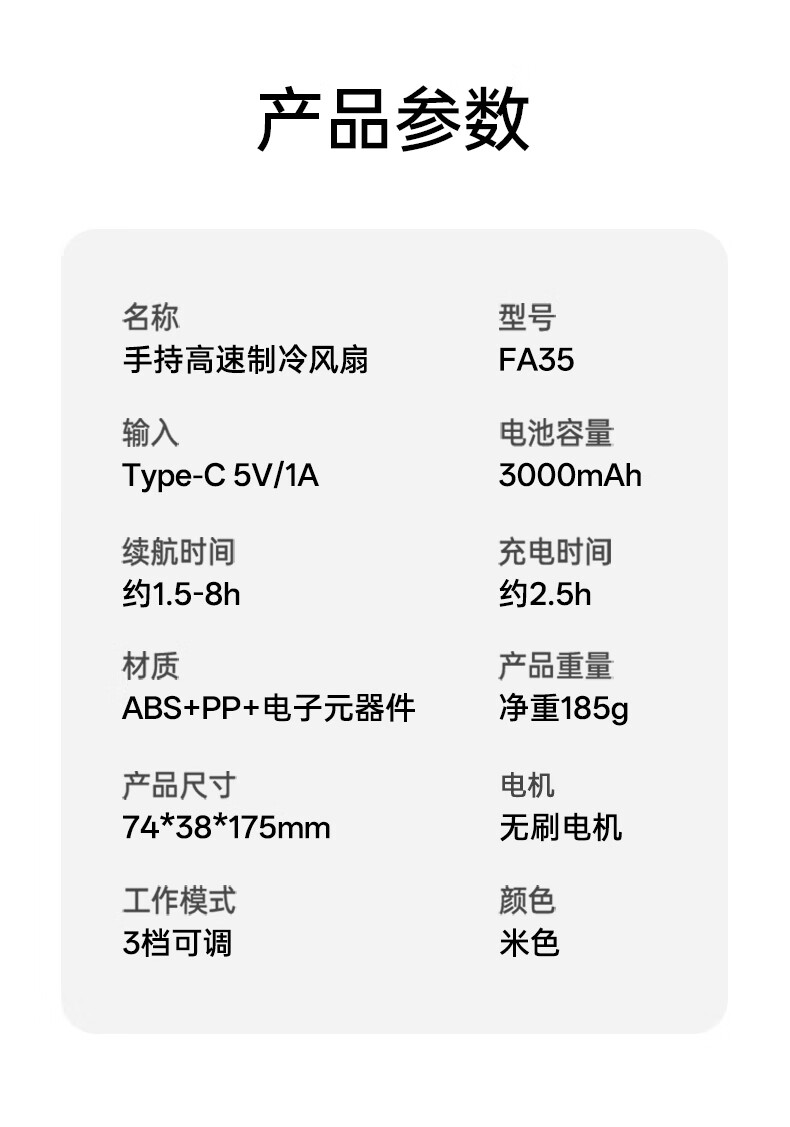沃品/WOPOW FA35 风扇 手持制冷风扇 米色 米色 3000mAh