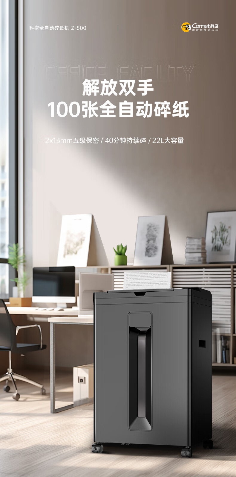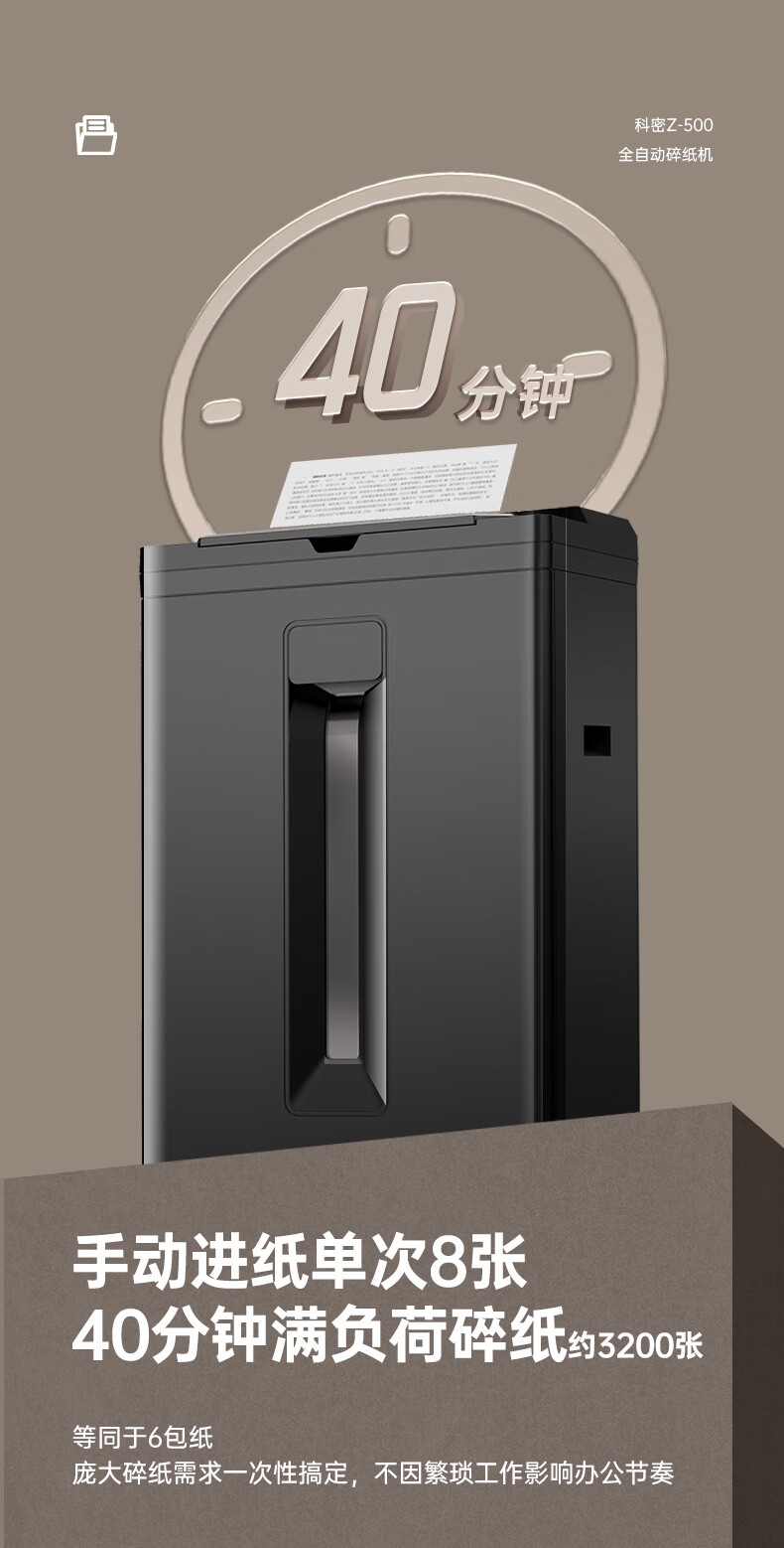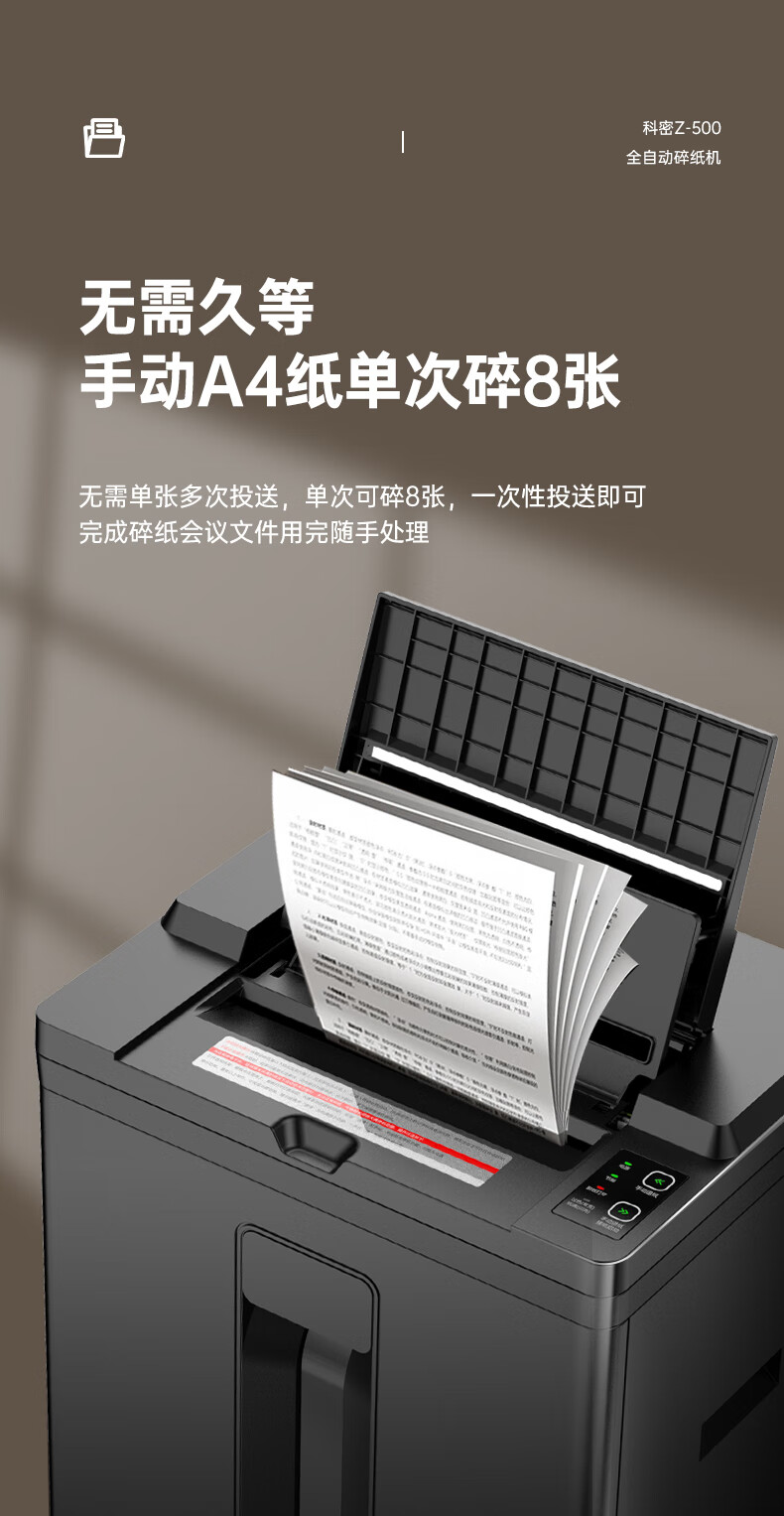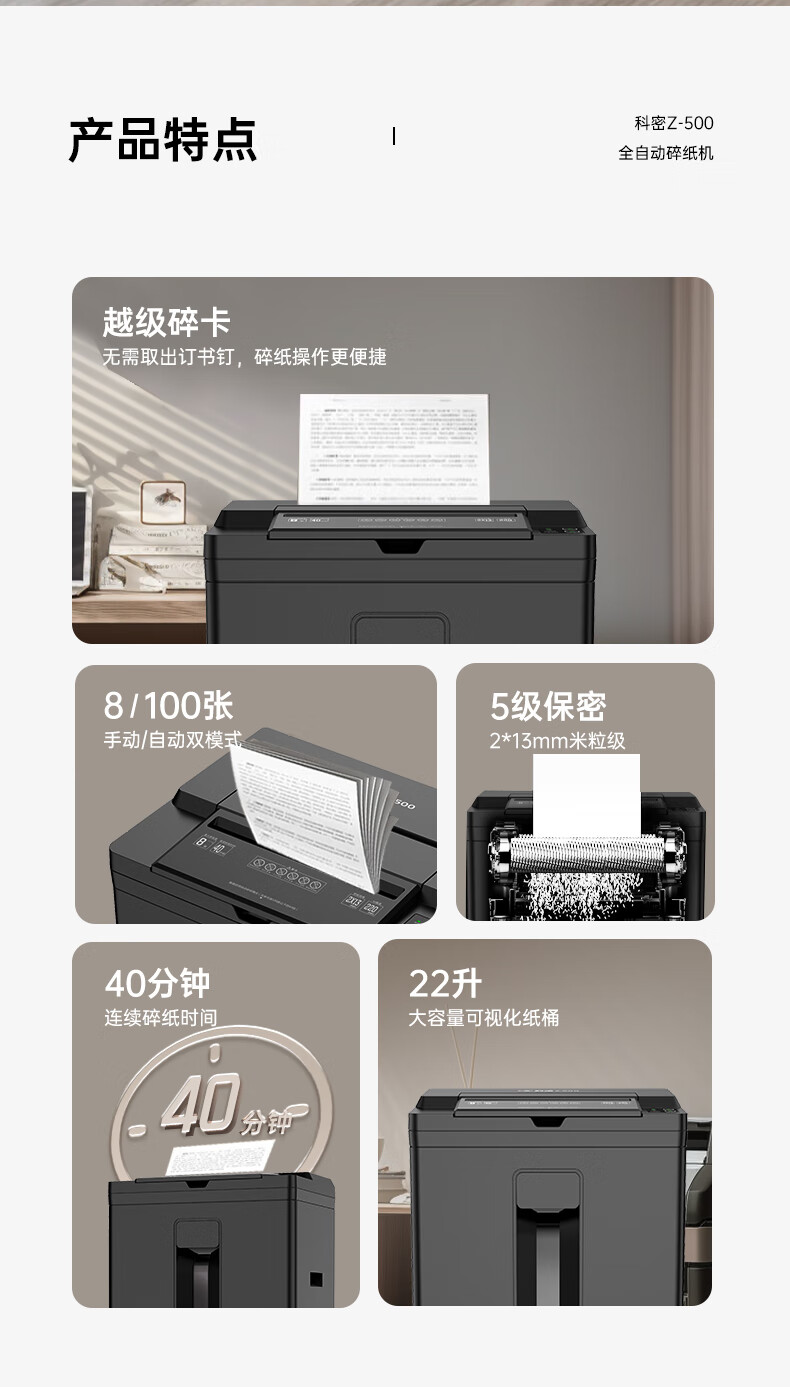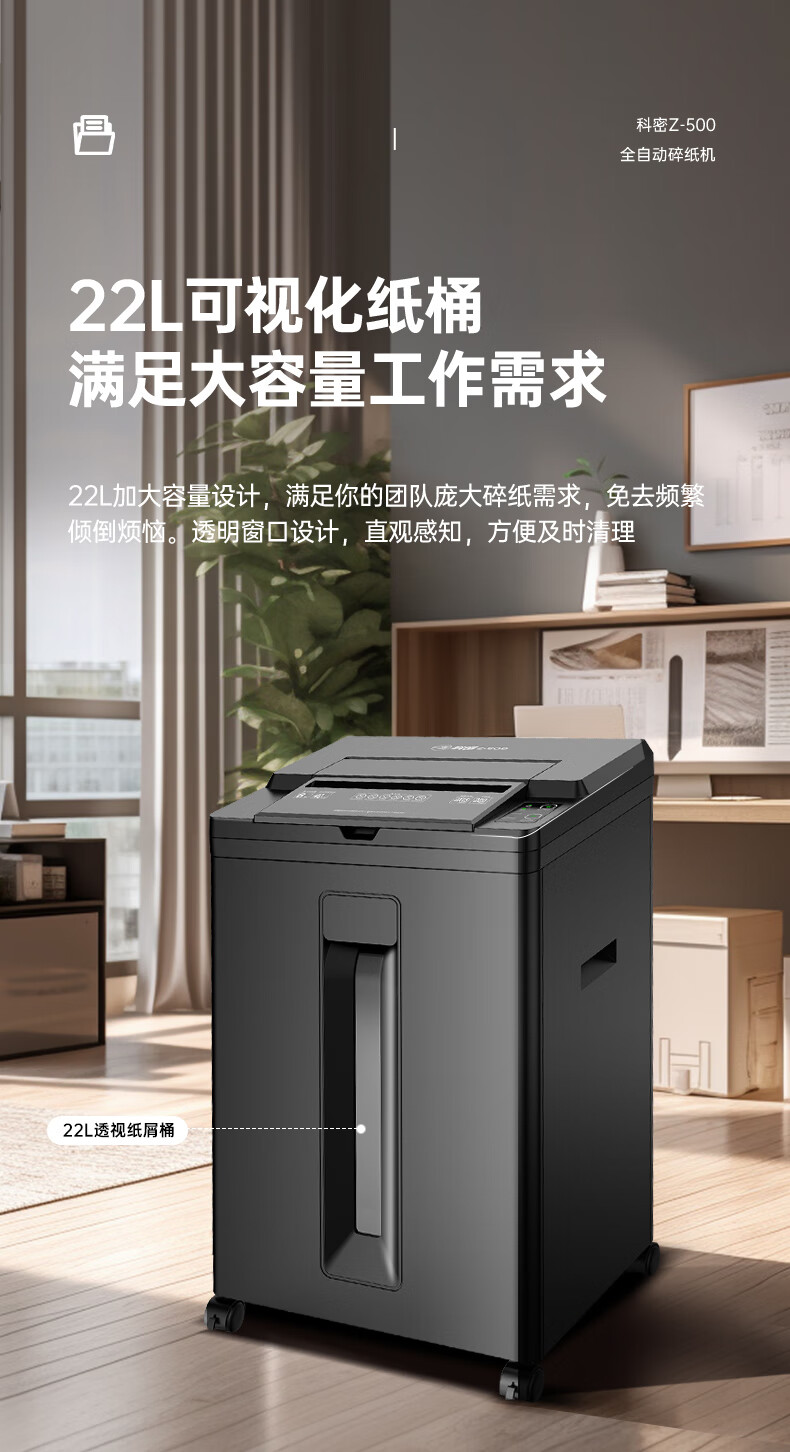 科密/Comet Z-500 碎纸机 5级高保密办公商用粉碎机(全自动100张 手动8张 持续40分钟 22L)