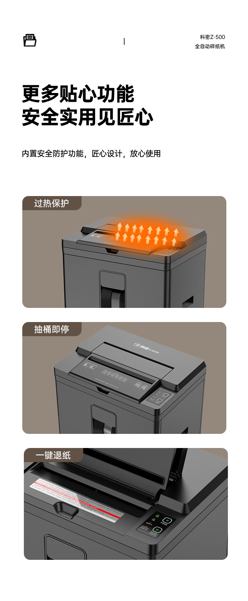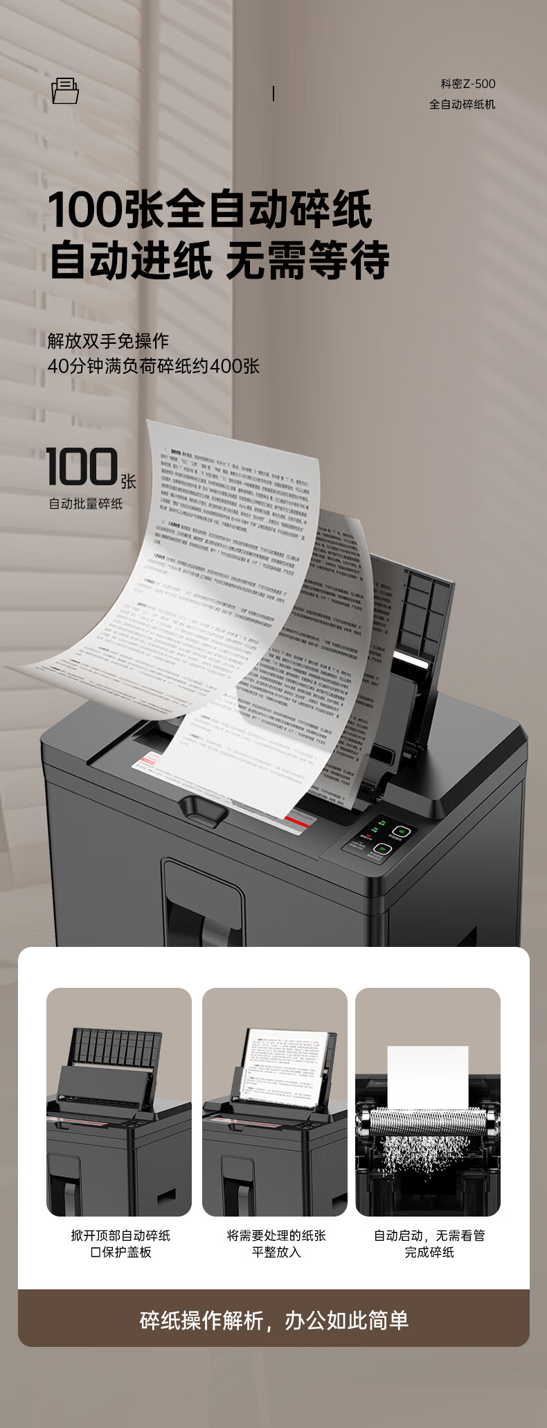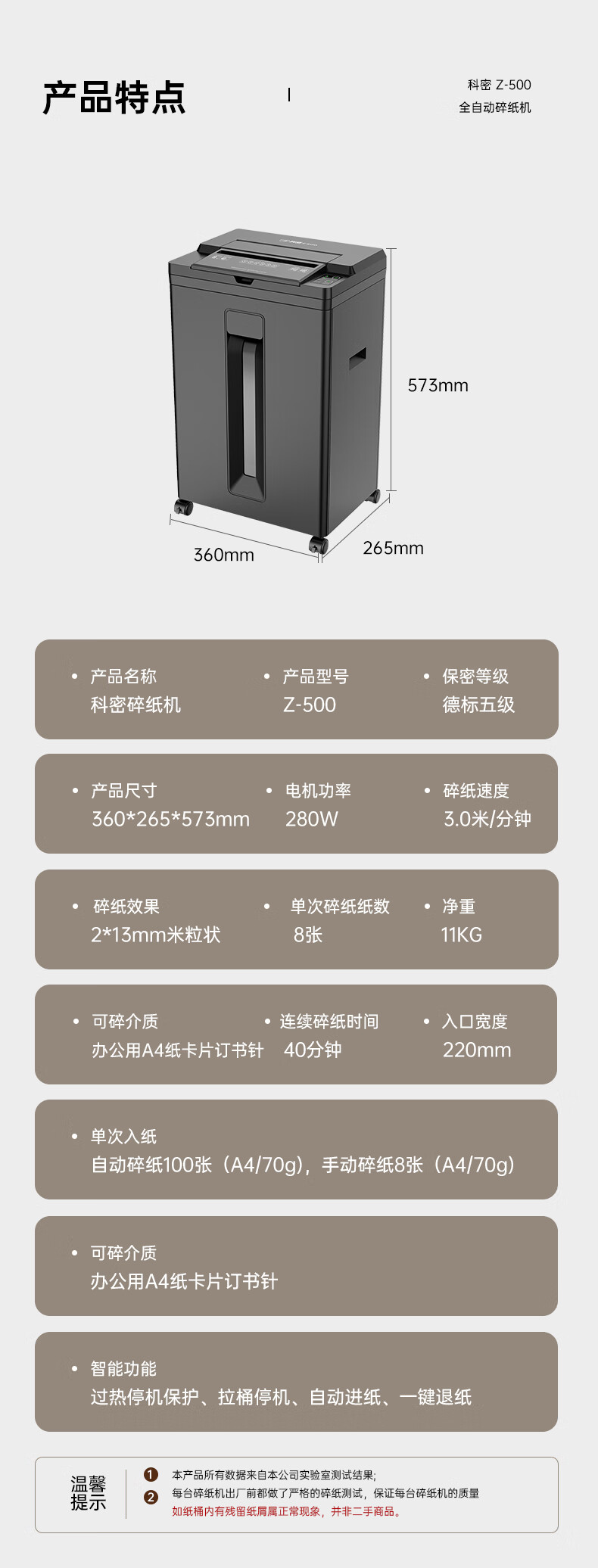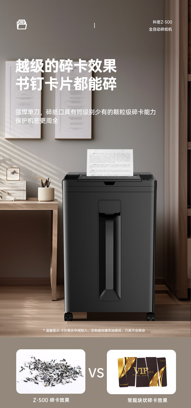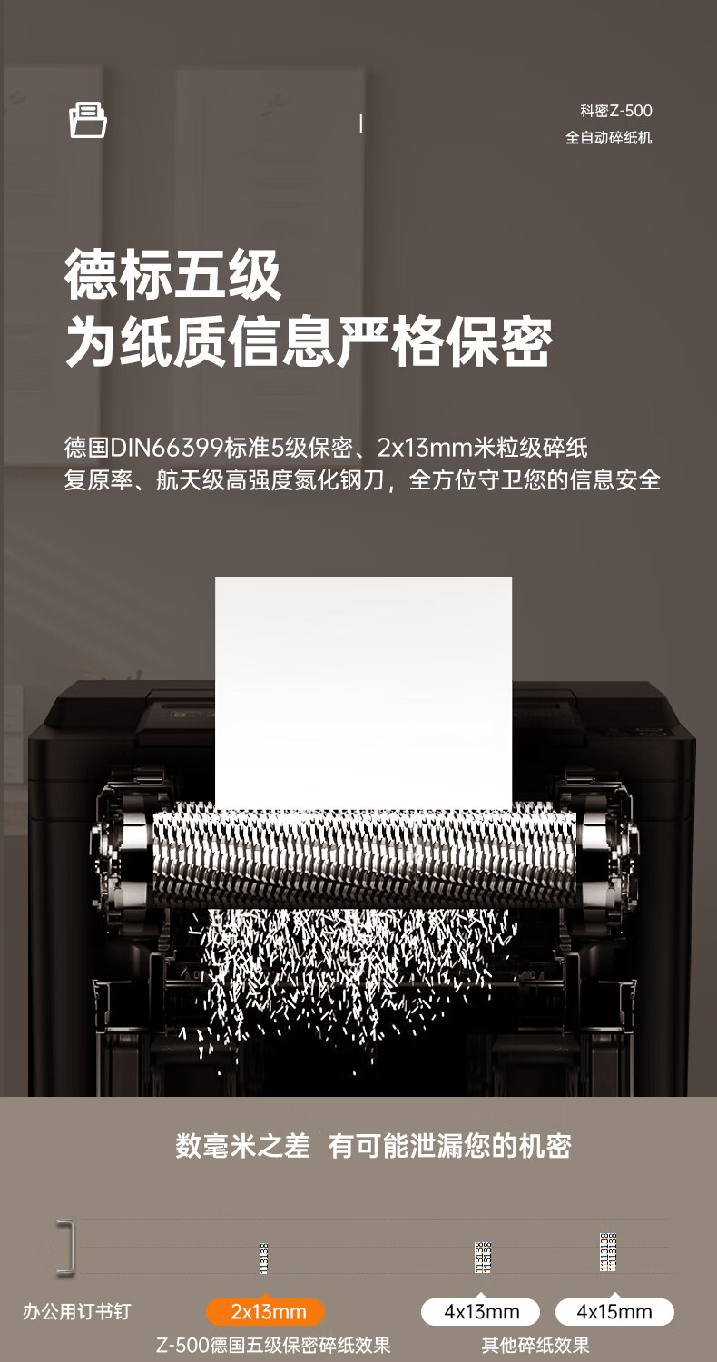 科密/Comet Z-500 碎纸机 5级高保密办公商用粉碎机(全自动100张 手动8张 持续40分钟 22L)