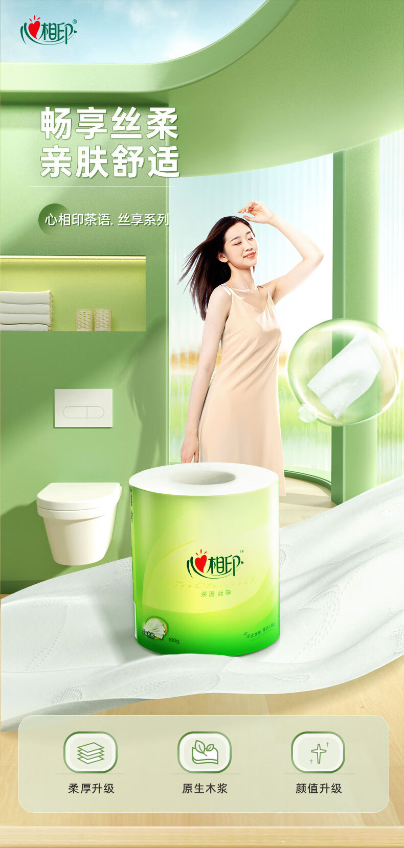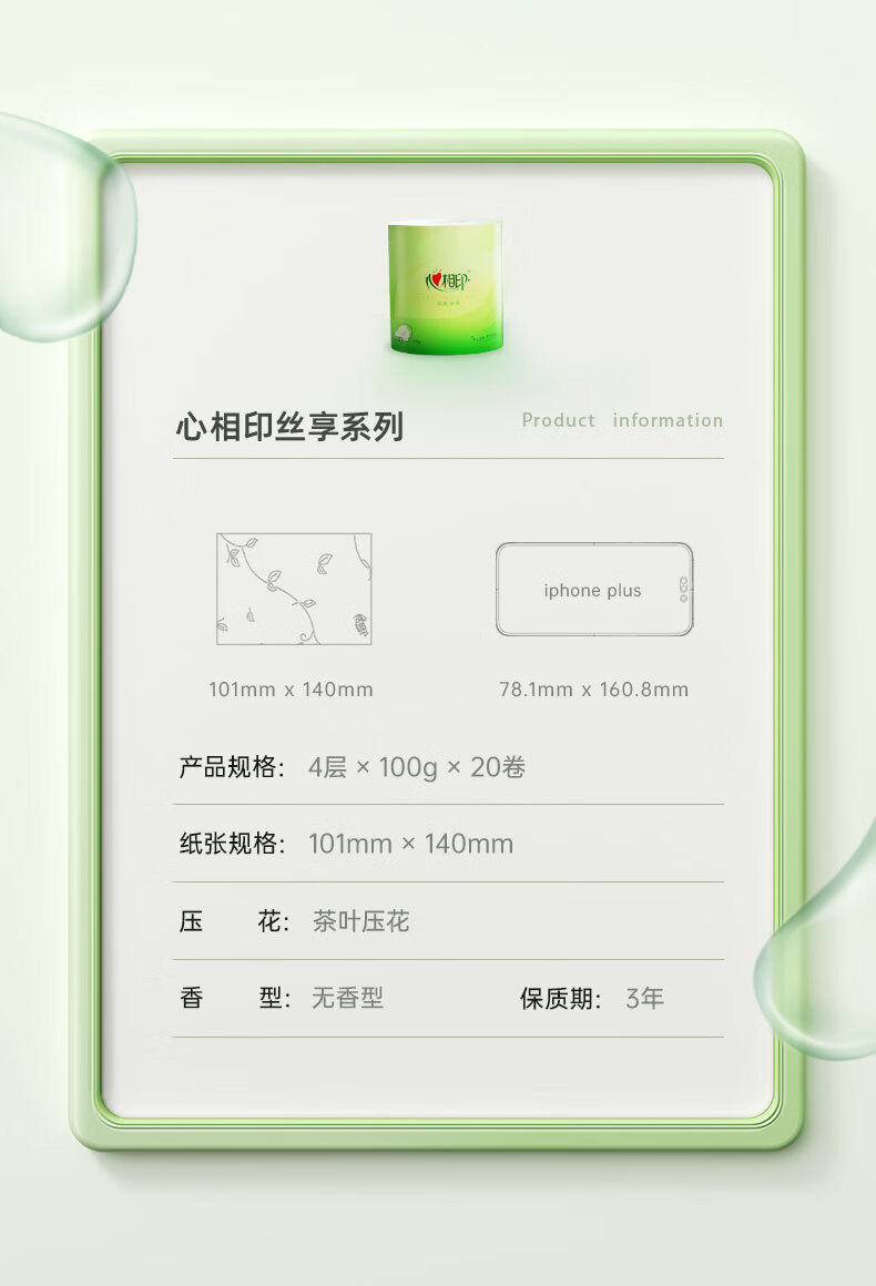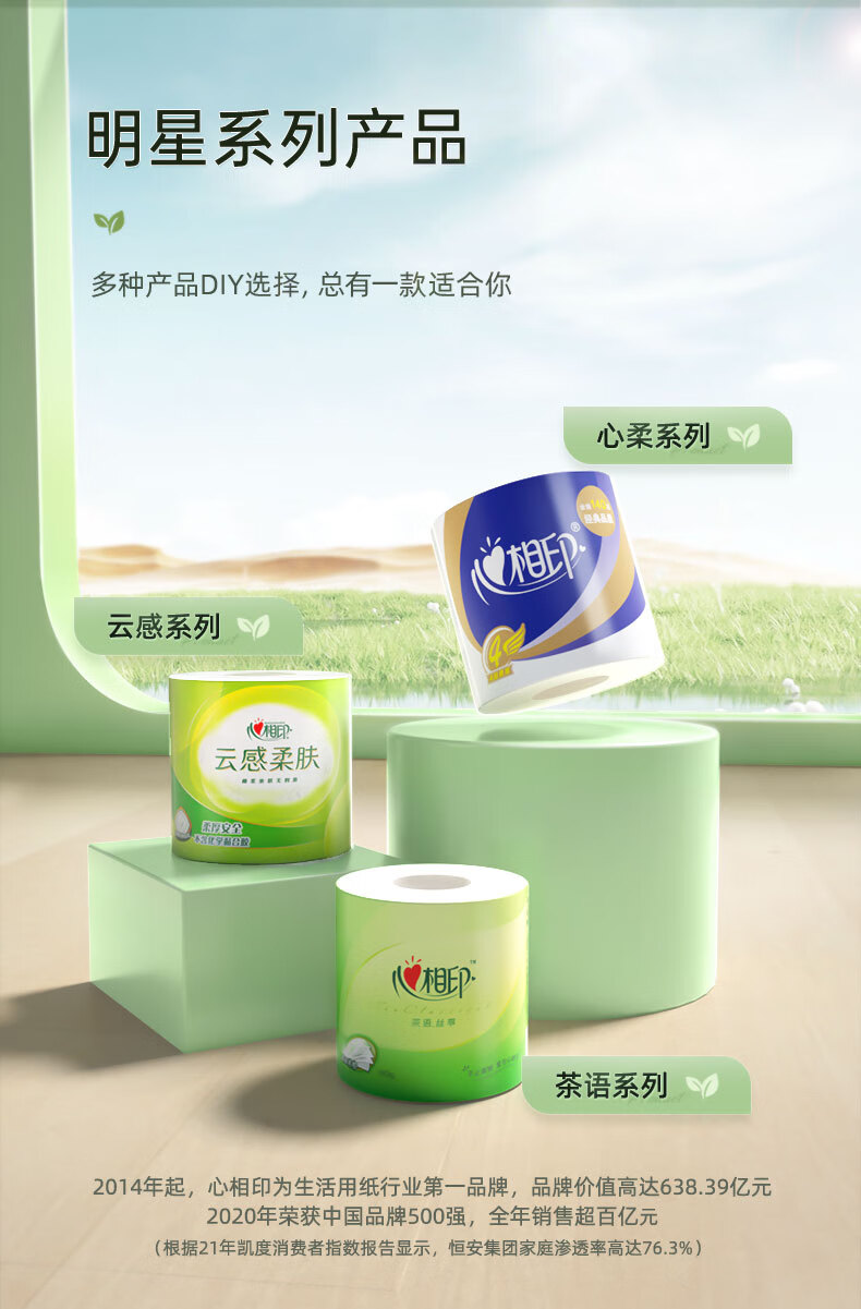 心相印/MindActUponMind BT3220 卷类卫生纸 心柔100克20粒装四层卷筒卫生纸 20卷-箱装