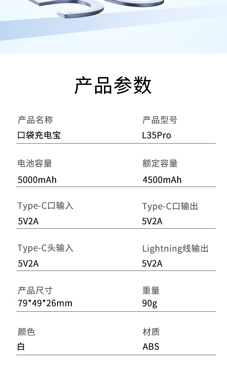 沃品/WOPOW L35 手机充电器 迷你口袋胶囊充电宝 L35