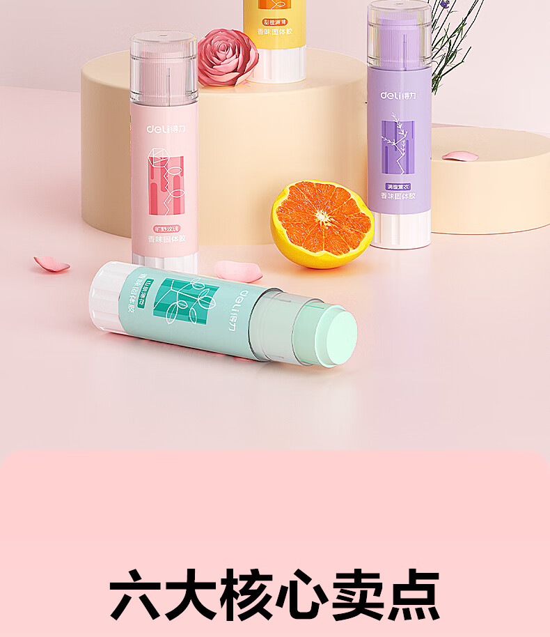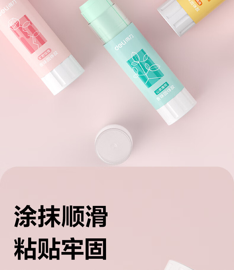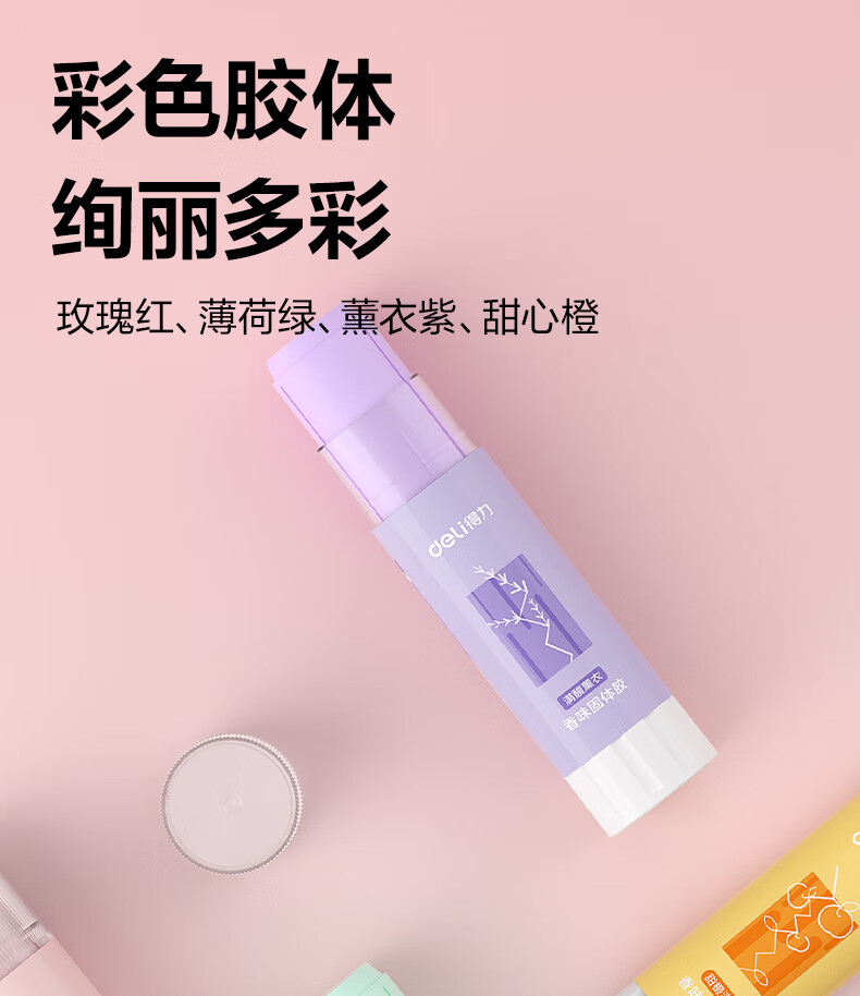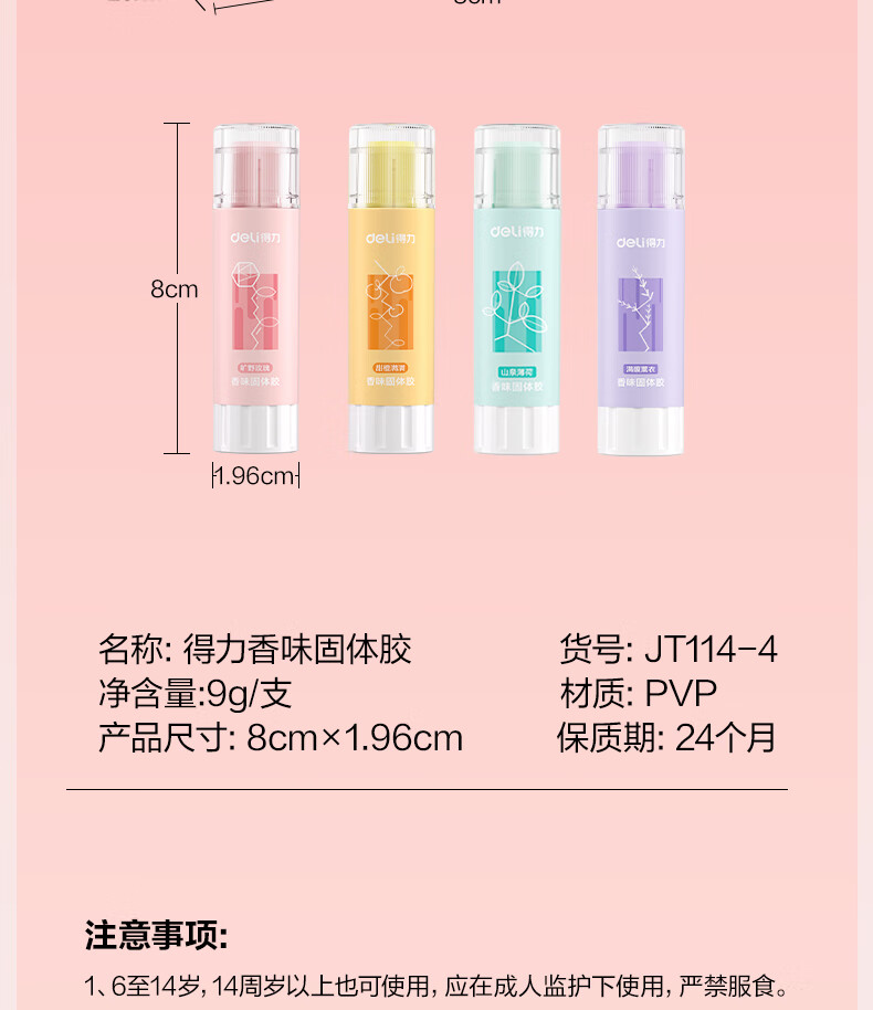得力/deli JT114-4 胶棒/固体胶/胶水 9g芳香型PVP固体胶 彩色高粘香味胶棒 安全无甲醛 儿童胶棒 高颜值学生文具 4支/盒