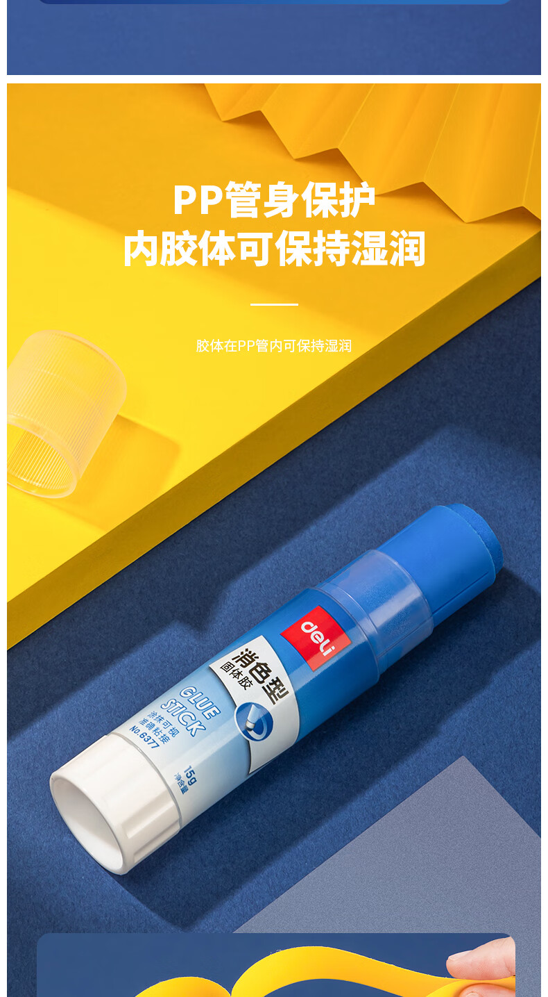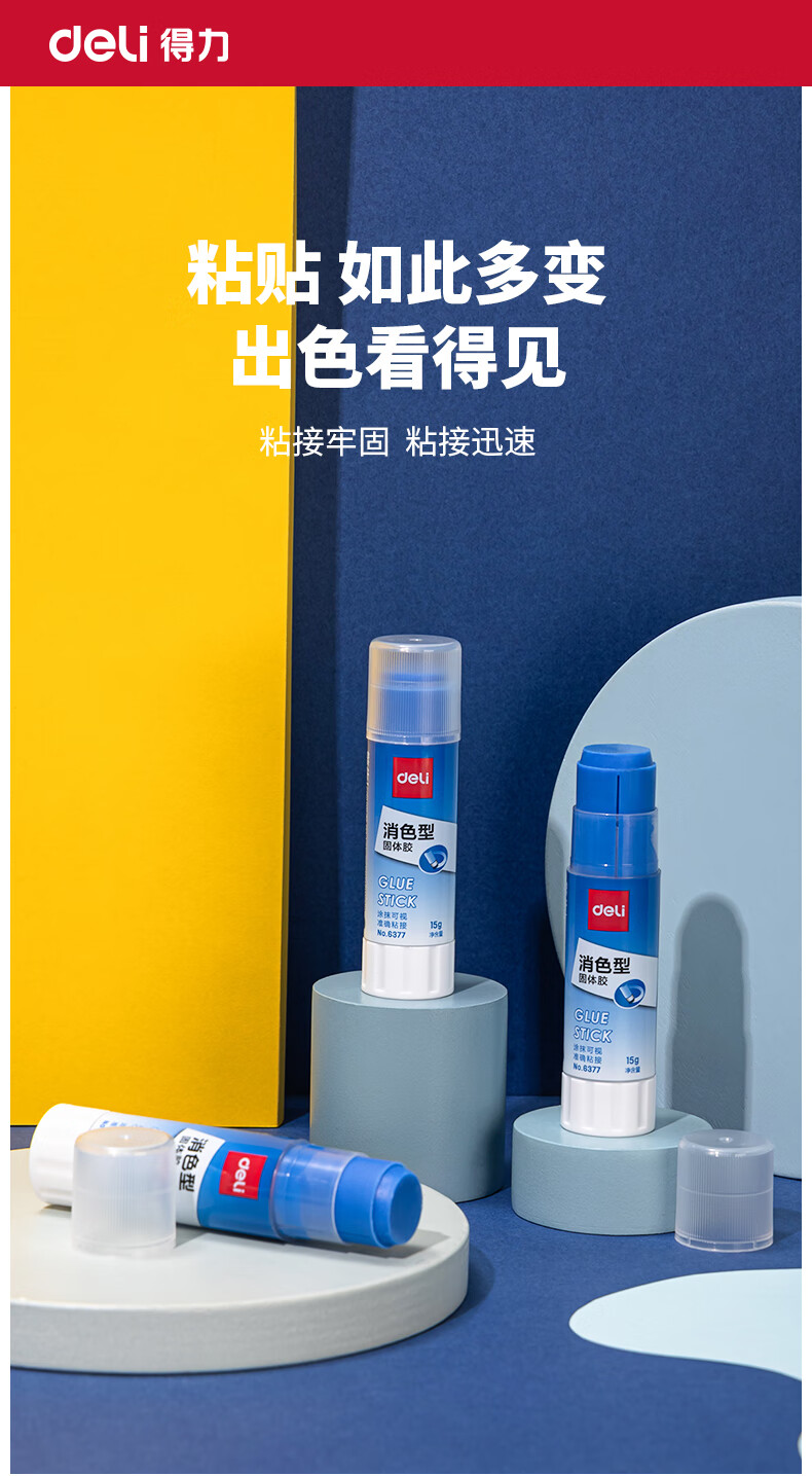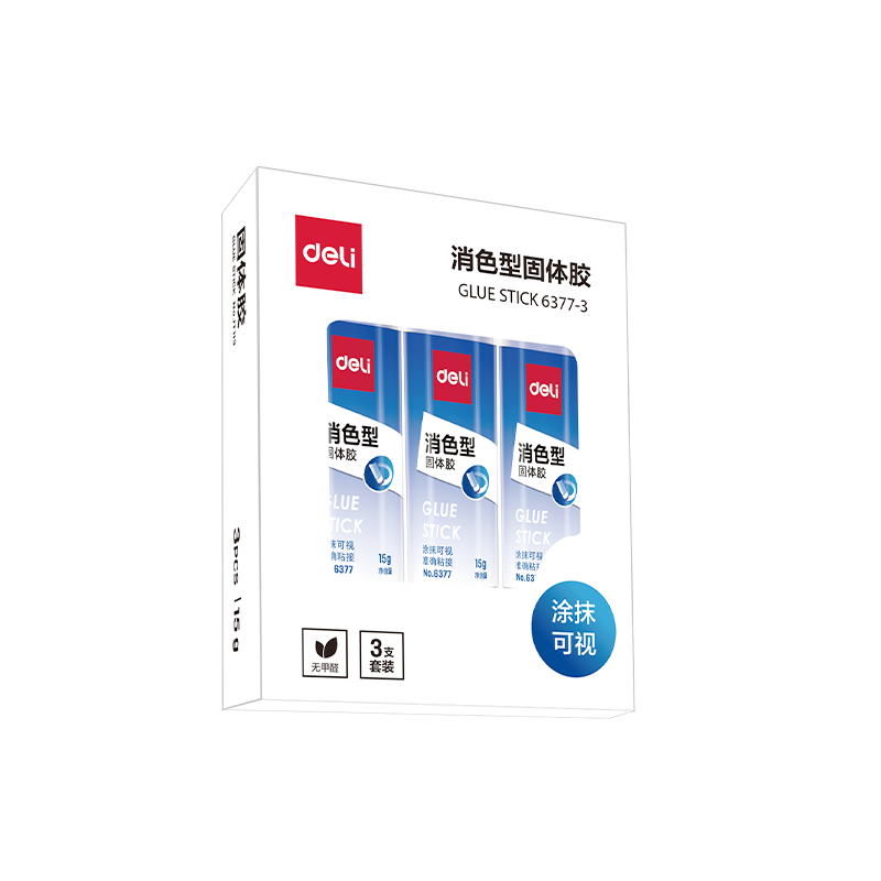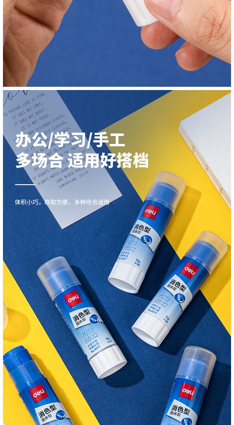 得力/deli 6377-3 胶棒/固体胶/胶水 15g可消色PVP固体胶水 干燥无色易标记 高粘无甲醛可水洗 cos遮眉胶棒 办公用品 3支