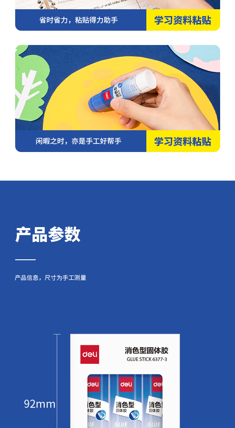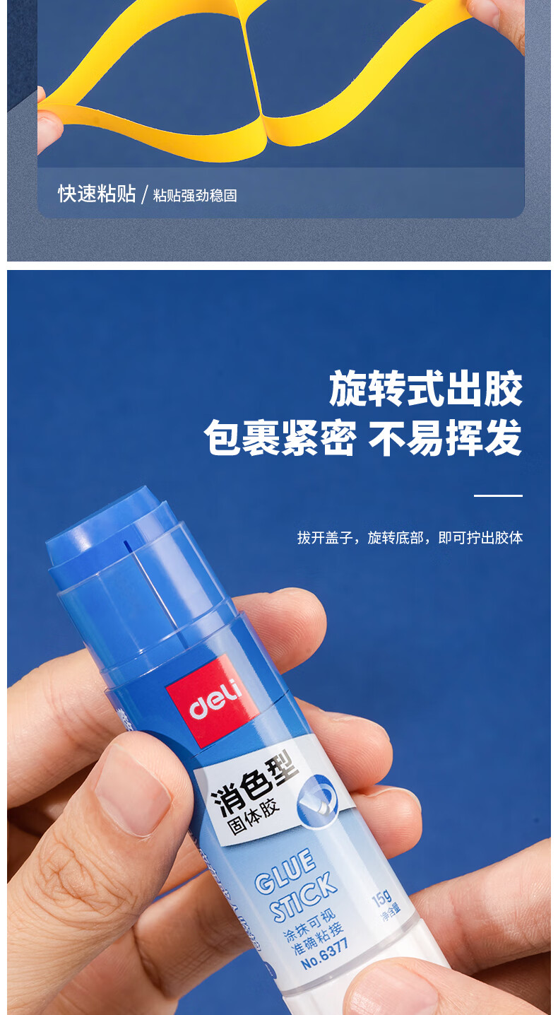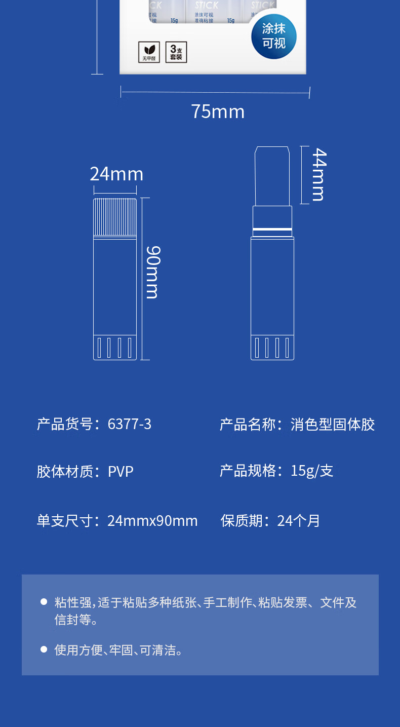 得力/deli 6377-3 胶棒/固体胶/胶水 15g可消色PVP固体胶水 干燥无色易标记 高粘无甲醛可水洗 cos遮眉胶棒 办公用品 3支