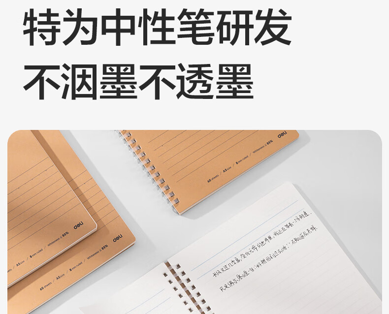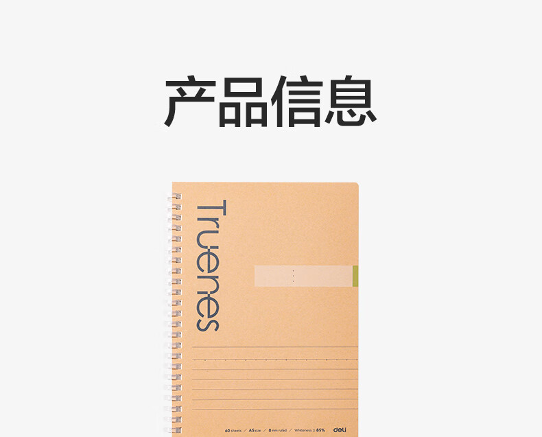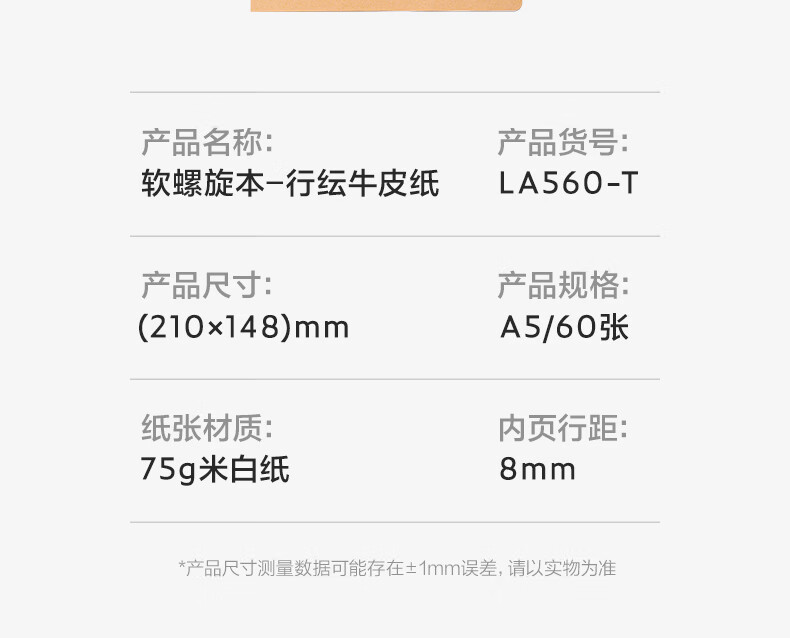 得力/deli LA560-T 薄本册 A5/60张笔记本软线圈牛皮纸封面不硌手螺旋本线圈本本子学生单本装行纭纸张