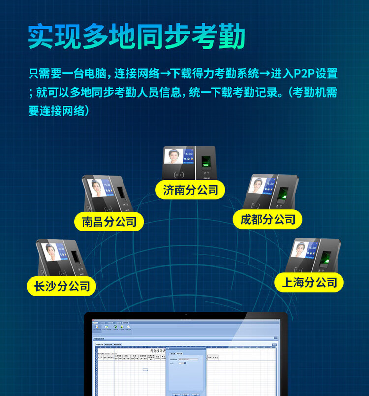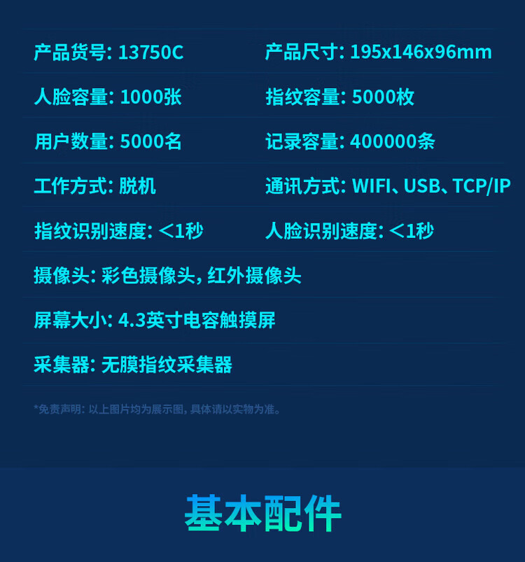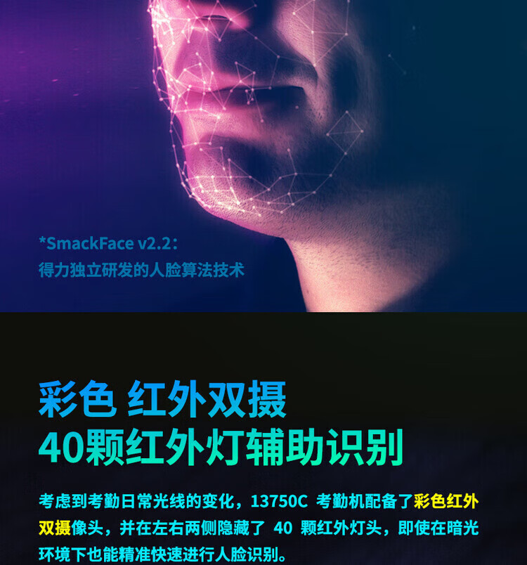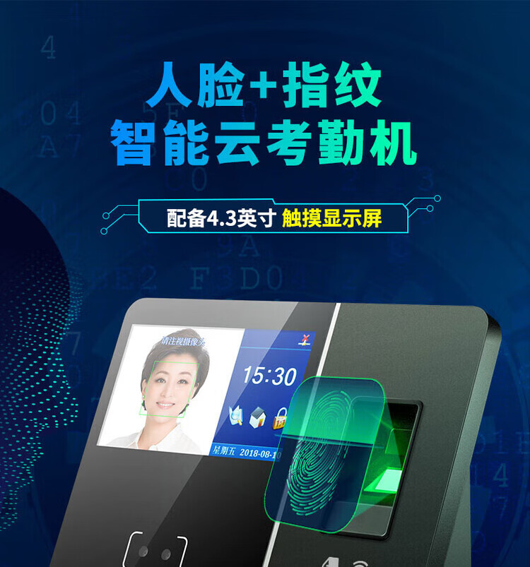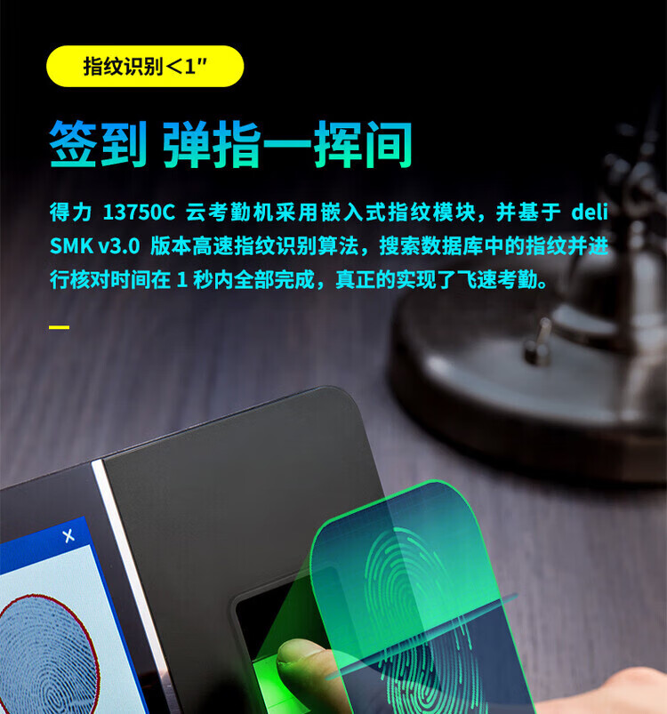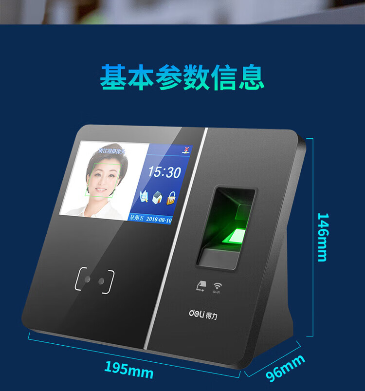 得力/deli 13750CS 门禁系统 静态人脸+指纹识别识别考勤机