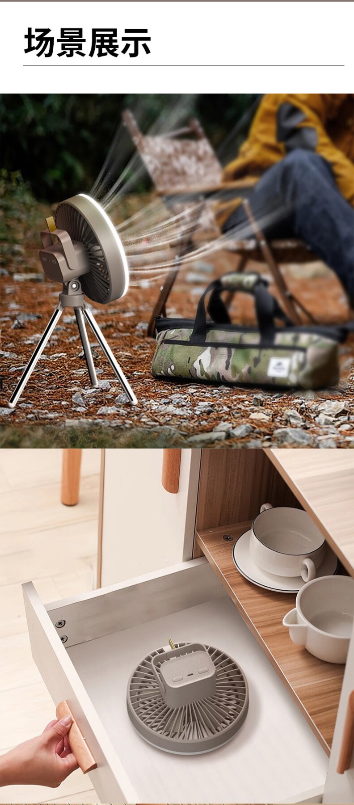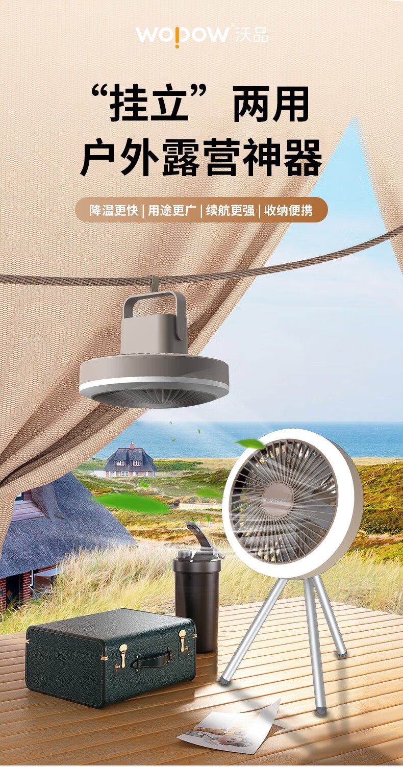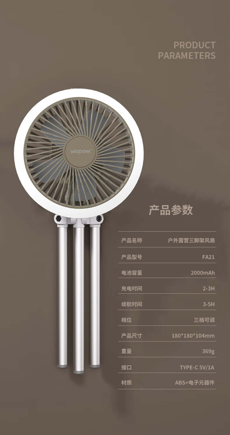 沃品/WOPOW FA21 风扇 三角架风扇充电式易折叠风力大应急照明灯