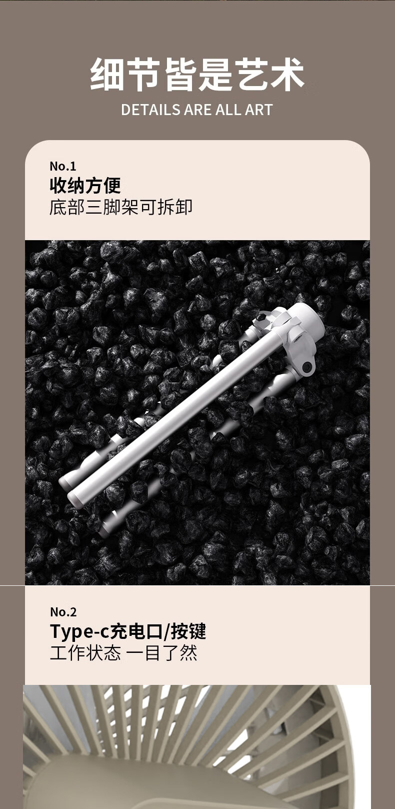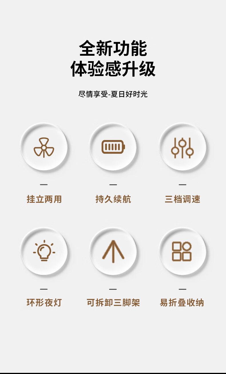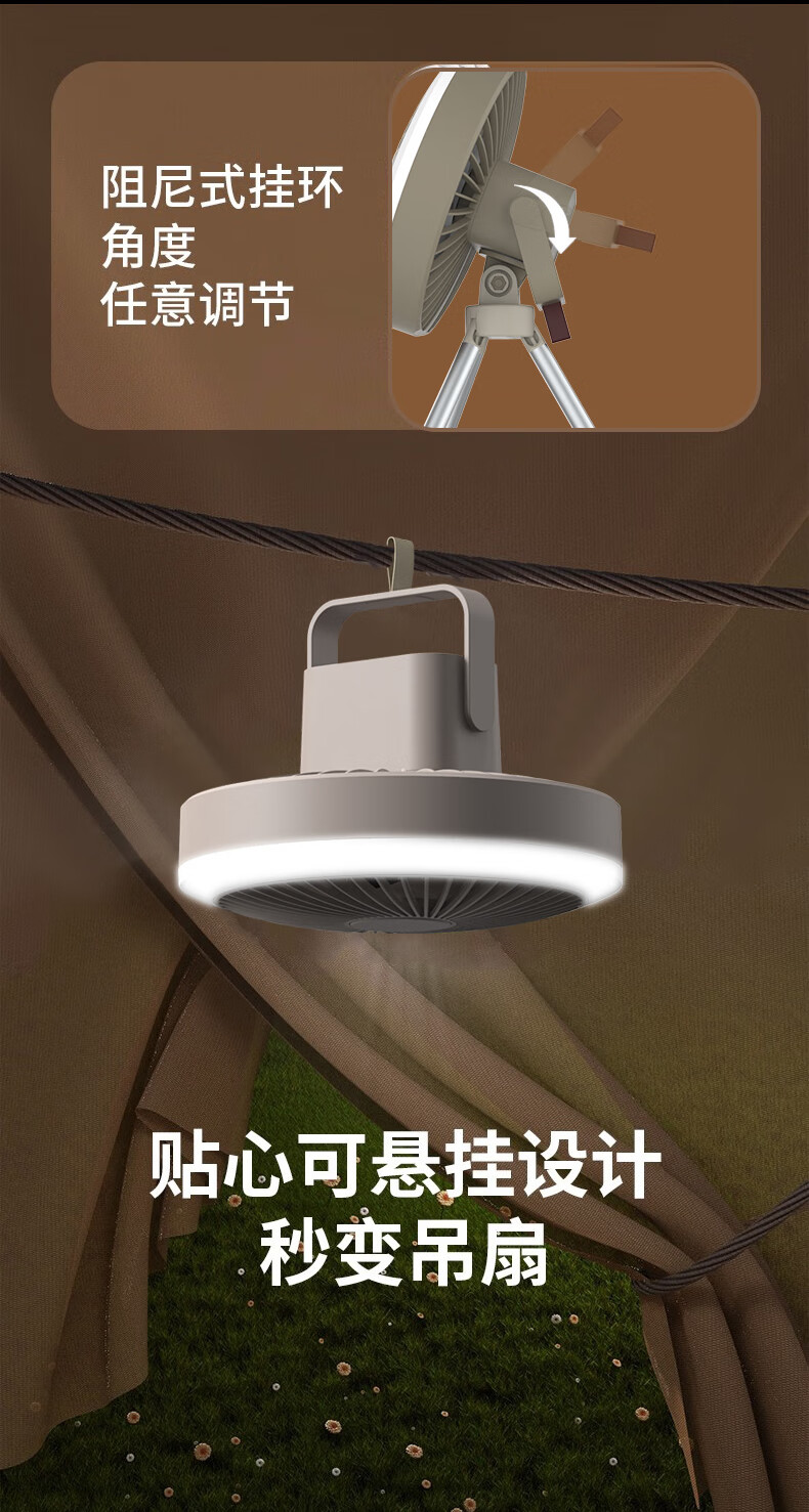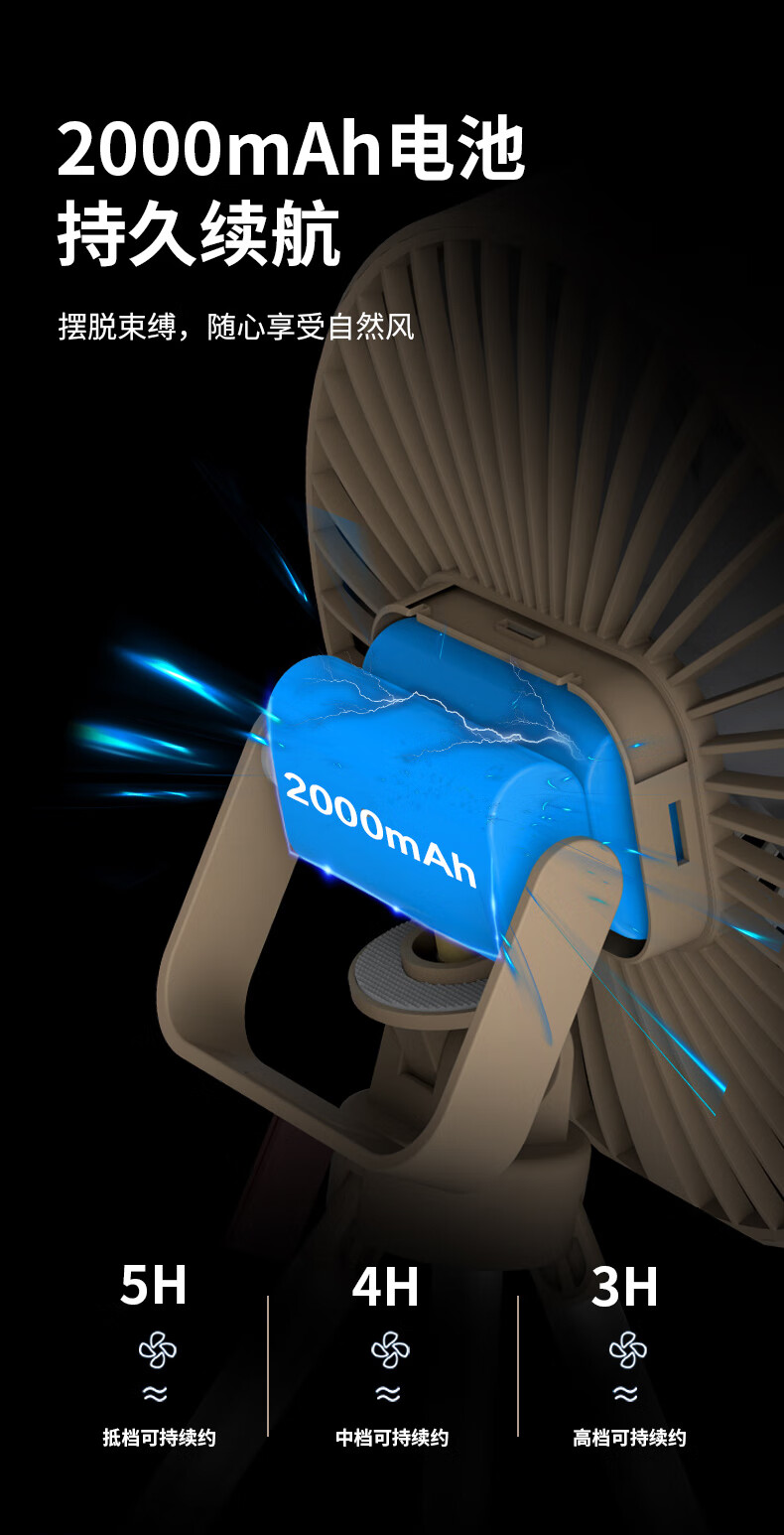 沃品/WOPOW FA21 风扇 三角架风扇充电式易折叠风力大应急照明灯