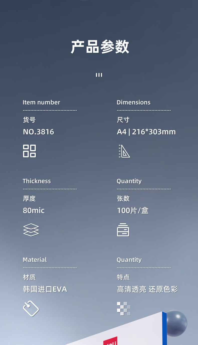 得力/deli 3816 塑料制品 高清透亮 A4 80厚度 216*303mm 100张