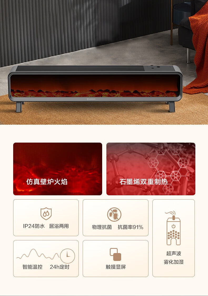 艾美特/Airmate HD22-R30U取暖器 5D沉浸式炭火 石墨烯速热取暖