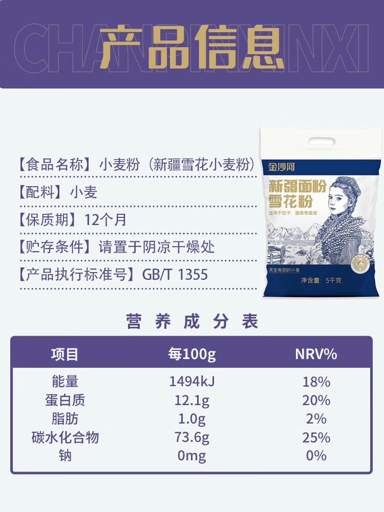 金沙河 29955 小麦面粉 金沙河新疆雪花小麦粉5公斤