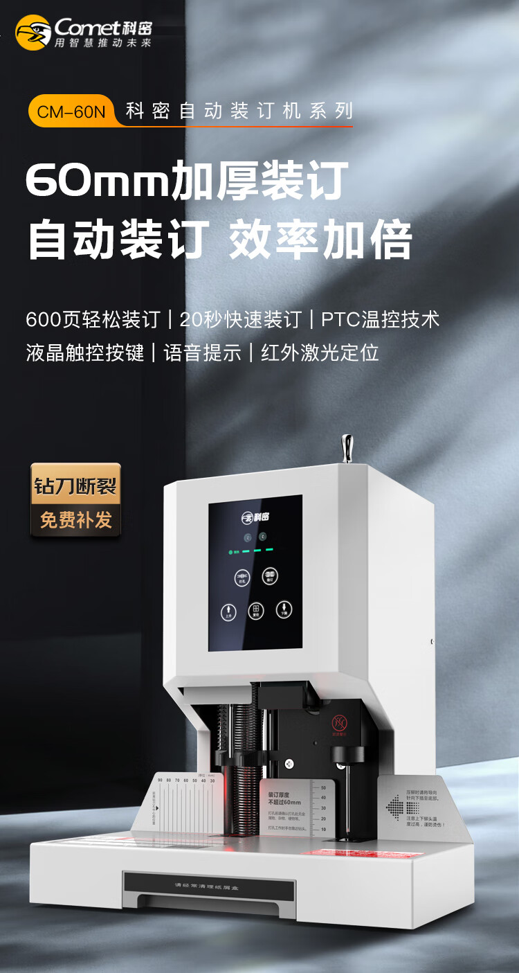 科密/Comet CM-60N 装订机 600页财务装订机 60mm会计凭证自动装订机电动办公档案资料铆管热熔